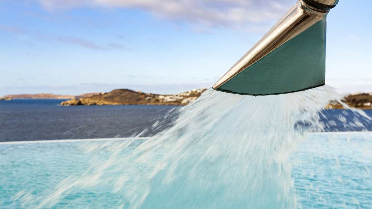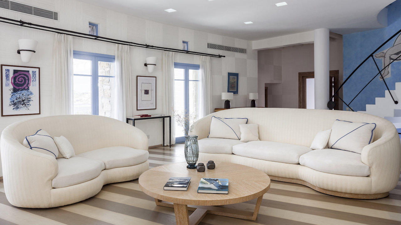 The brilliant white interiors and exteriors and the subtle tasteful decorations reflect the Mykonian-elegance the island is known for, so you can totally immerse yourself in the spirit of the island. The refurbished luxury estate has daily, complimentary maid service-so you don’t lift a finger, 24/7 CCTV monitoring at the periphery of the estate- so unauthorized people are detectable, Netflix- to quench your thirst for relaxed adventure, flat-screen TVs- so everyone can watch, back-up generators- to face the frequent local electric shortages, a desalination plant- so you can ignore the frequent local water shortages, and a 24/7 gate-access control. The pool can be heated for a fee.