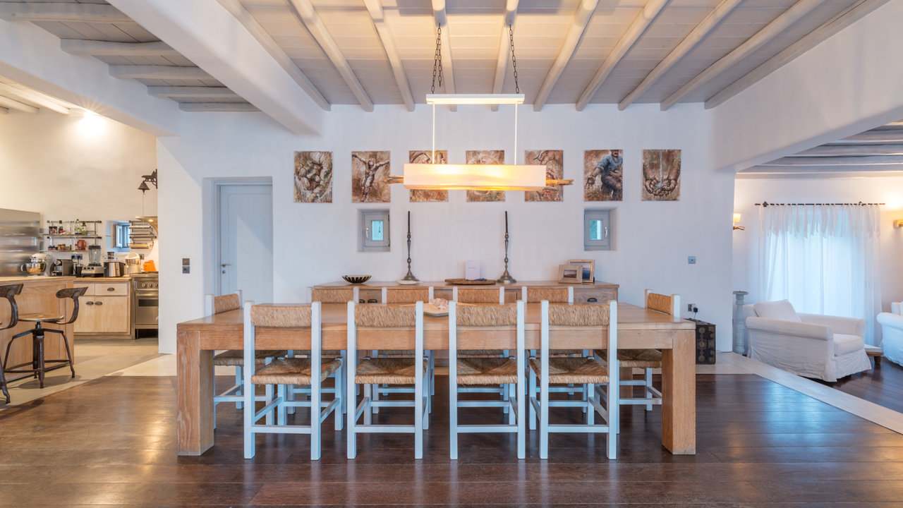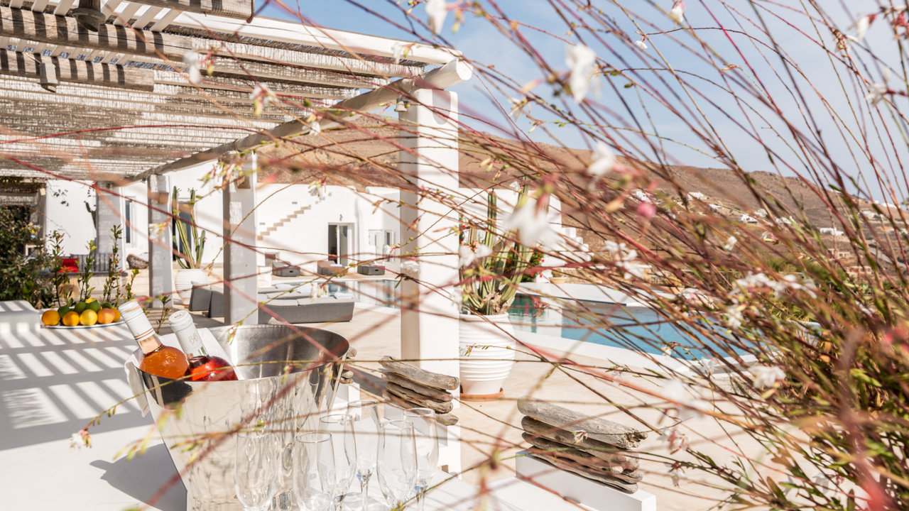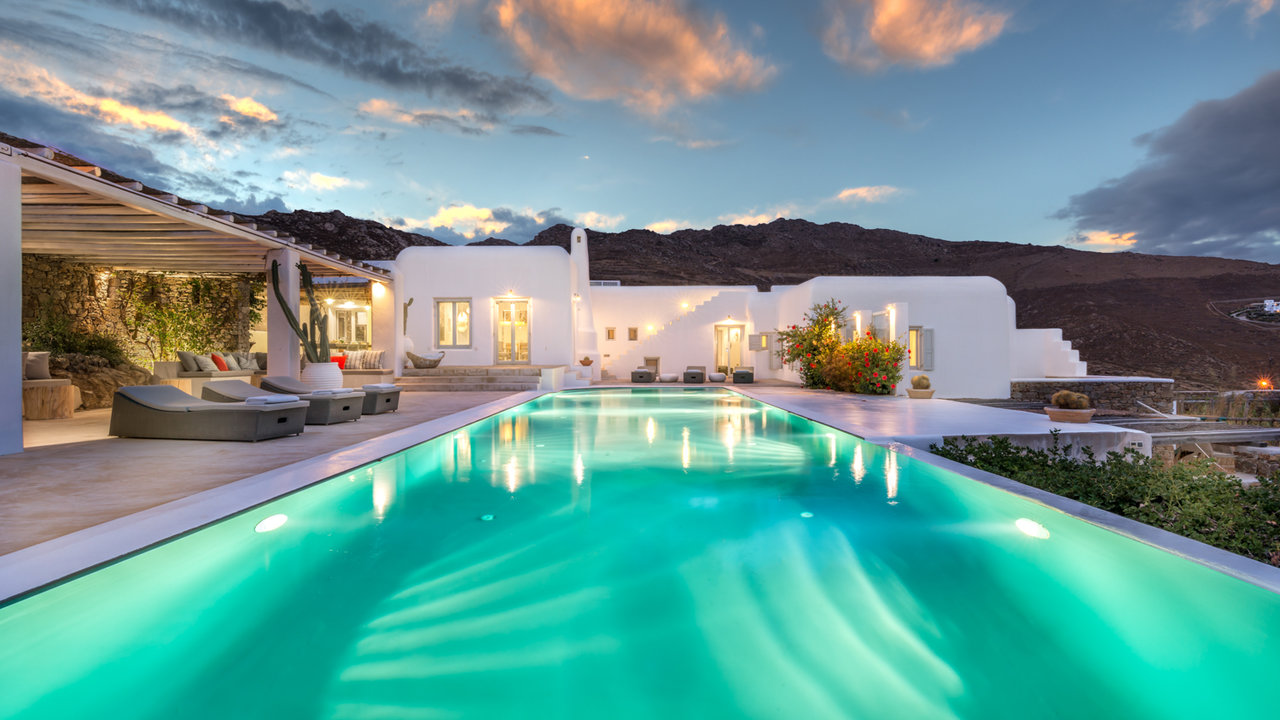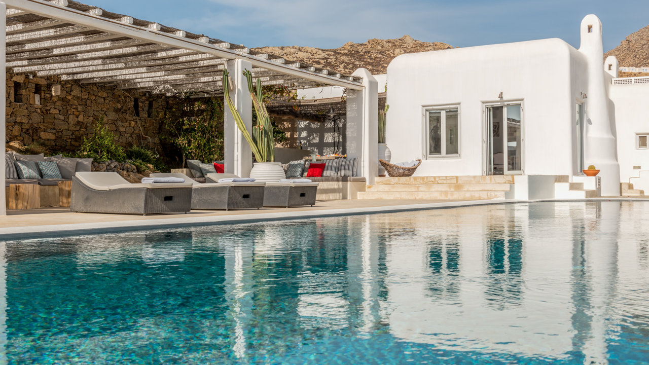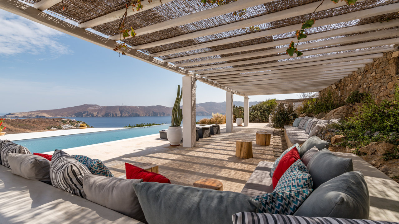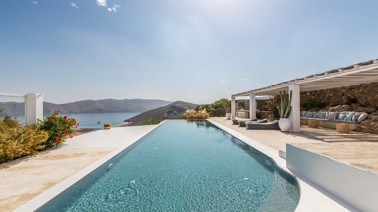 Ideally located in Panormos in Mykonos, villa Bellezza is definitely one of the most luxurious destinations in Cyclades. Highlighted by its astonishing sea vistas, its Mykonian ambience and its traditional architecture, villa Bellezza has astounding outer terraces where a private swimming pool with sunbeds are situated to relax and admire the immense sunset views, an outer bar and lounging area where you can capture the luxurious vibe Belezza provides while listening to your favorite playlists from the indoor and outdoor surround sound system and an outer dining area to enjoy an Al-Fresco dinner with your family and friends.