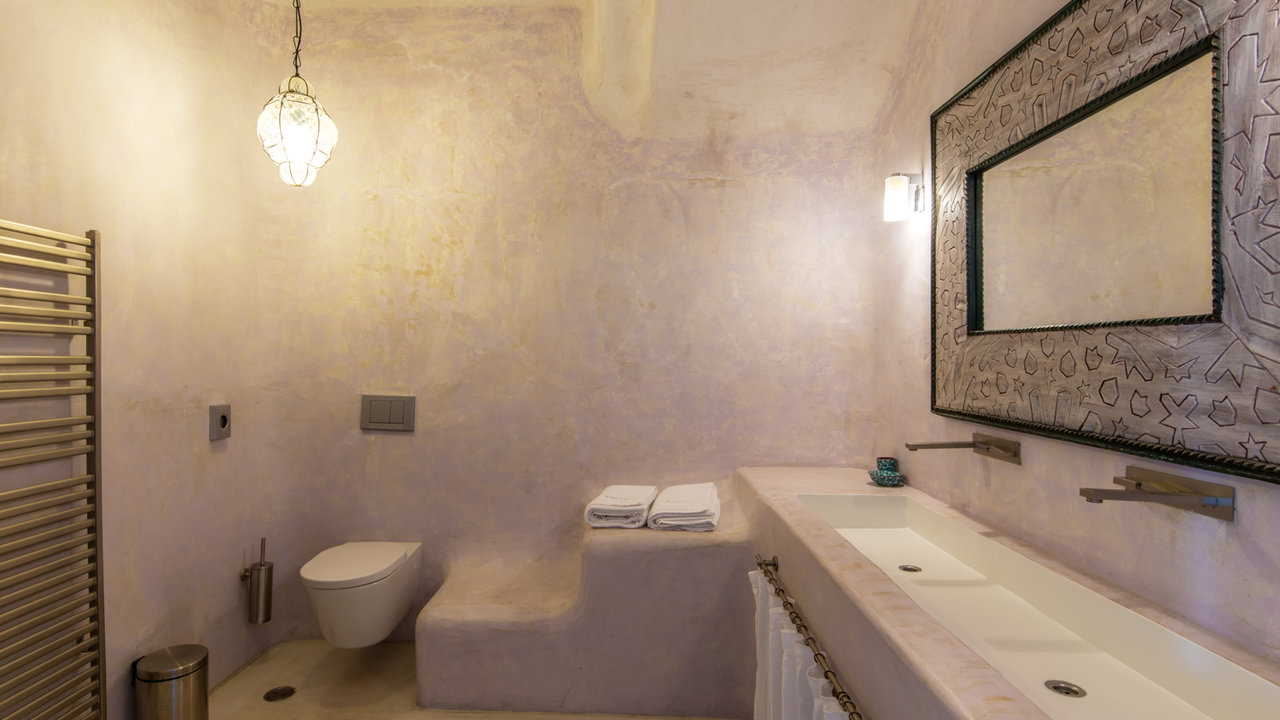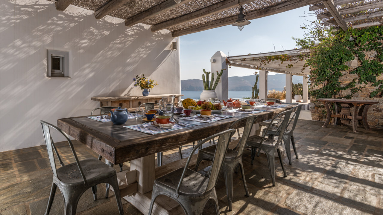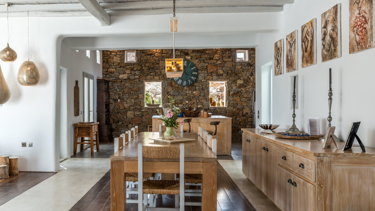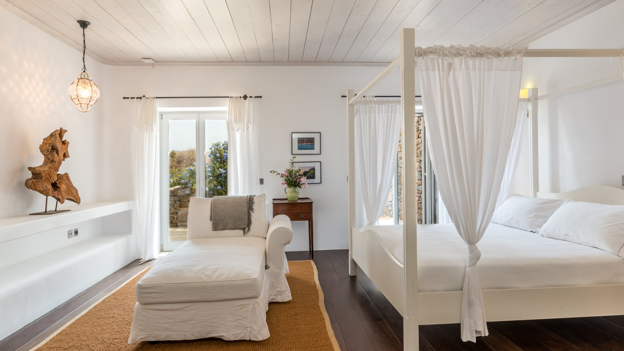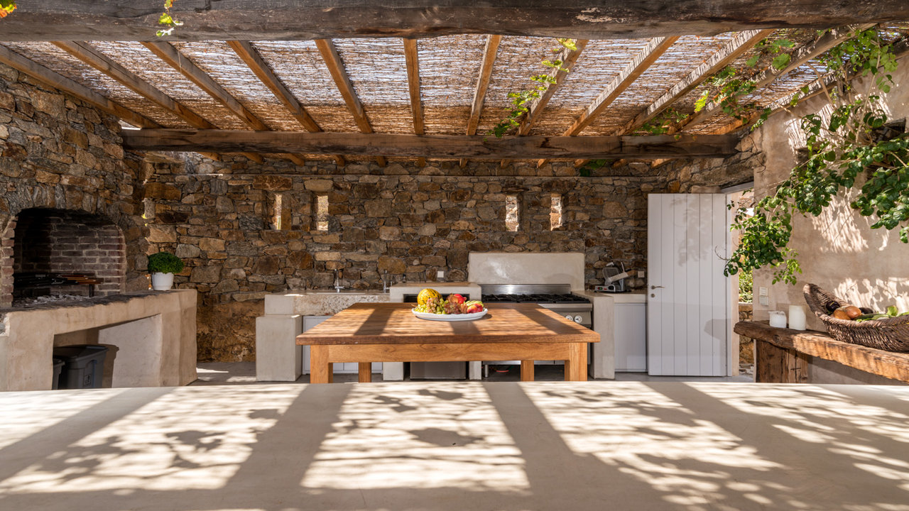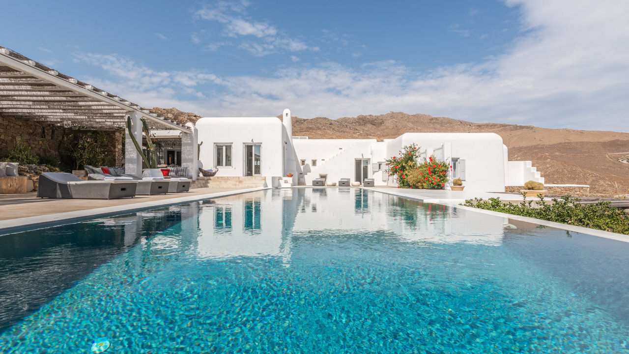 Ideally located in Panormos in Mykonos, villa Bellezza is definitely one of the most luxurious destinations in Cyclades. Highlighted by its astonishing sea vistas, its Mykonian ambience and its traditional architecture, villa Bellezza has astounding outer terraces where a private swimming pool with sunbeds are situated to relax and admire the immense sunset views, an outer bar and lounging area where you can capture the luxurious vibe Belezza provides while listening to your favorite playlists from the indoor and outdoor surround sound system and an outer dining area to enjoy an Al-Fresco dinner with your family and friends.