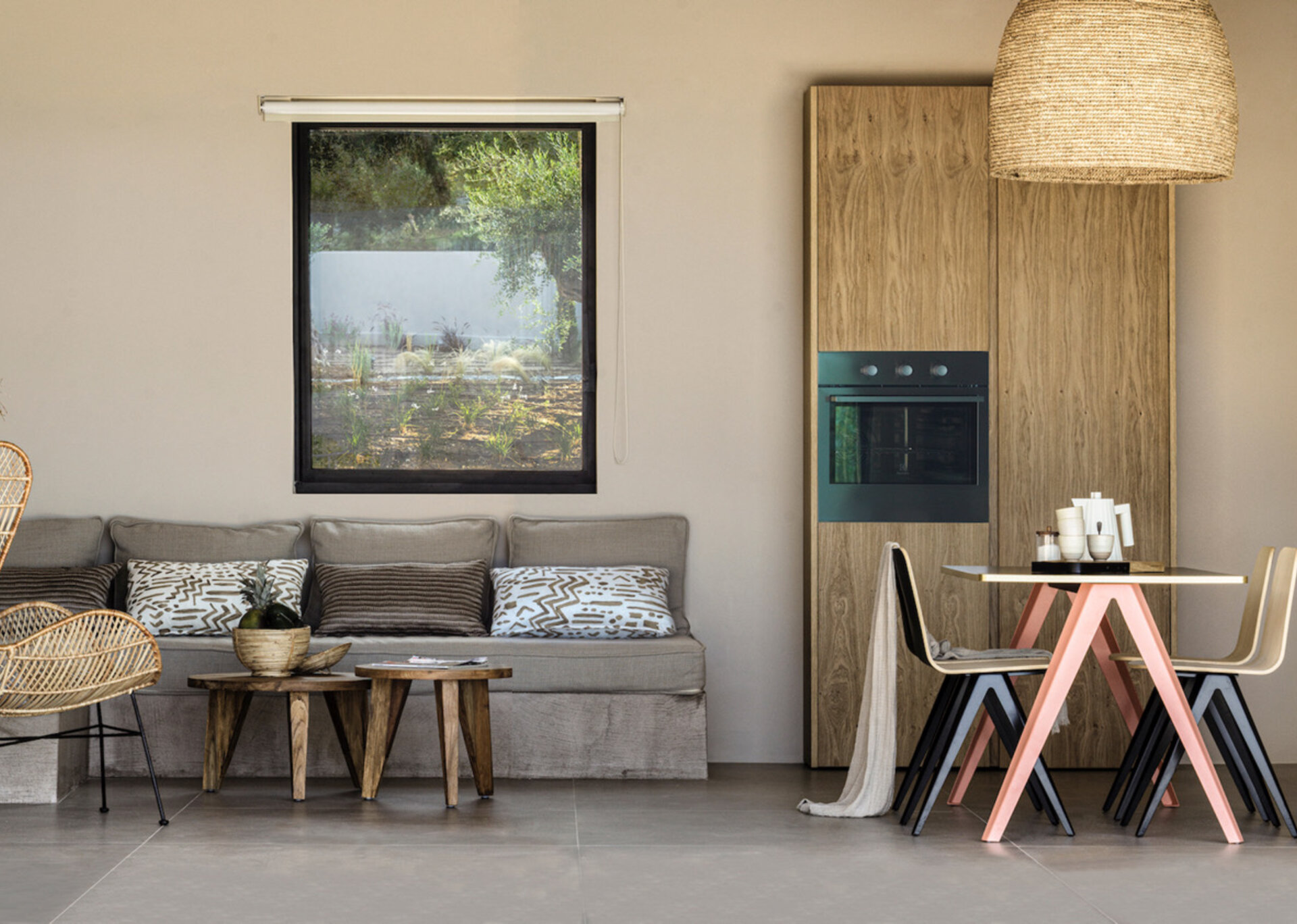 Designed to embody the essence of the Mediterranean lifestyle, Villa Blue exudes a warm and inviting ambiance, characterized by natural textures and earthy tones. Sink into plush pillows and sink your feet into the soft rugs, as carefully selected furniture pieces enhance the atmosphere, creating a personal sanctuary to relax and relish the gentle summer breeze.