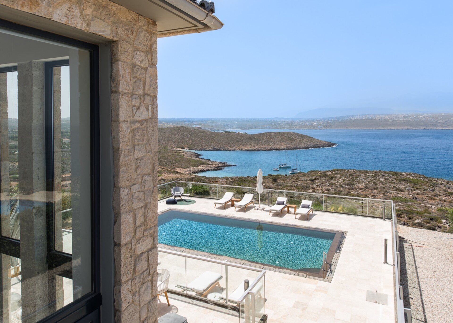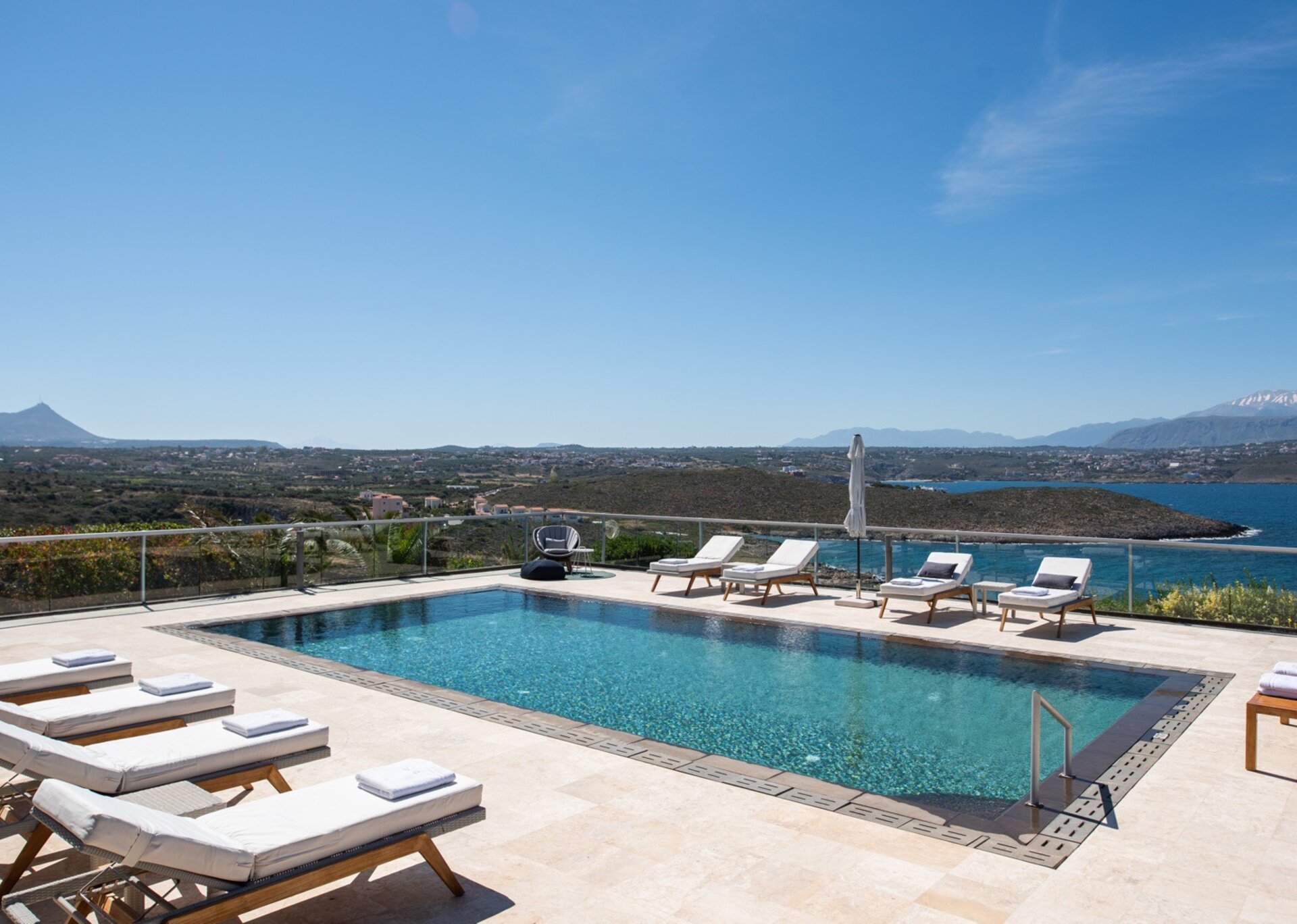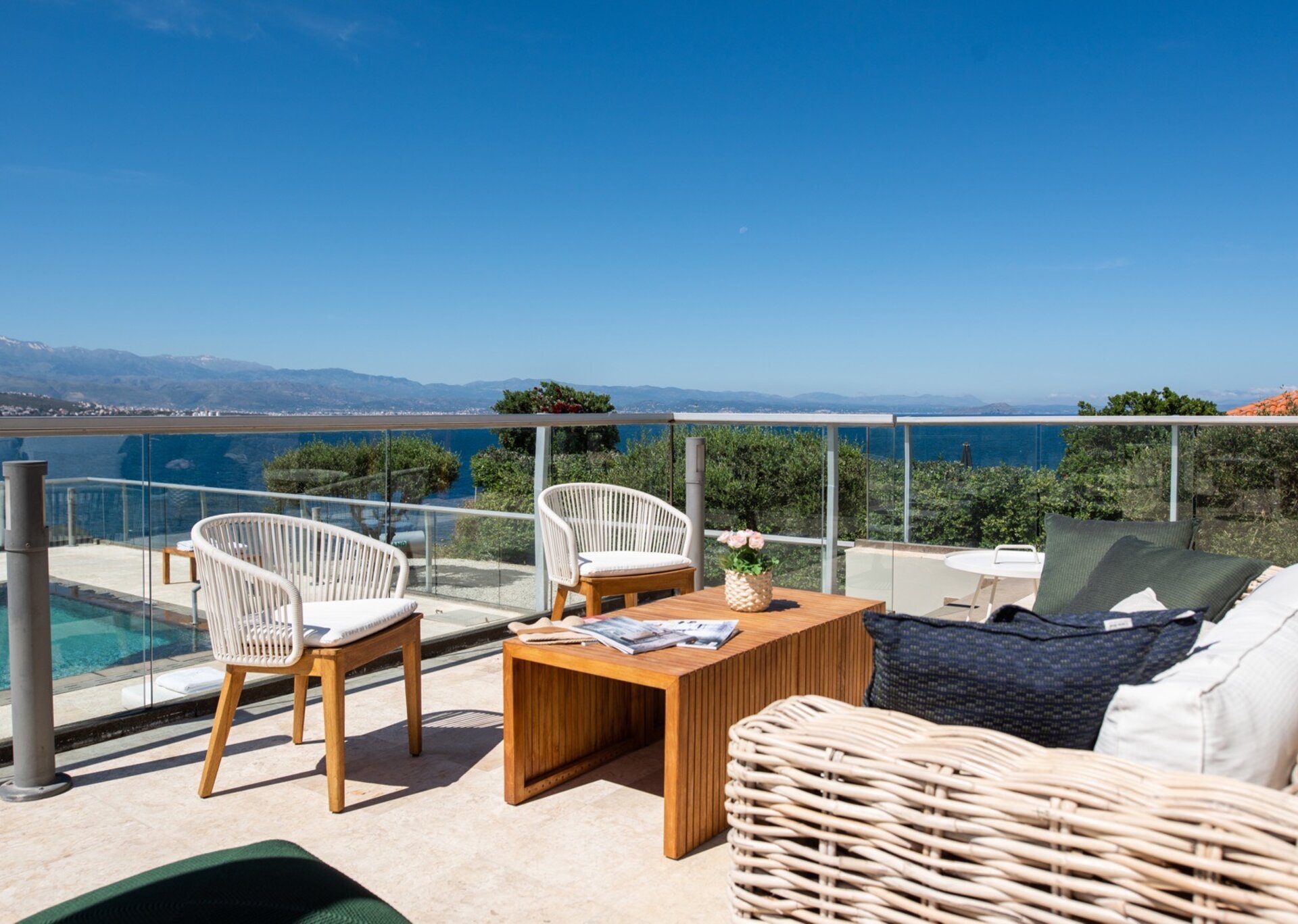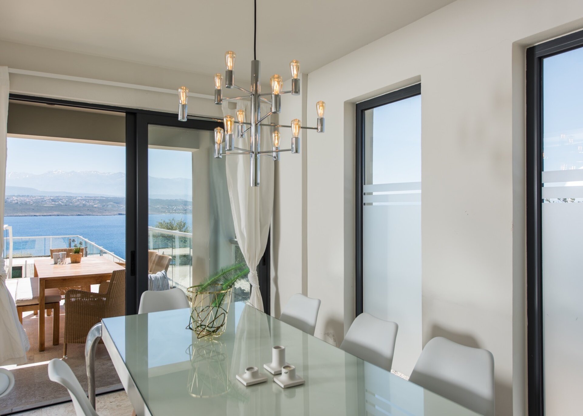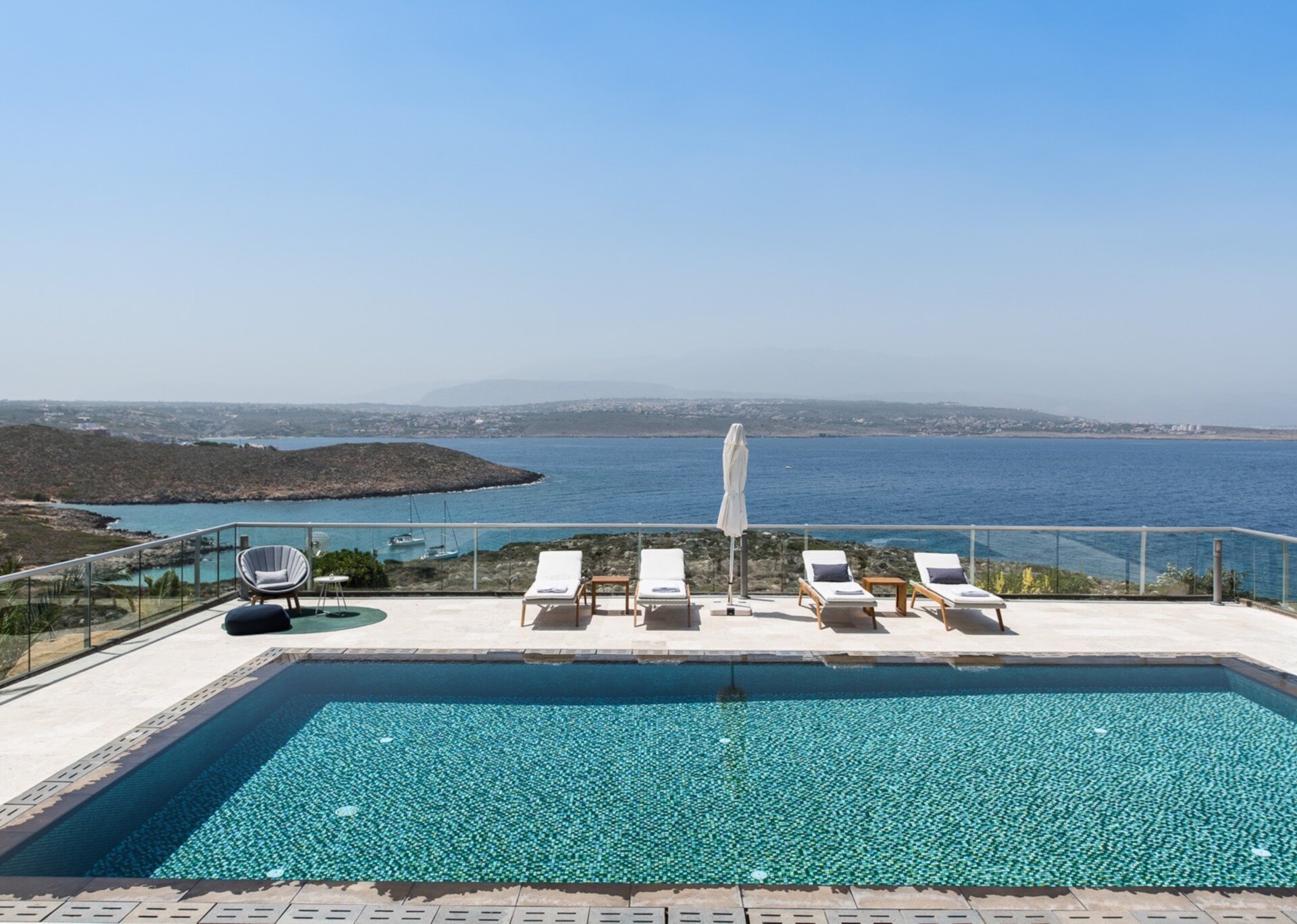 Highlighted by its astounding views of Chania town and Akrotiri peninsula, villa Bottega is a luxurious destination in Crete that can fascinate even the most demanding guests. The villa has spacious outer terraces with numerous lounging spots, a large private swimming pool surrounded sunbeds and a lovely dining area. Bottega offers its guests spectacular sunset views that can be admired from different angles. The property is built on the edge of the hill, in a privilleged spot in front of the sea and has a fascinating ocean vista.