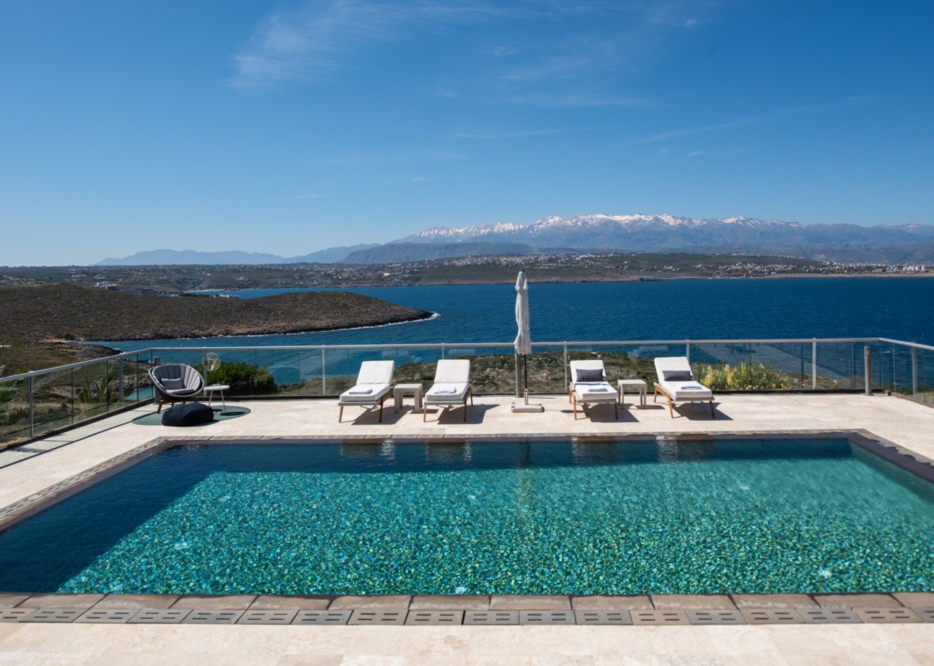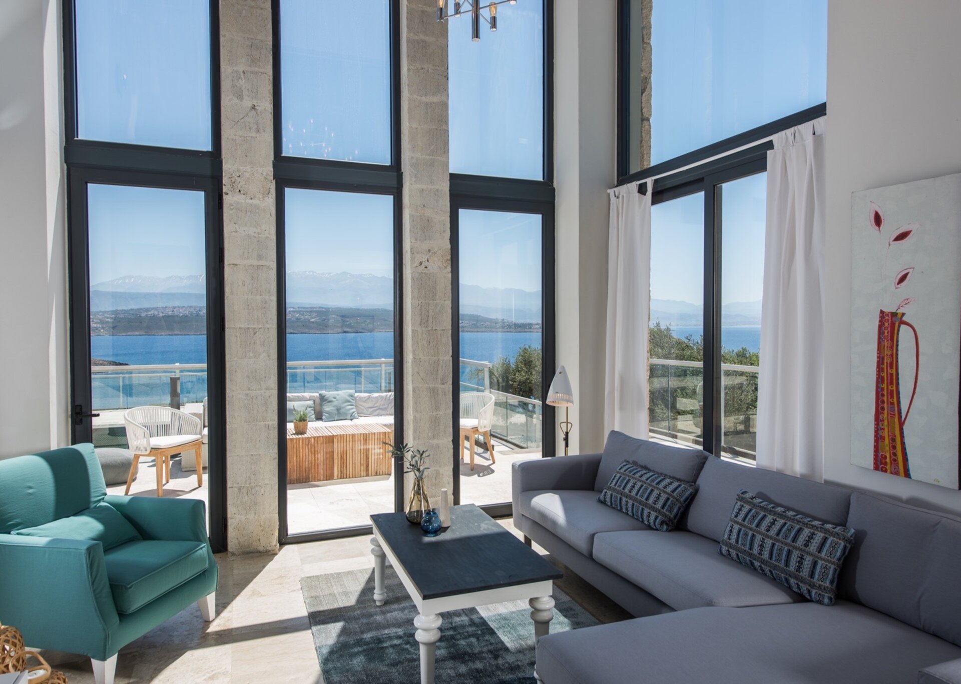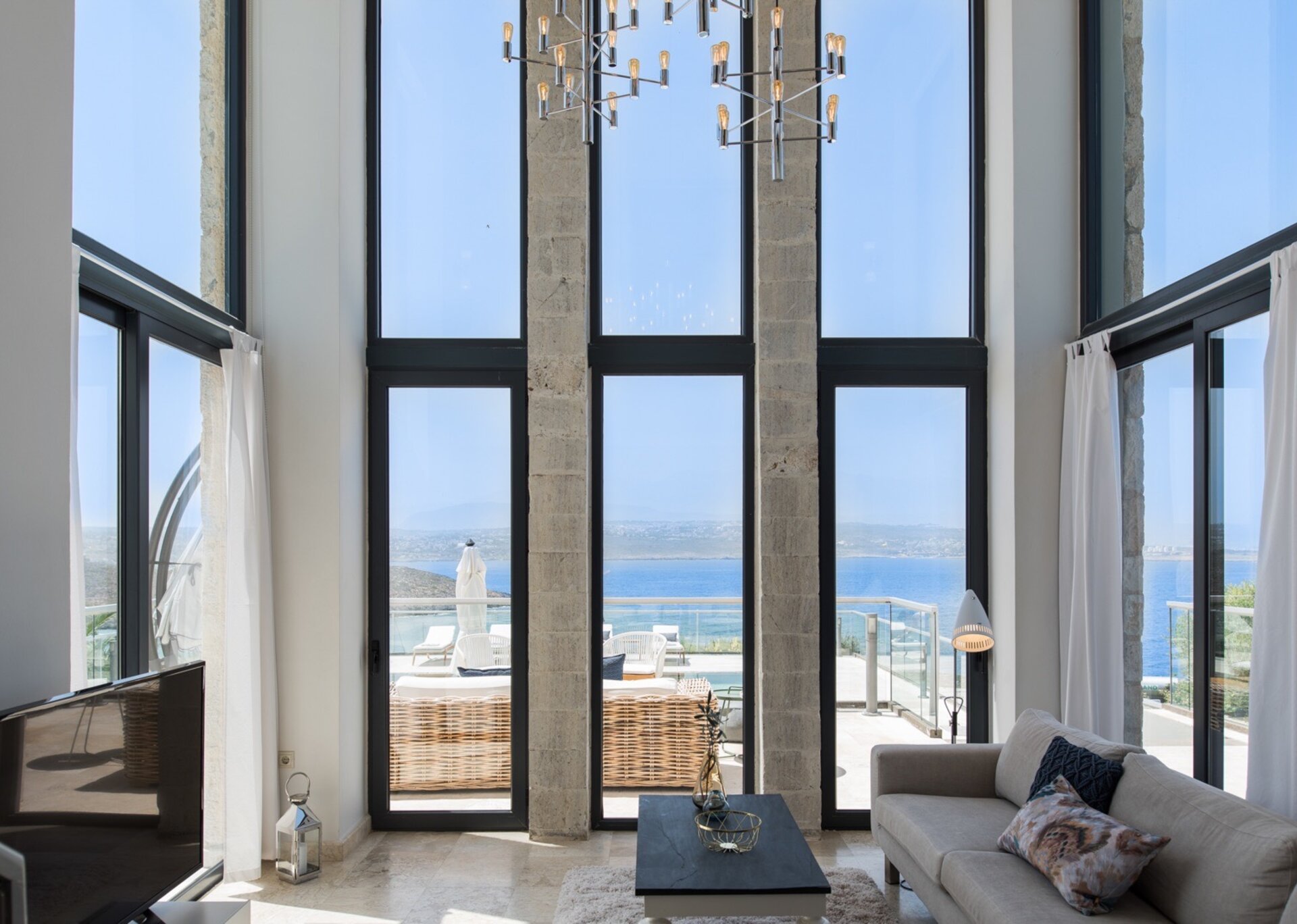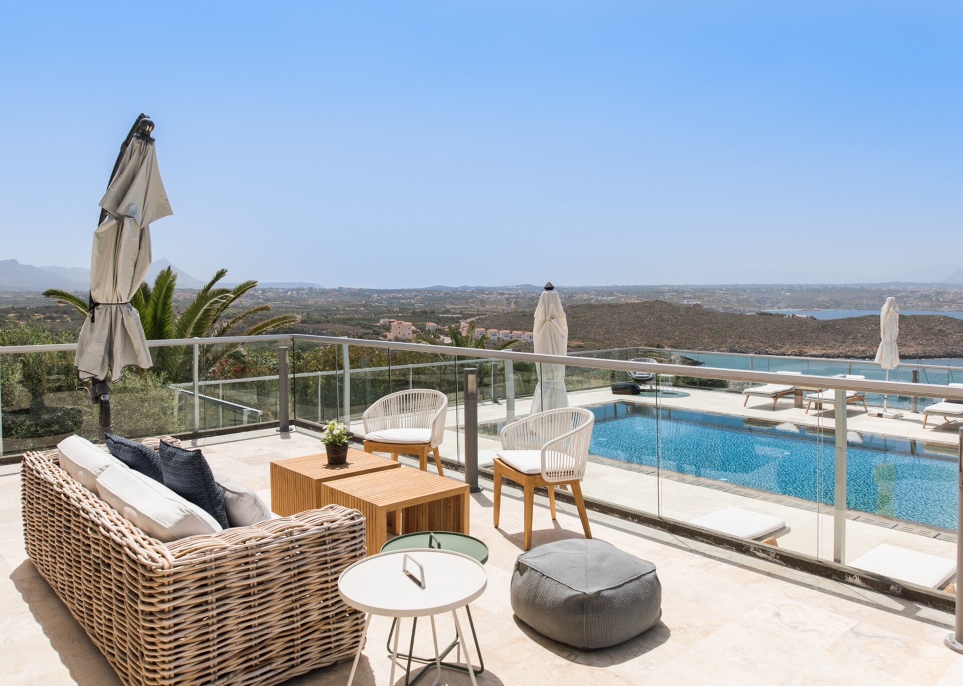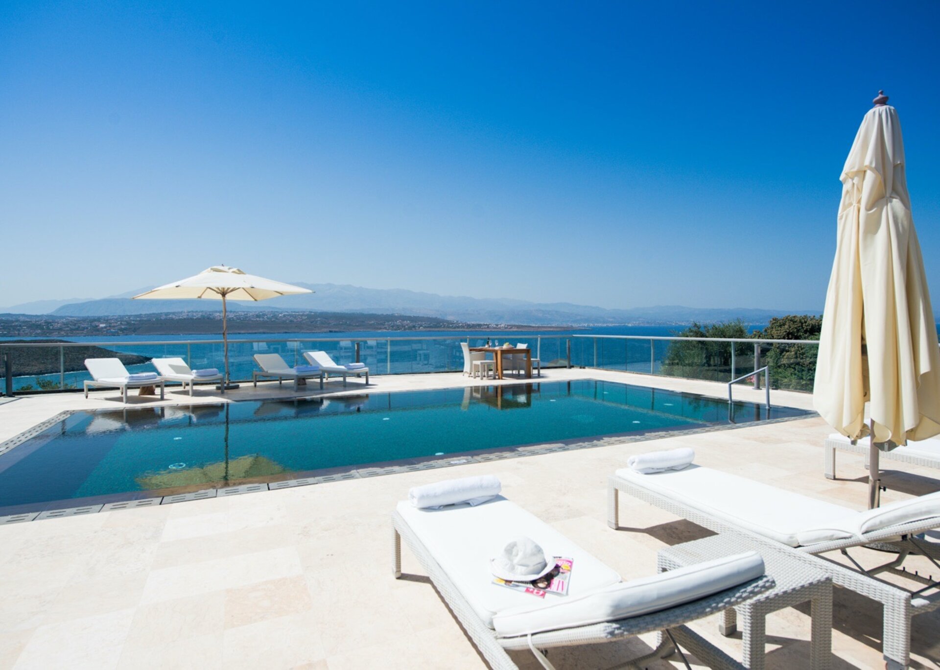 Highlighted by its astounding views of Chania town and Akrotiri peninsula, villa Bottega is a luxurious destination in Crete that can fascinate even the most demanding guests. The villa has spacious outer terraces with numerous lounging spots, a large private swimming pool surrounded sunbeds and a lovely dining area. Bottega offers its guests spectacular sunset views that can be admired from different angles. The property is built on the edge of the hill, in a privilleged spot in front of the sea and has a fascinating ocean vista.