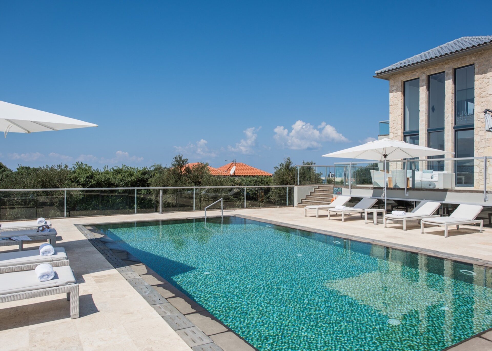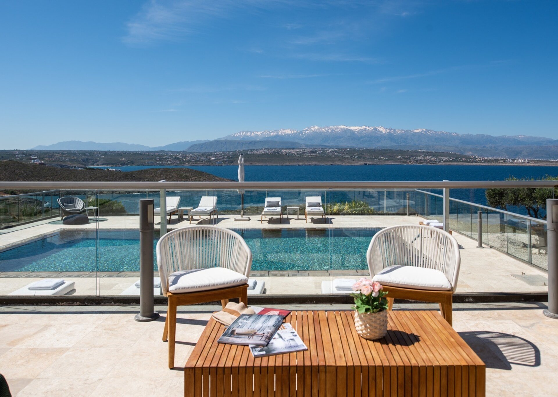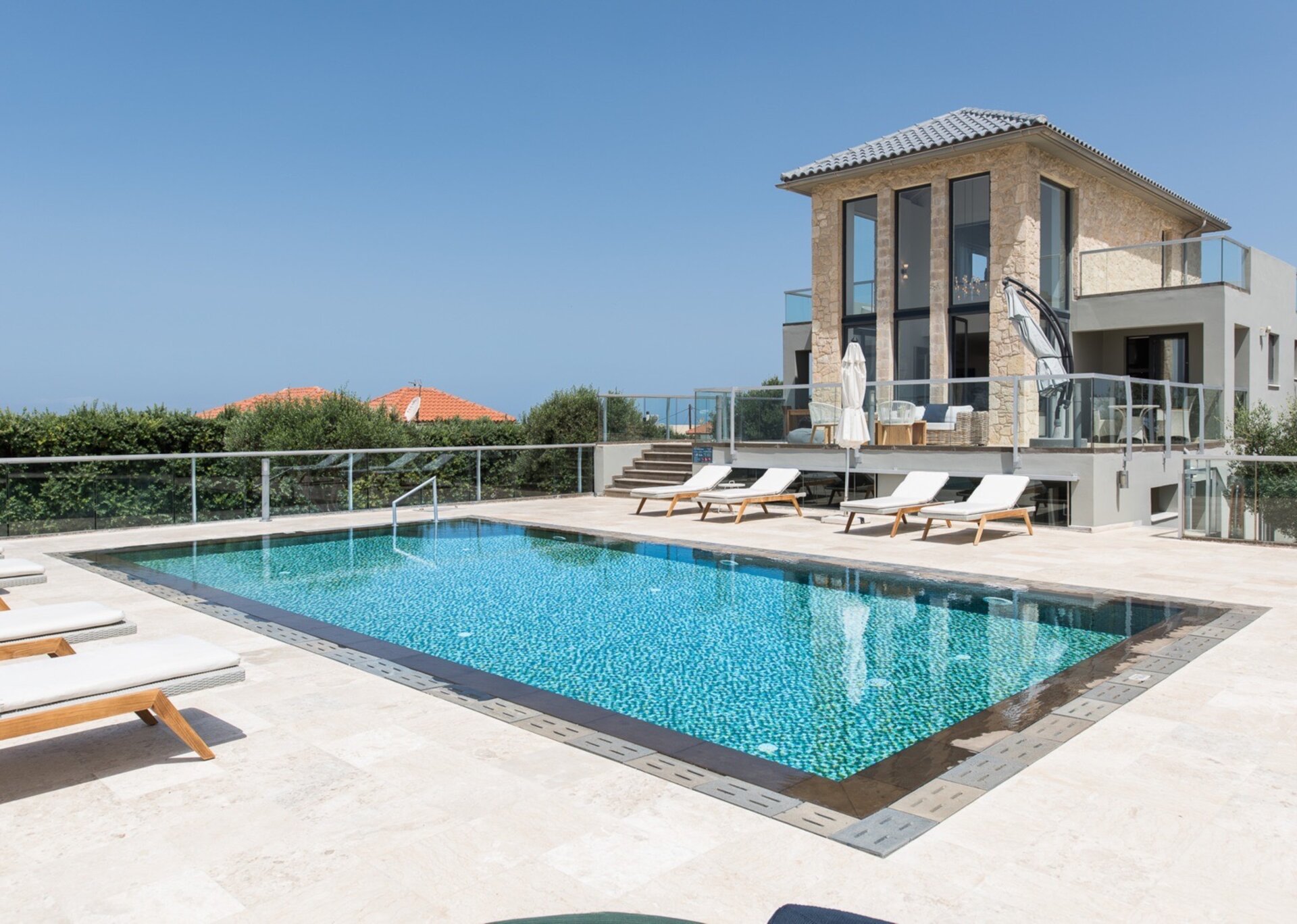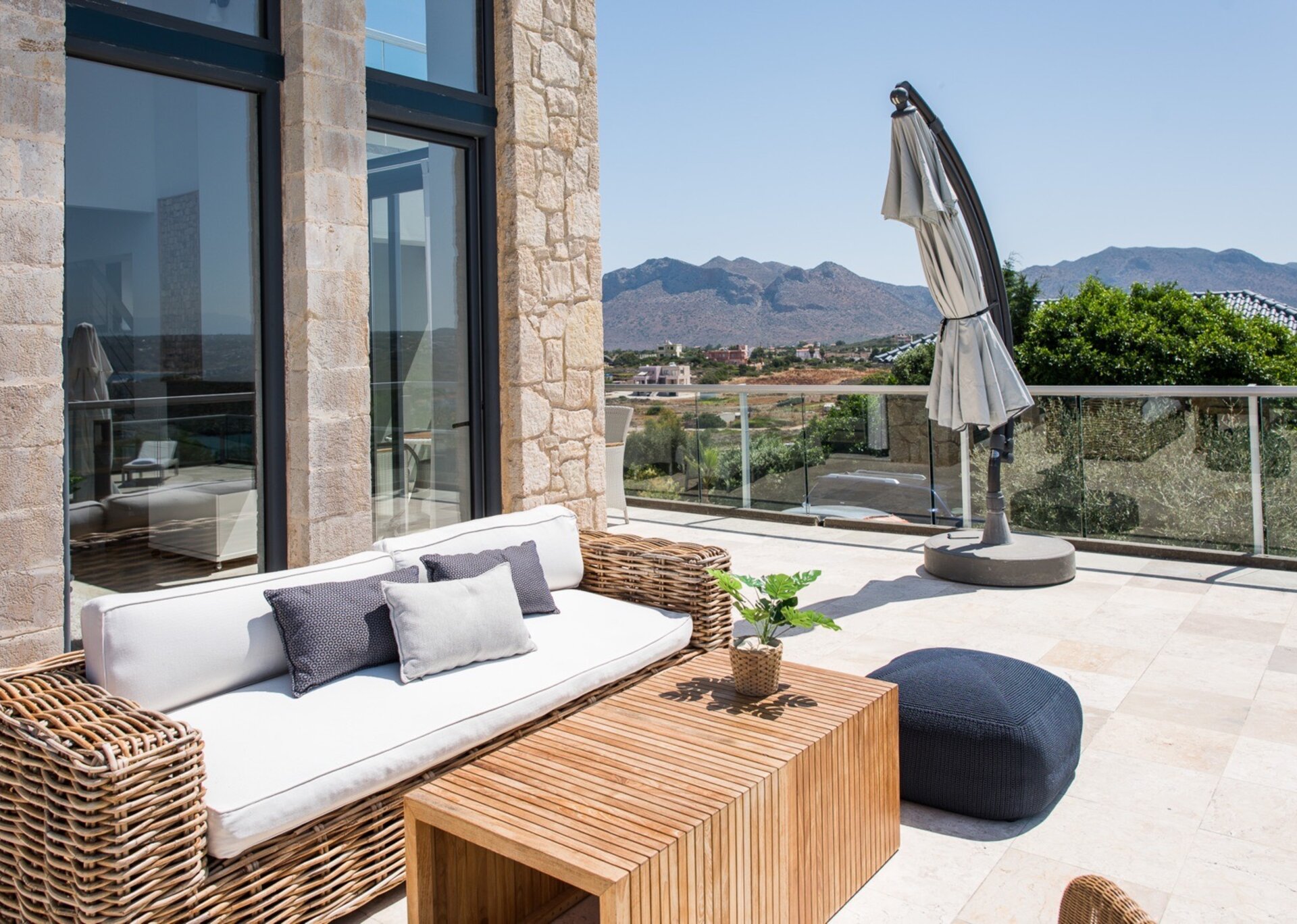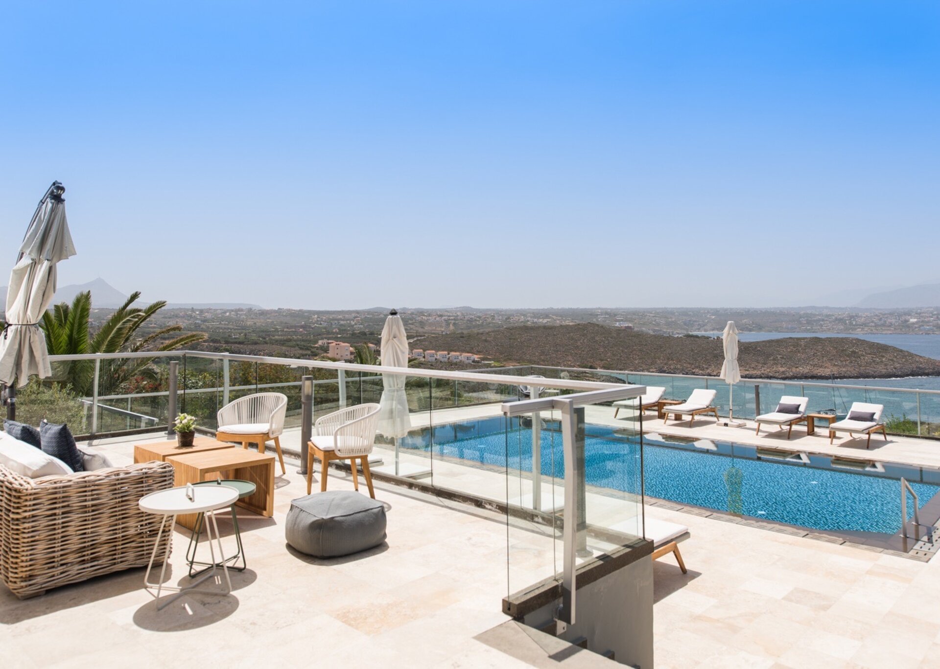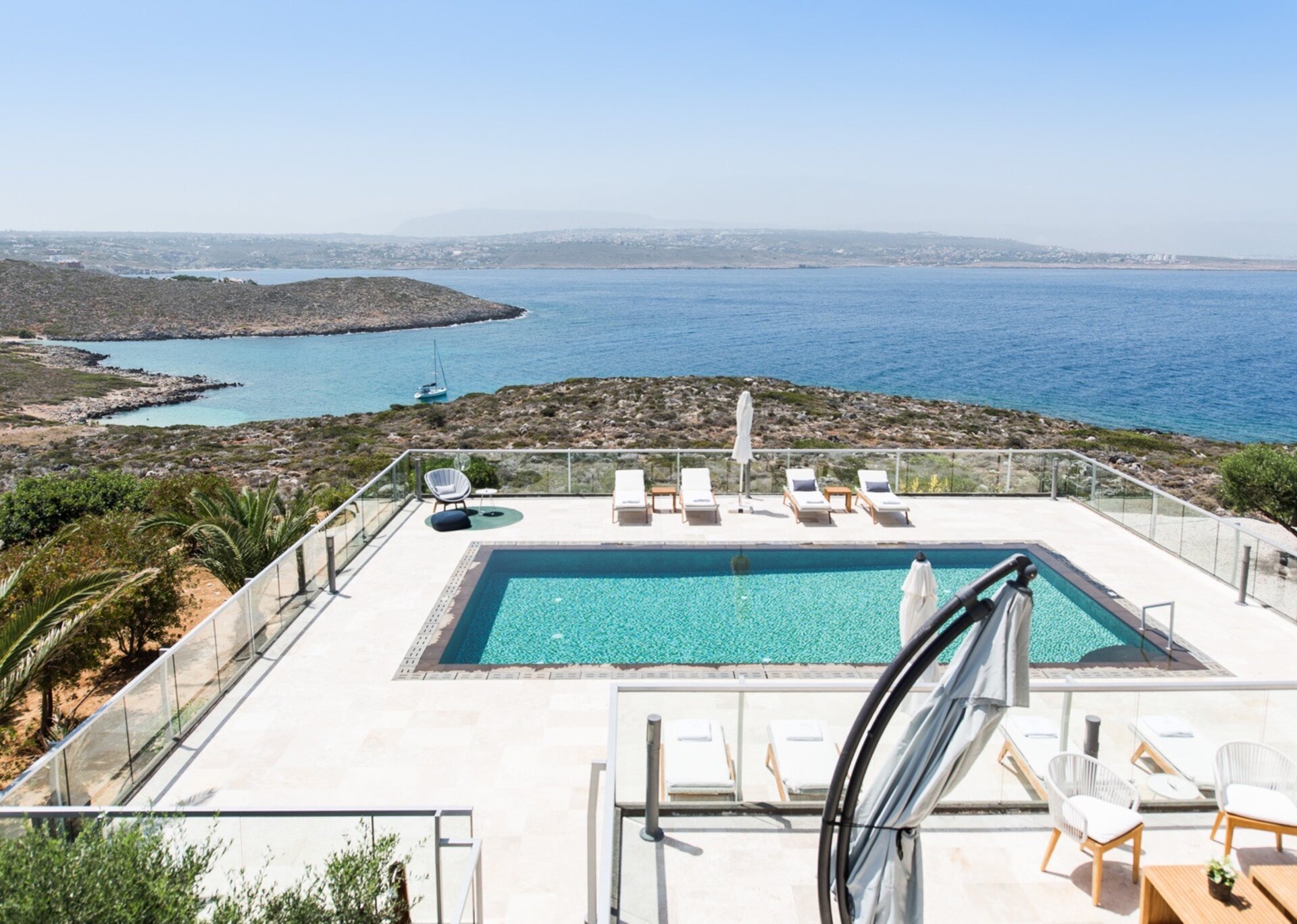 Highlighted by its astounding views of Chania town and Akrotiri peninsula, villa Bottega is a luxurious destination in Crete that can fascinate even the most demanding guests. The villa has spacious outer terraces with numerous lounging spots, a large private swimming pool surrounded sunbeds and a lovely dining area. Bottega offers its guests spectacular sunset views that can be admired from different angles. The property is built on the edge of the hill, in a privilleged spot in front of the sea and has a fascinating ocean vista.