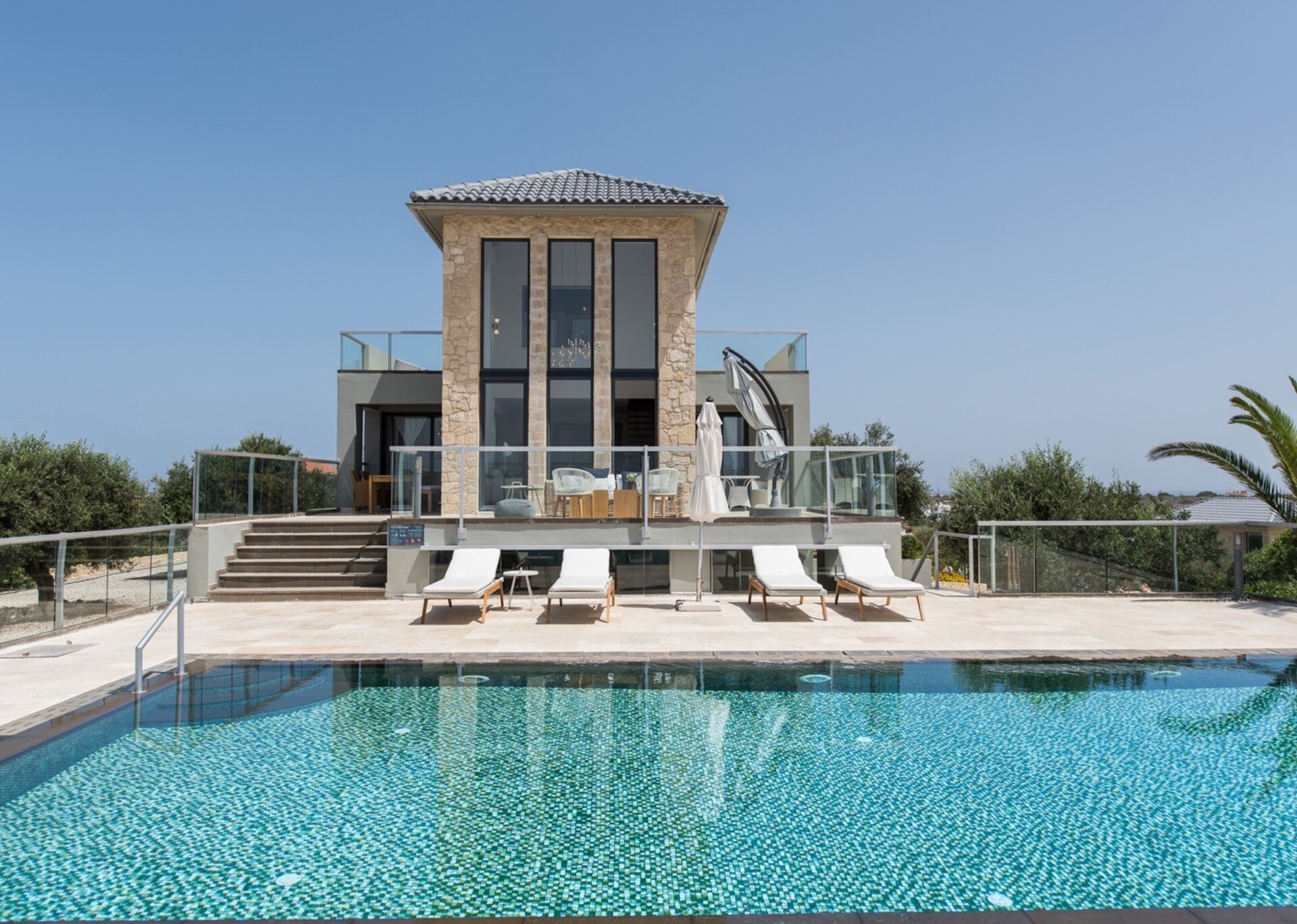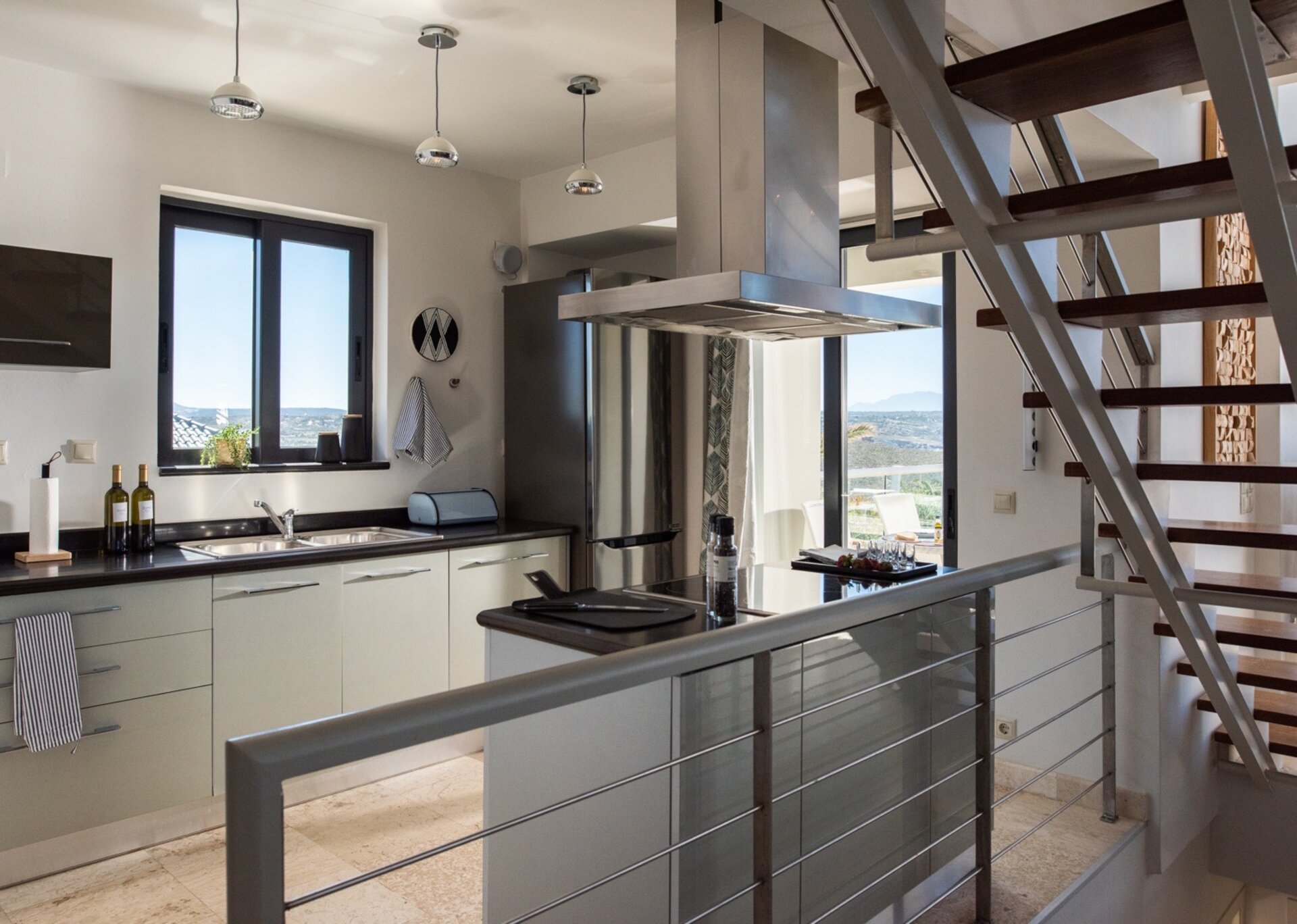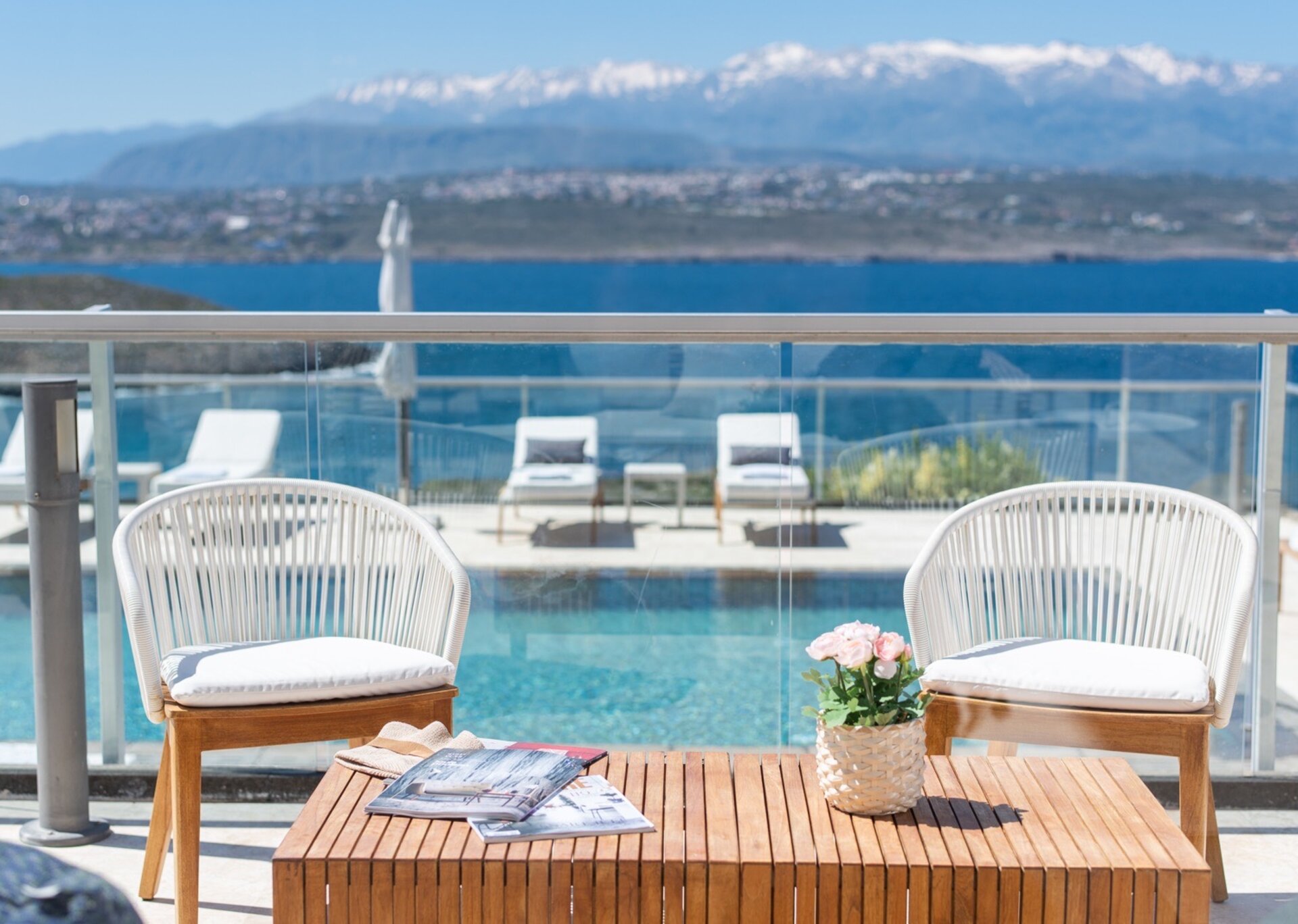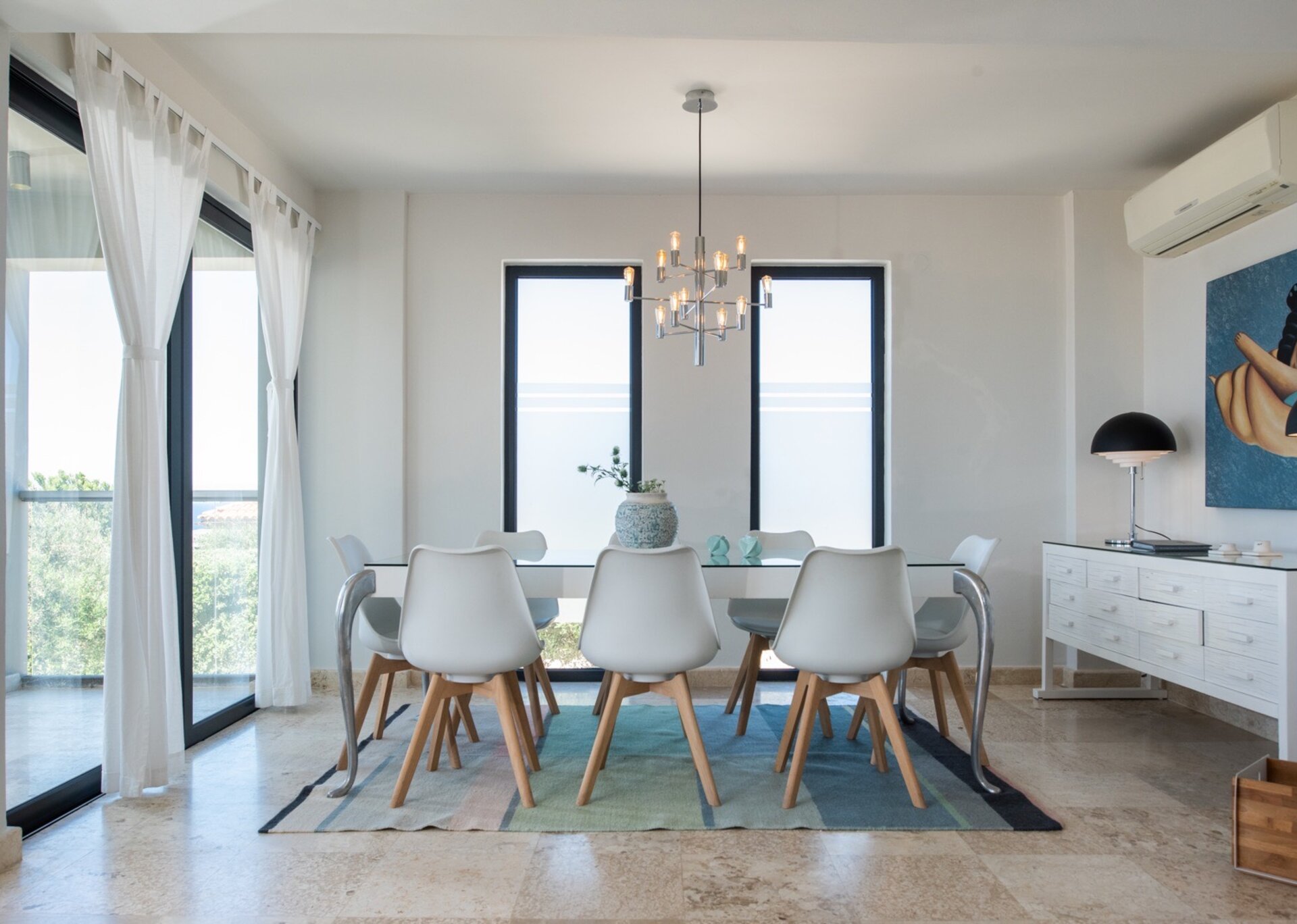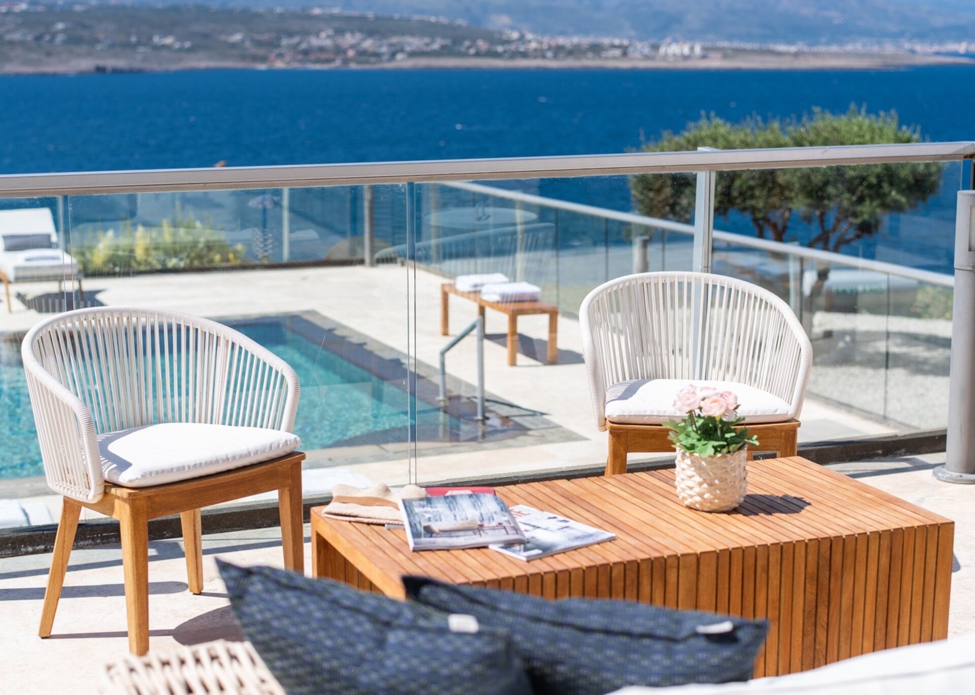 Highlighted by its astounding views of Chania town and Akrotiri peninsula, villa Bottega is a luxurious destination in Crete that can fascinate even the most demanding guests. The villa has spacious outer terraces with numerous lounging spots, a large private swimming pool surrounded sunbeds and a lovely dining area. Bottega offers its guests spectacular sunset views that can be admired from different angles. The property is built on the edge of the hill, in a privilleged spot in front of the sea and has a fascinating ocean vista.