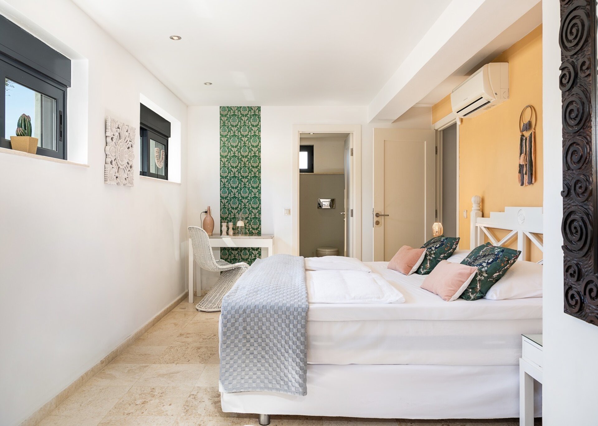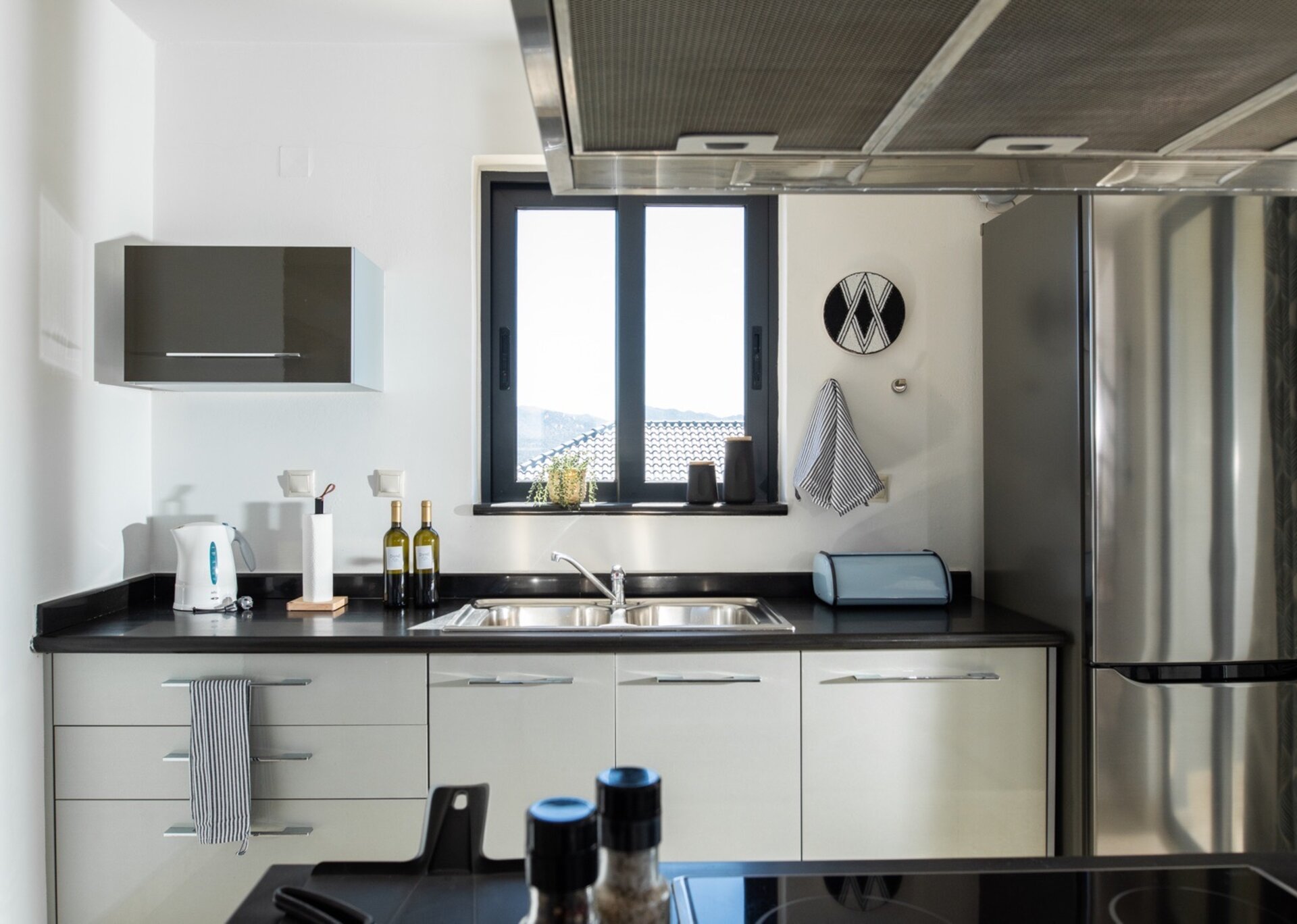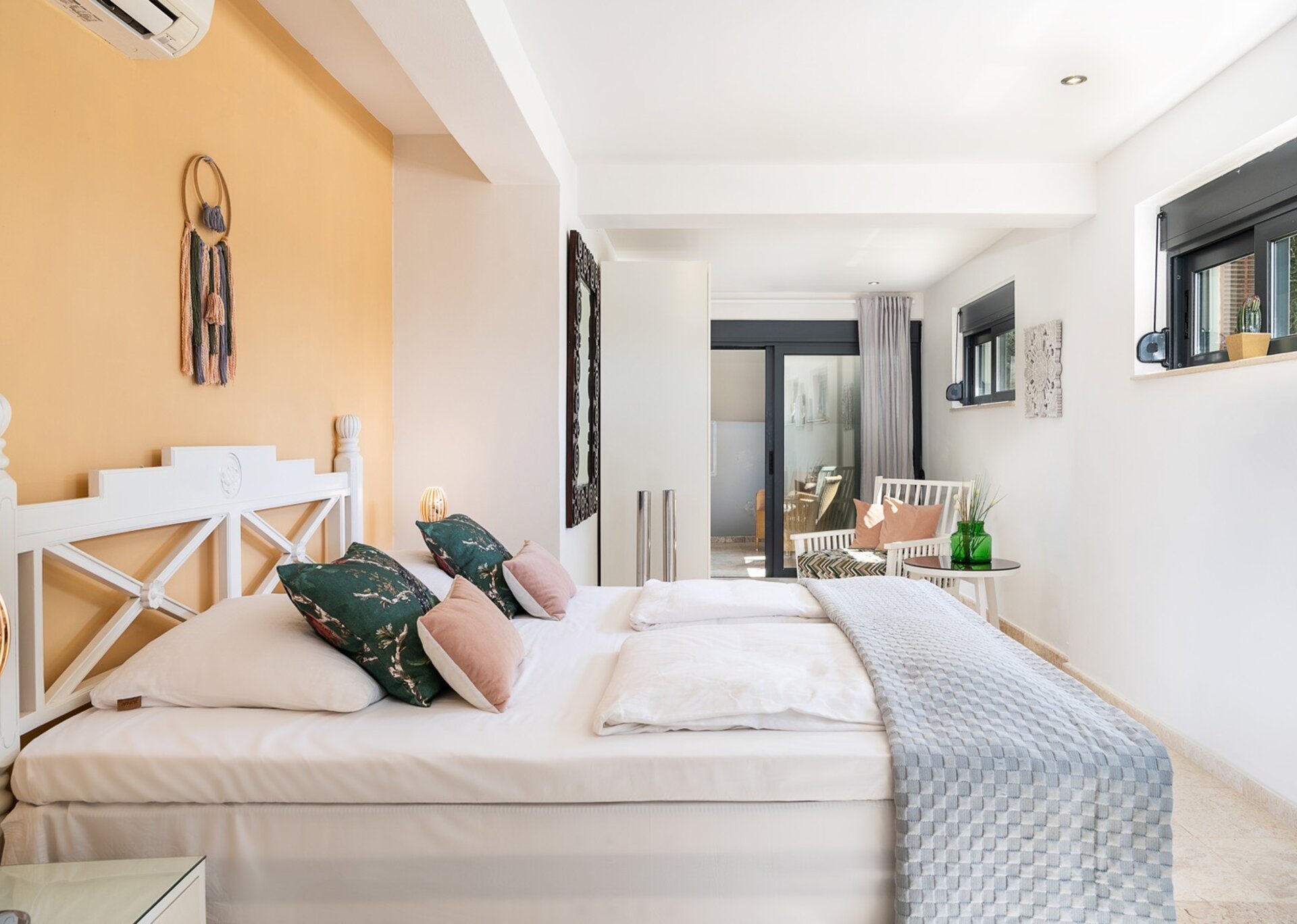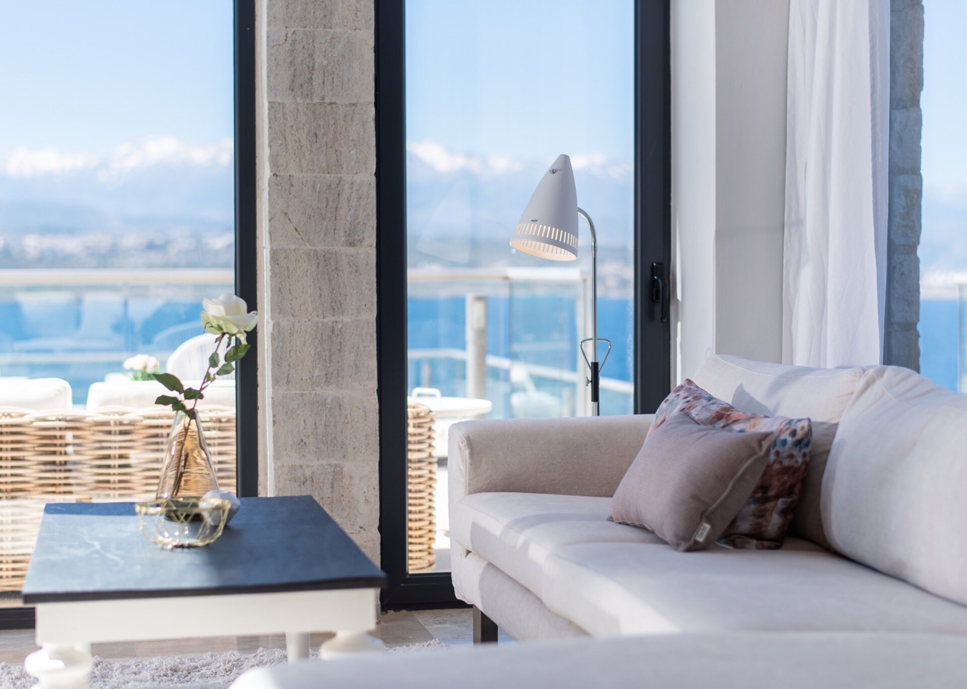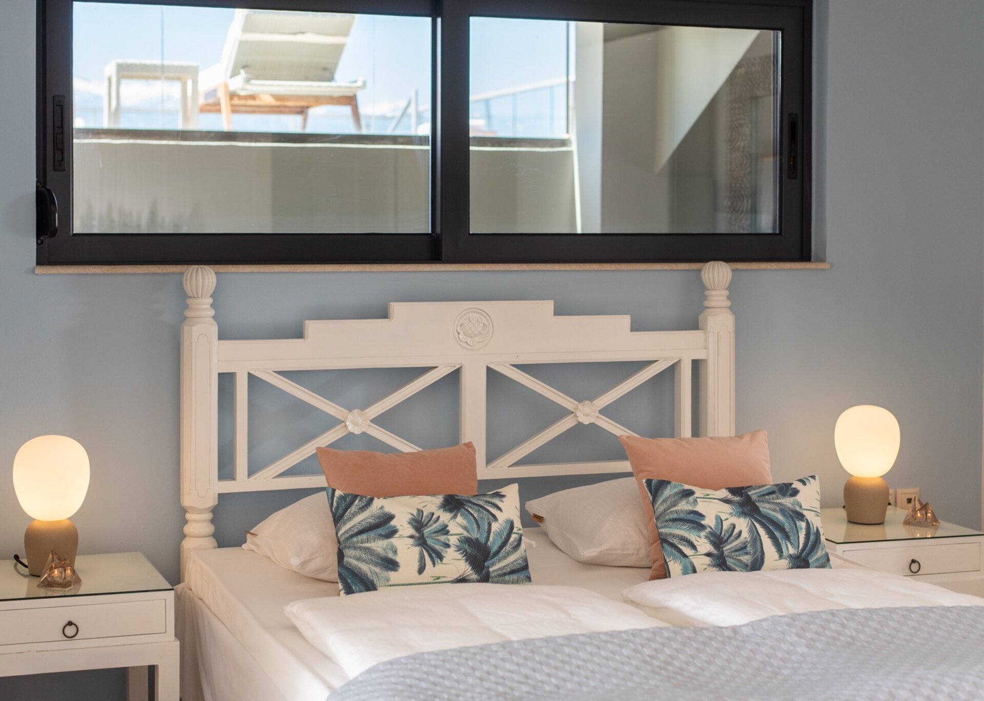 Highlighted by its astounding views of Chania town and Akrotiri peninsula, villa Bottega is a luxurious destination in Crete that can fascinate even the most demanding guests. The villa has spacious outer terraces with numerous lounging spots, a large private swimming pool surrounded sunbeds and a lovely dining area. Bottega offers its guests spectacular sunset views that can be admired from different angles. The property is built on the edge of the hill, in a privilleged spot in front of the sea and has a fascinating ocean vista.