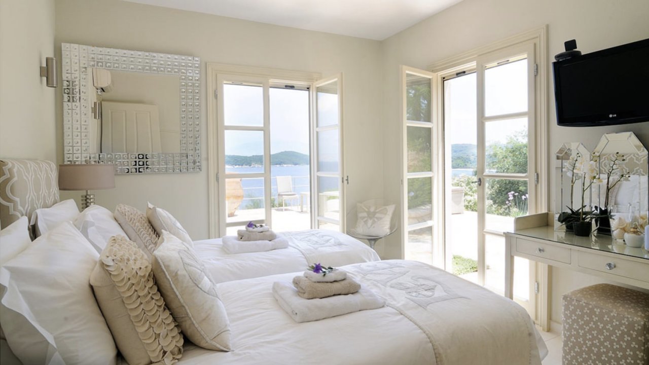 The villa has numerous large windows that invite the sunlight and the views inside. That's why Carla is always sunny in the day an has this comfortable vibe at night. The stunning modern decoration of the inner place, the comfortable mood and the astounding interior design, along with the high quality furniture are also highlights for this luxurious retreat. Carla has 3 spacious en suited bedrooms that can easily accommodate up to 6 guests.
