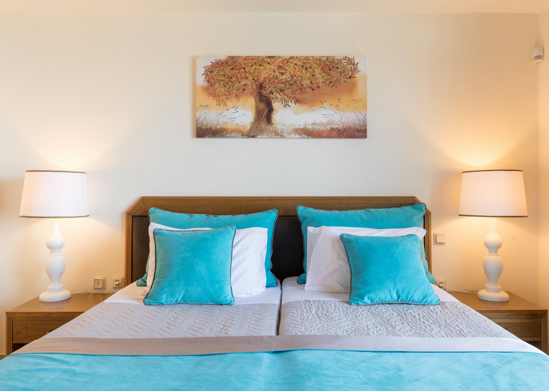- 2 twin bedrooms (90cm x 200cm beds) with en suite bathrooms with shared large balcony