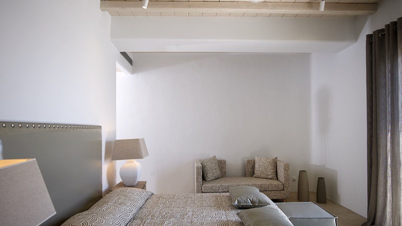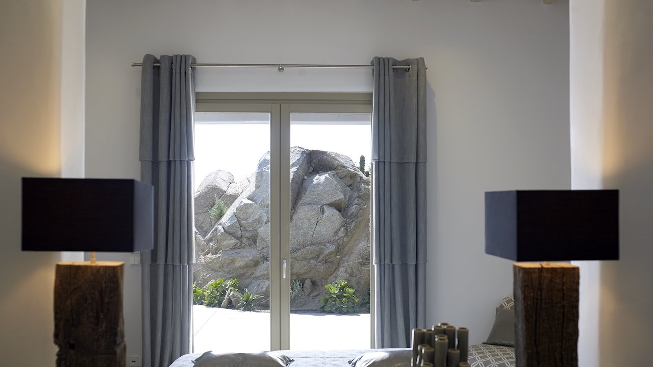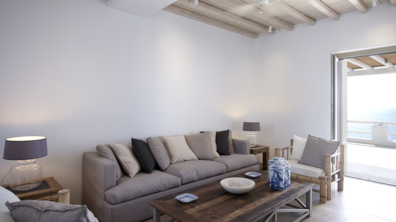 Highlighted with an immaculate vista of the stunning Aegean sky and crystal-clear sea, the extraordinary outdoor areas of villa Carolyn showcase the essence of Cycladic beauty. The charming ambience, complemented by stylish interior design, makes this Mykonian gem an unrivaled luxury home.