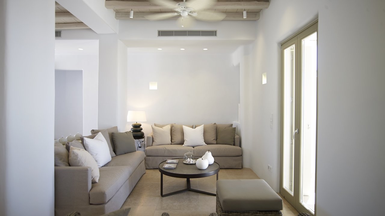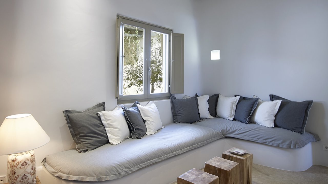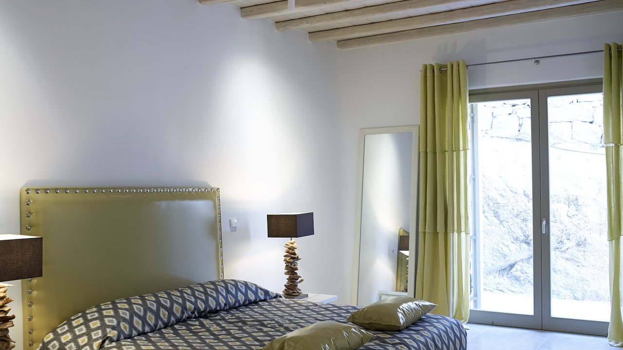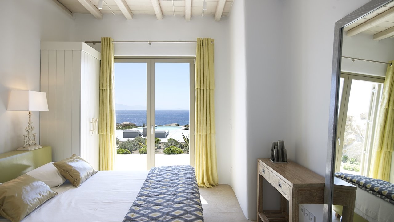 Highlighted with an immaculate vista of the stunning Aegean sky and crystal-clear sea, the extraordinary outdoor areas of villa Carolyn showcase the essence of Cycladic beauty. The charming ambience, complemented by stylish interior design, makes this Mykonian gem an unrivaled luxury home.