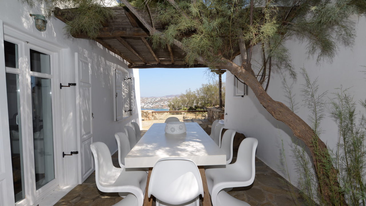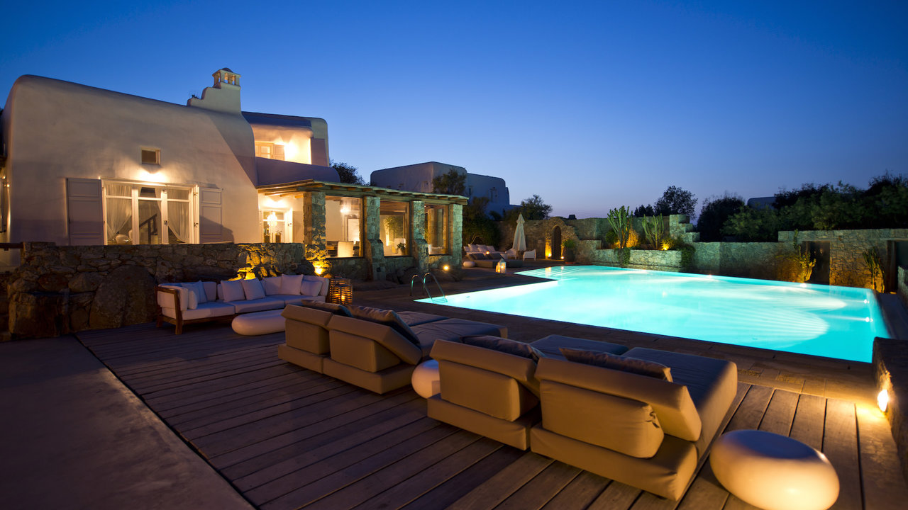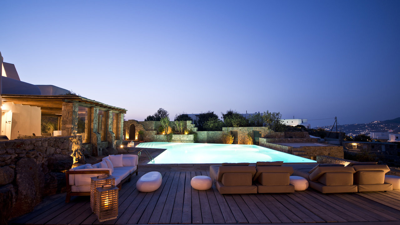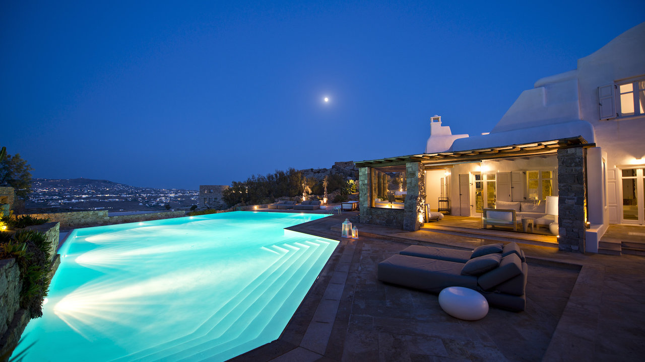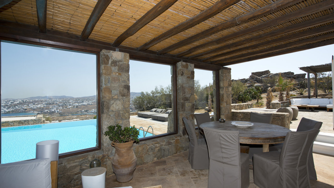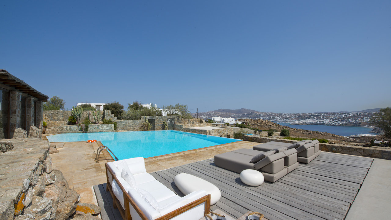 Villa Cassia is a 6 bedroom Villa with private pool in Ano Diakoftis area of St. John, a short distance from Ornos Beach, overlooking the beautiful view of Little Venice in Mykonos. In harmony with the traditional architecture of Mykonos island and enjoying one of the most panoramic locations, Villa Cassia stands as a tribute to traditional design and appreciation of space.