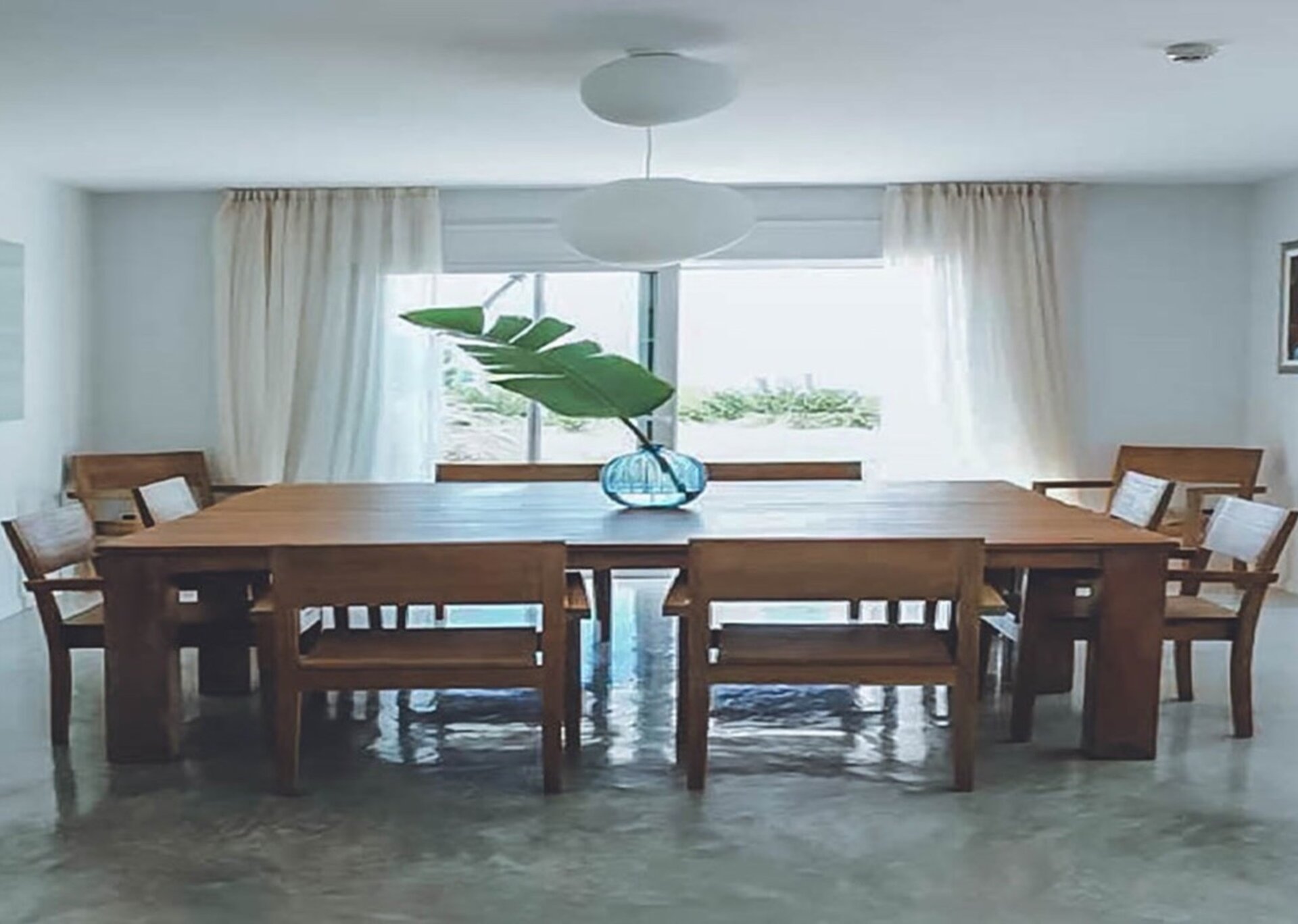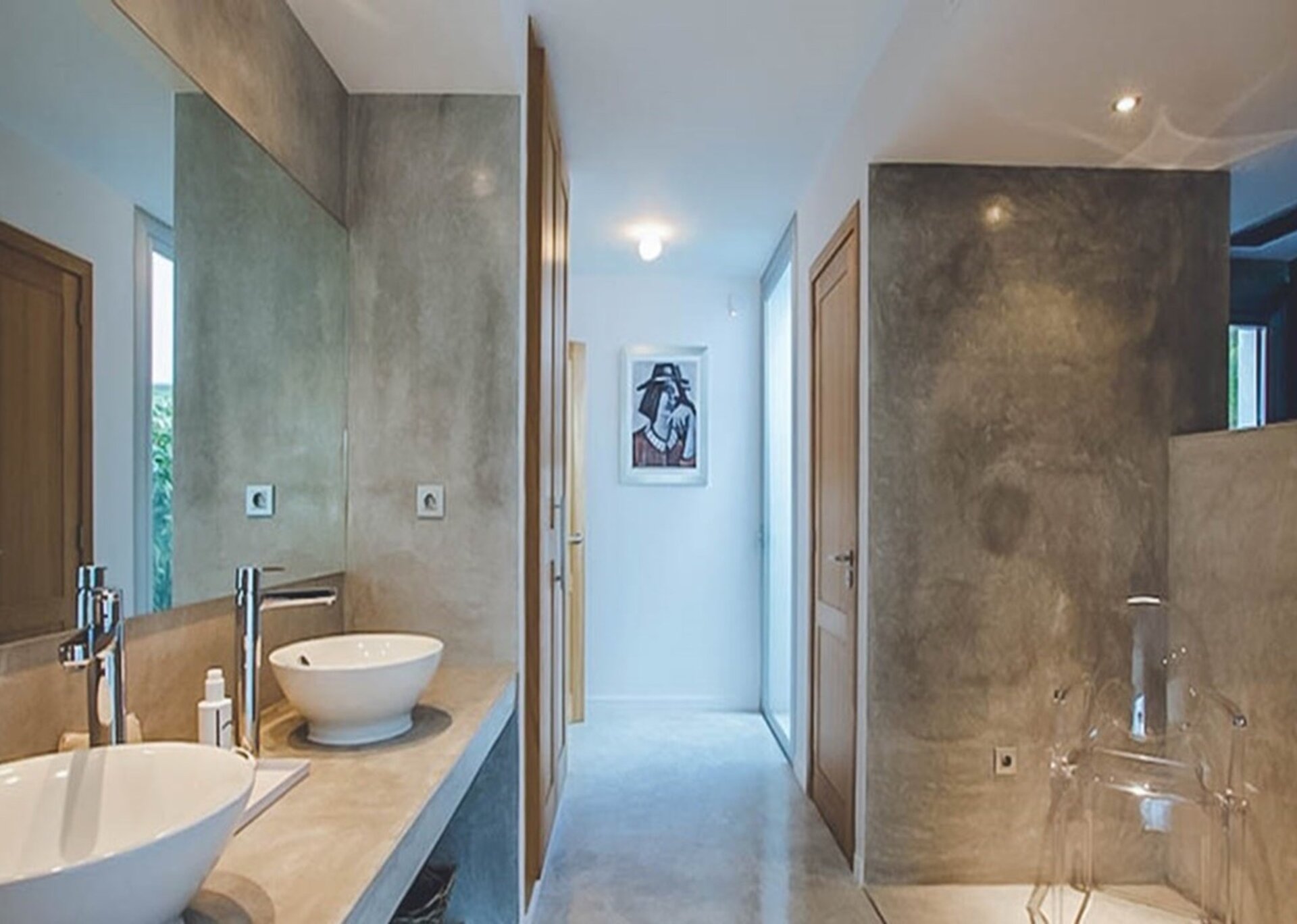 Each of the bedrooms within Villa Valentina provides ample space, thoughtful storage solutions, and comfortable double beds. Two suites feature ensuite bathrooms, while the remaining four guest bedrooms share two well-appointed bathrooms. Embracing a contemporary style, every room boasts enticing textured finishes of polished concrete and striking feature walls, complementing the modern furnishings.