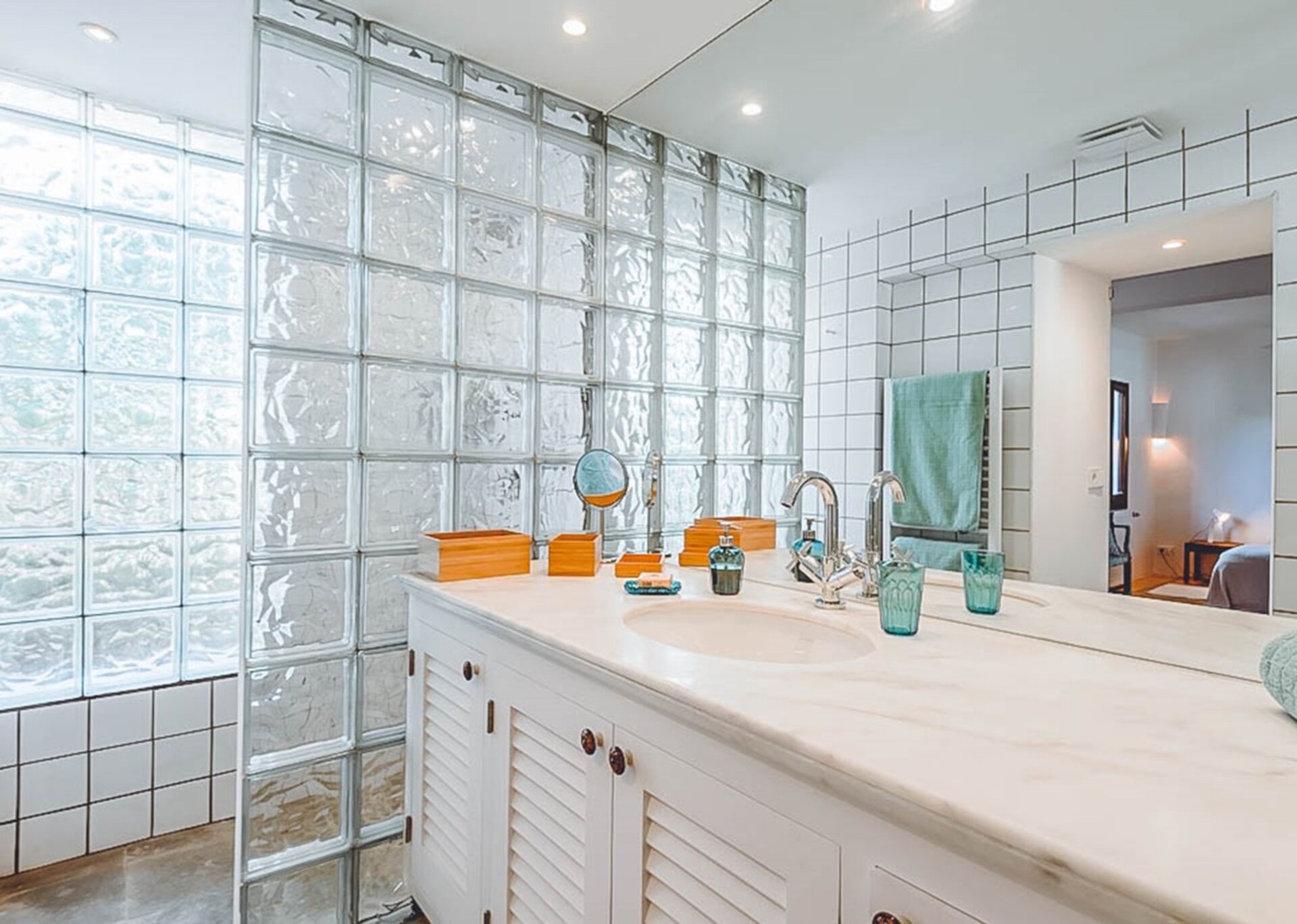 The bedrooms are all impeccably furnished to a high standard, with the master suite featuring a king-size bed, an en-suite bathroom complete with a bathtub and shower, a comfortable sofa area, and sliding doors that open onto a private terrace. Additionally, a fully equipped gym is available, adding to the allure of this exceptional home, which caters to couples, families, and wellness retreats.