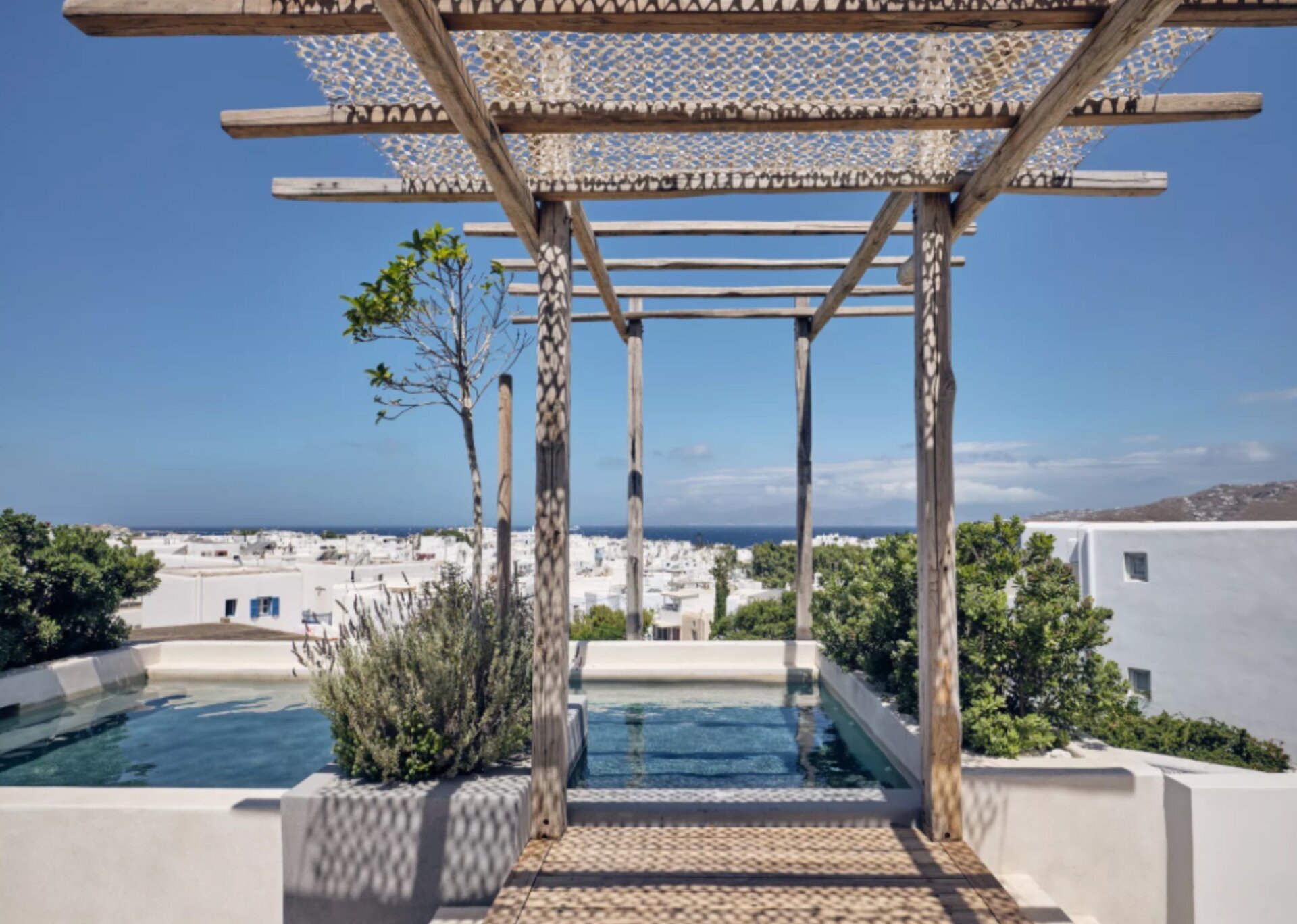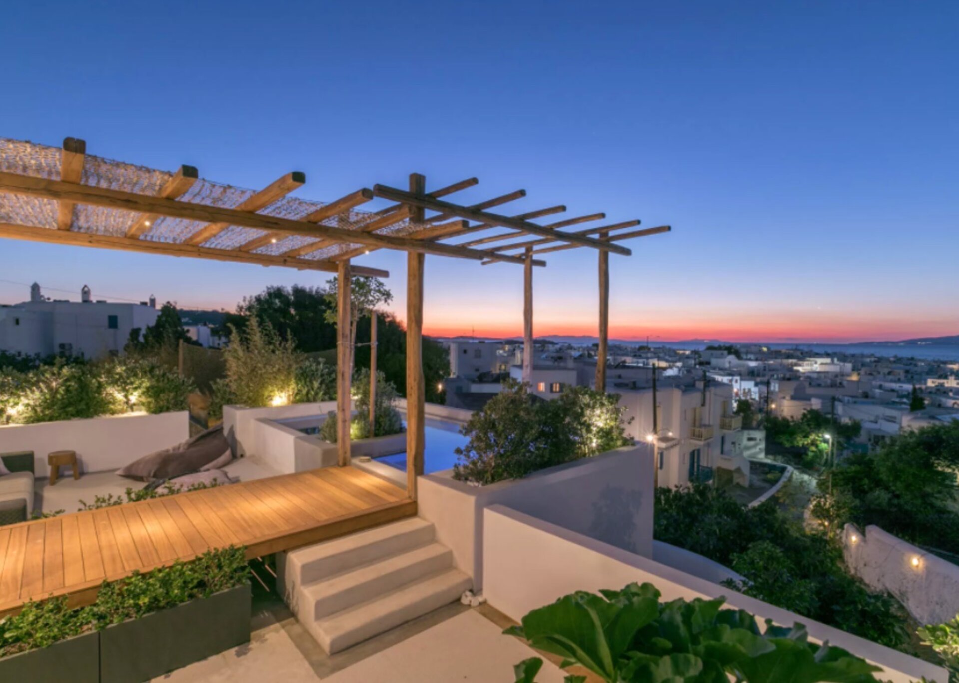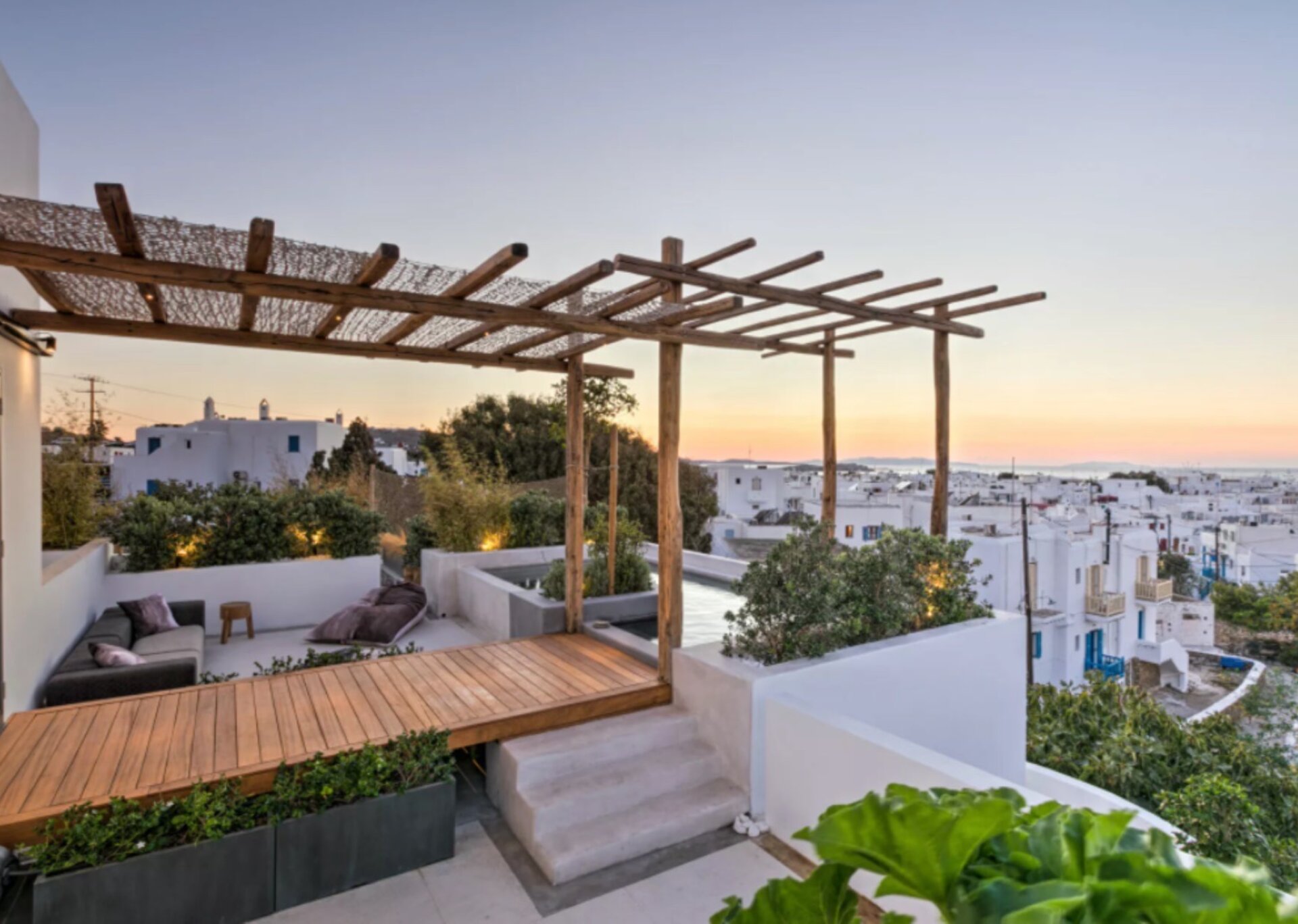 Villa Freya is a lavish resort that perfectly captures the Cycladic spirit. A Mykonian gem ideally located in Mykonos Town overlooking the Aegean sea, includes numerous amenities that will definitely spoil you. The outdoor area is spacious and includes a private swimming pool with lounging areas near it and sunbeds around it. Freya offers immaculate views of the sea and the sunset that can be gazed while swimming in the pool or having dinner in the outer dining area.