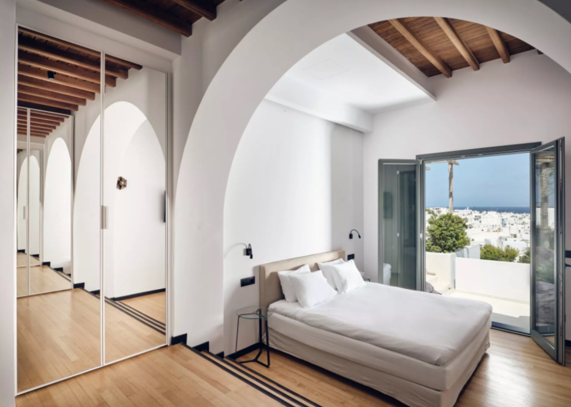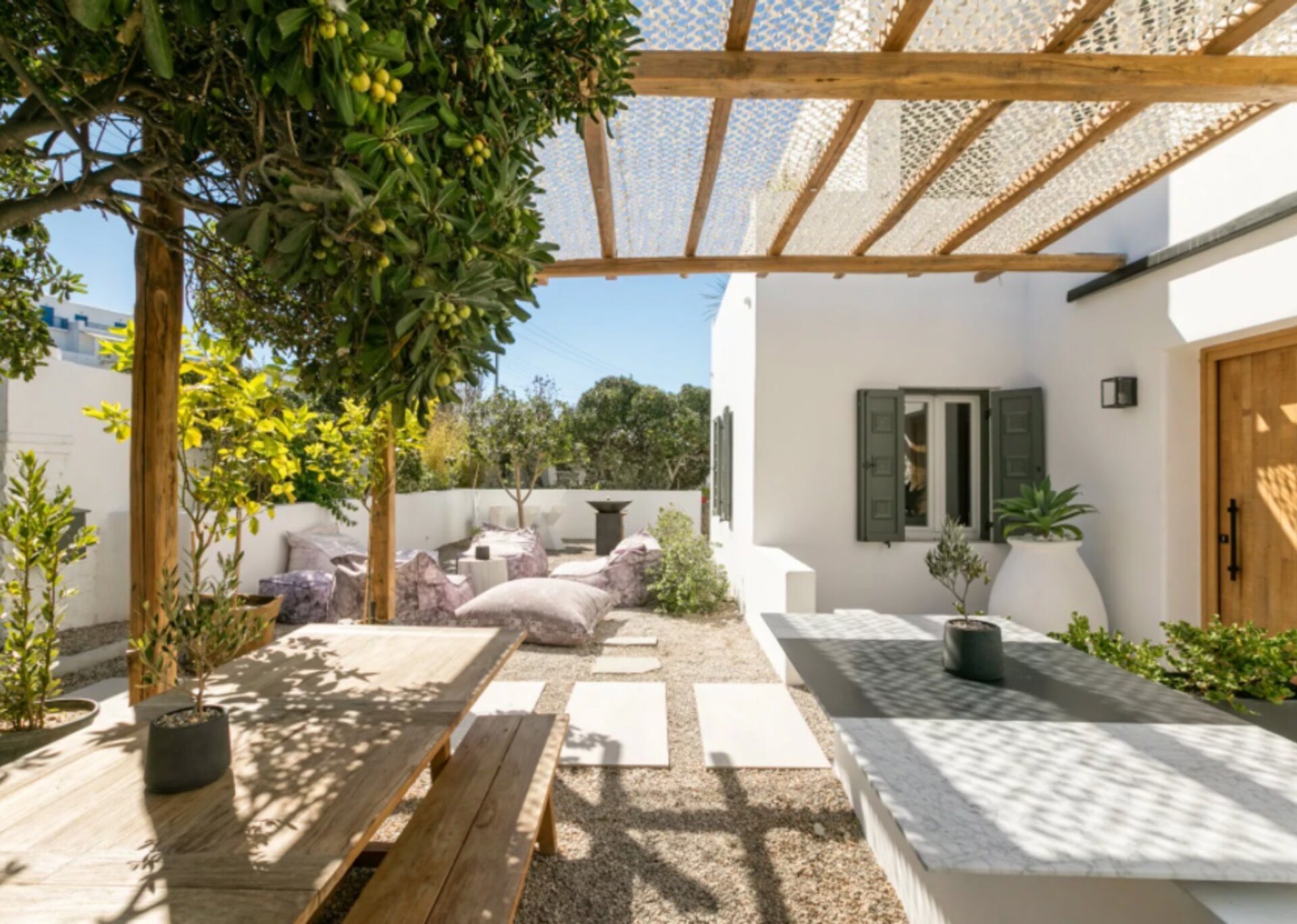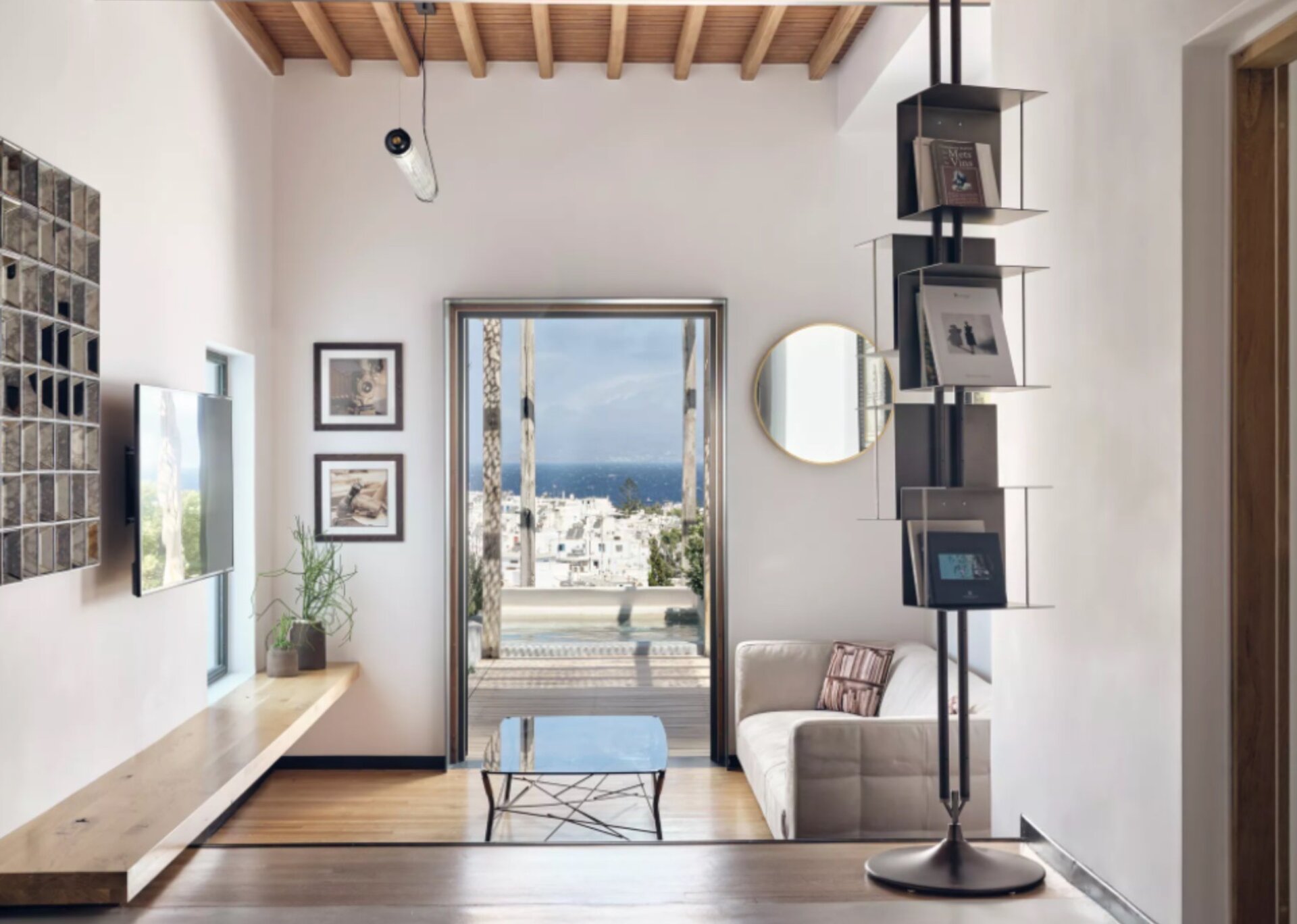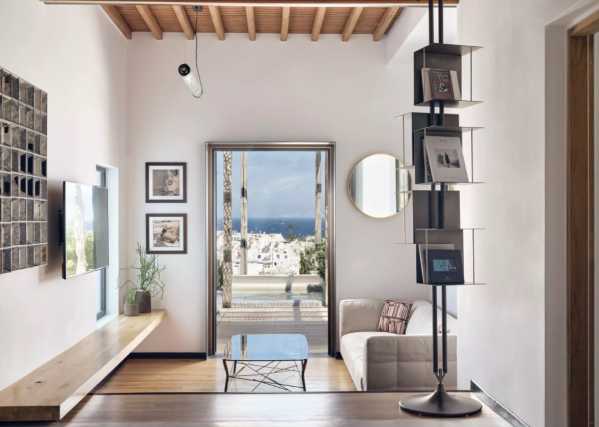 Villa Freya is a lavish resort that perfectly captures the Cycladic spirit. A Mykonian gem ideally located in Mykonos Town overlooking the Aegean sea, includes numerous amenities that will definitely spoil you. The outdoor area is spacious and includes a private swimming pool with lounging areas near it and sunbeds around it. Freya offers immaculate views of the sea and the sunset that can be gazed while swimming in the pool or having dinner in the outer dining area.