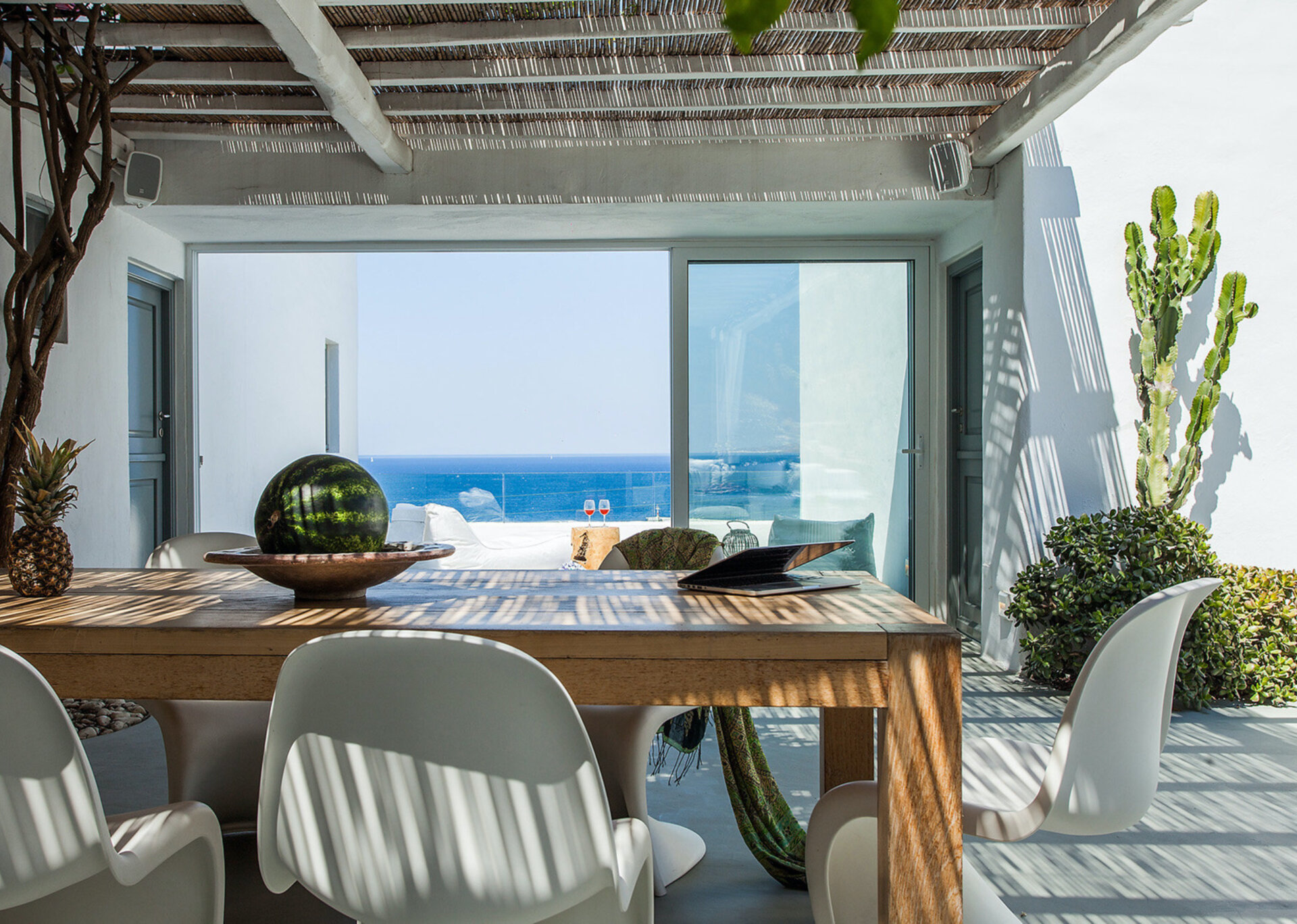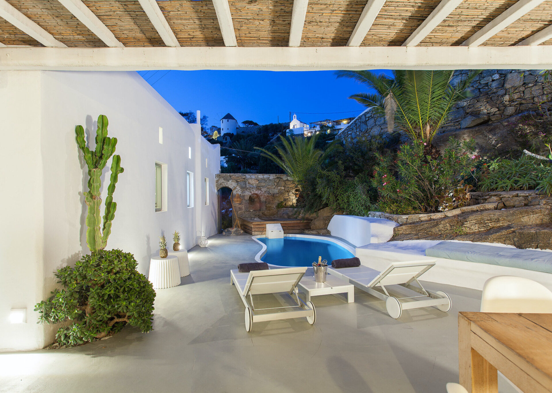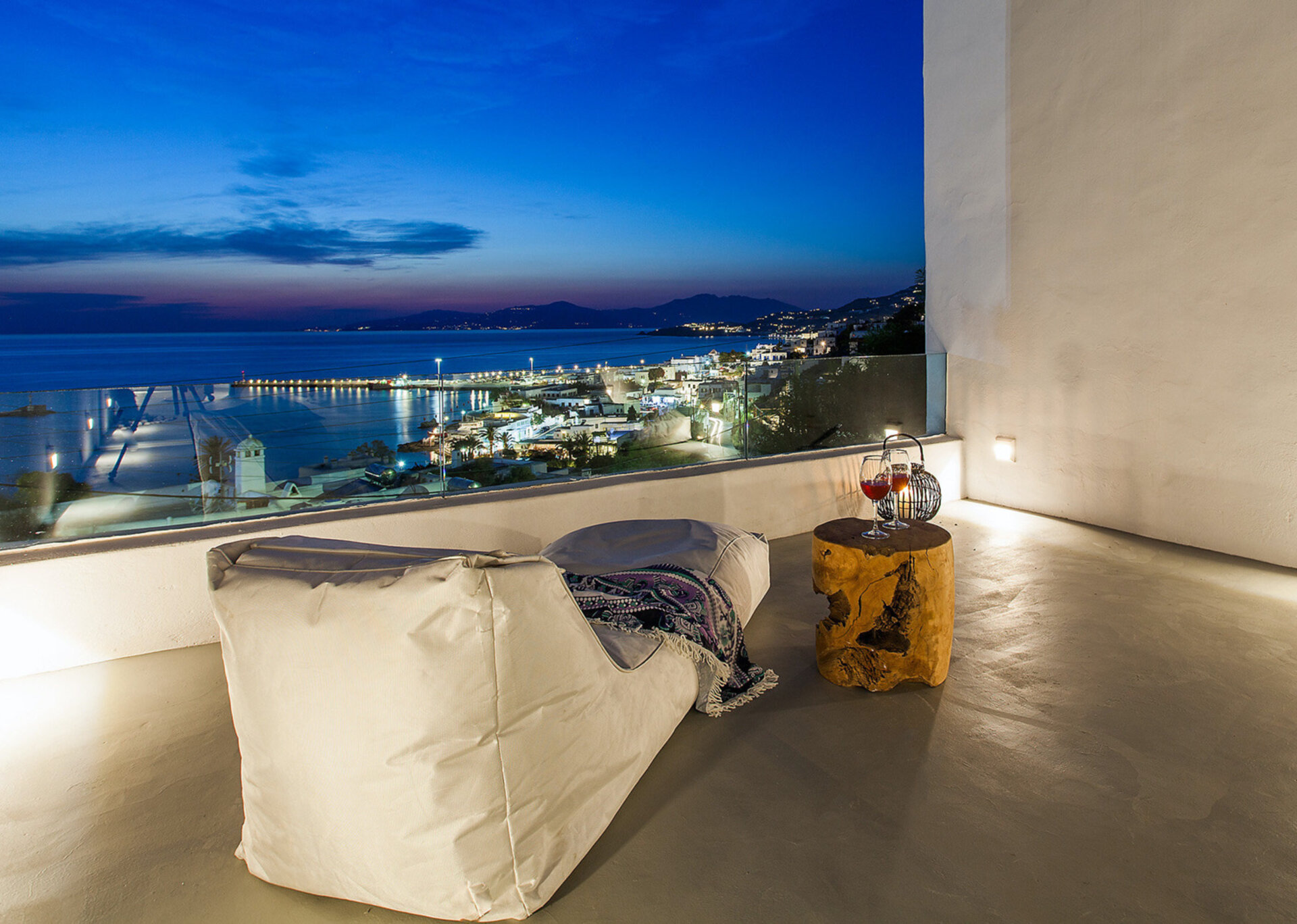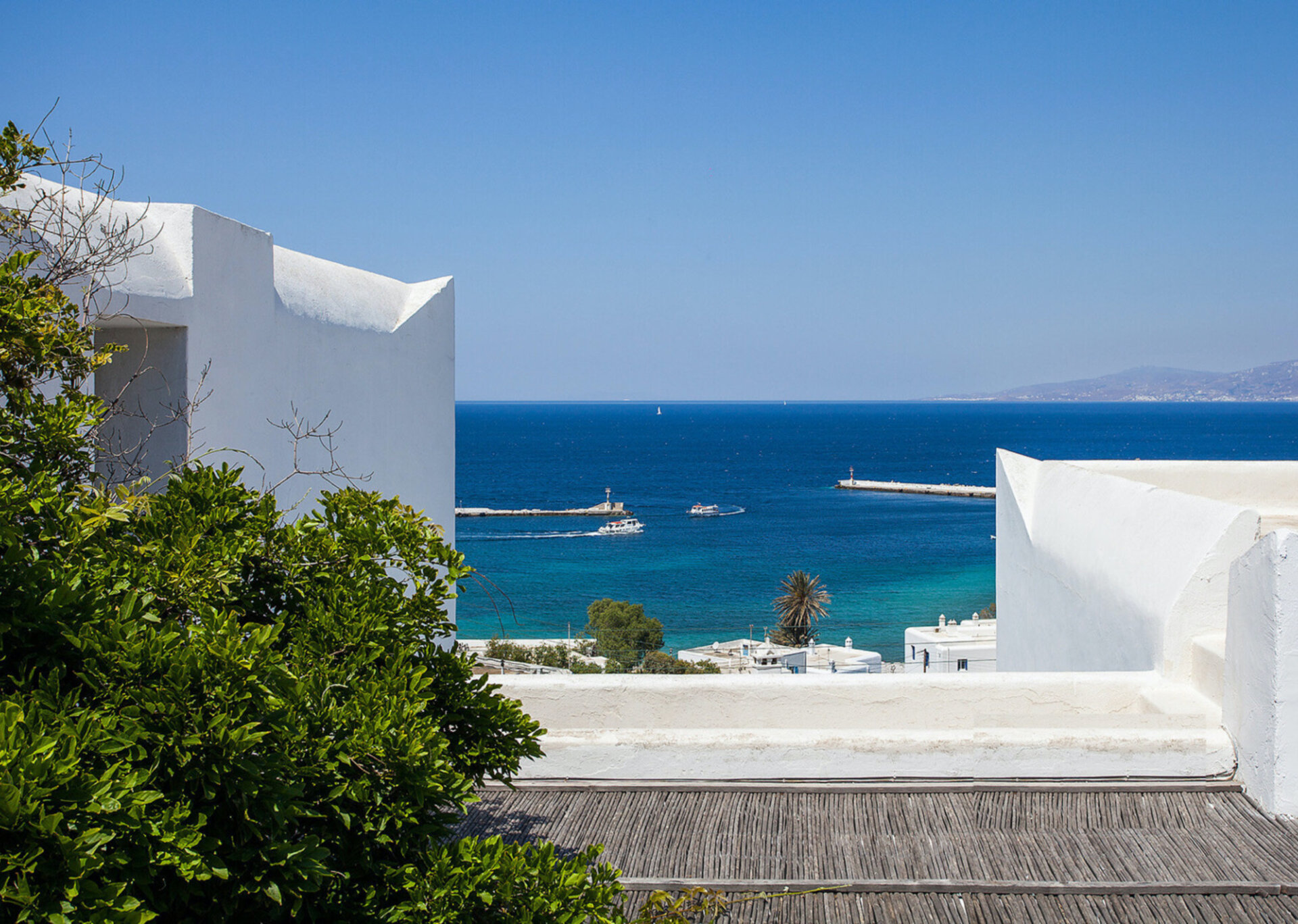 Sitting in a privileged position that allows superb views of the harbour and the Aegean expanse, Villa Celeste is located only a few steps away from the pulsating heart of Mykonos Town.