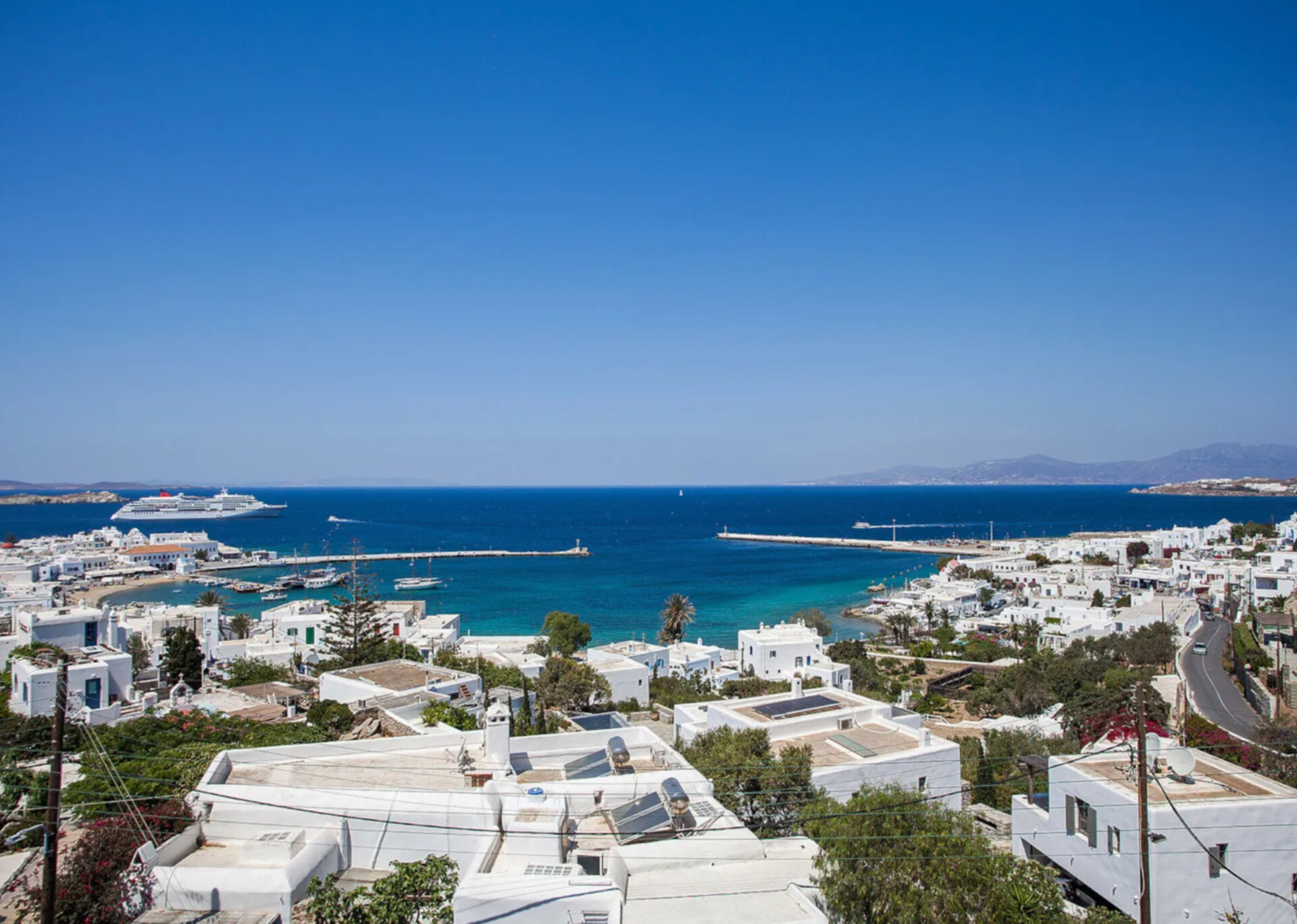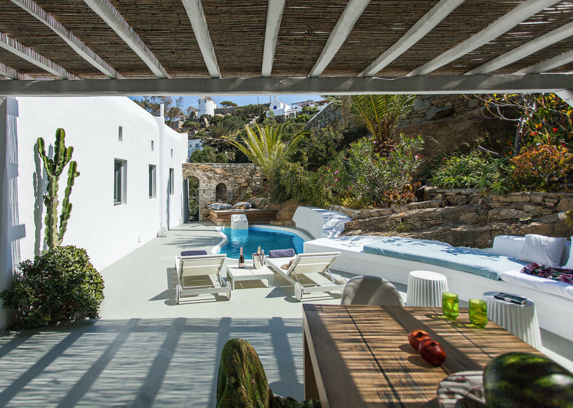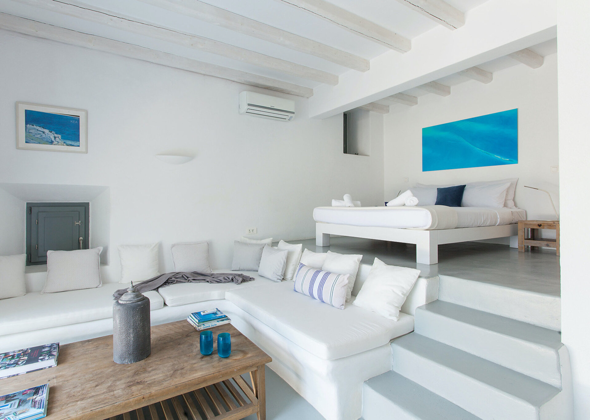 Sitting in a privileged position that allows superb views of the harbour and the Aegean expanse, Villa Celeste is located only a few steps away from the pulsating heart of Mykonos Town.