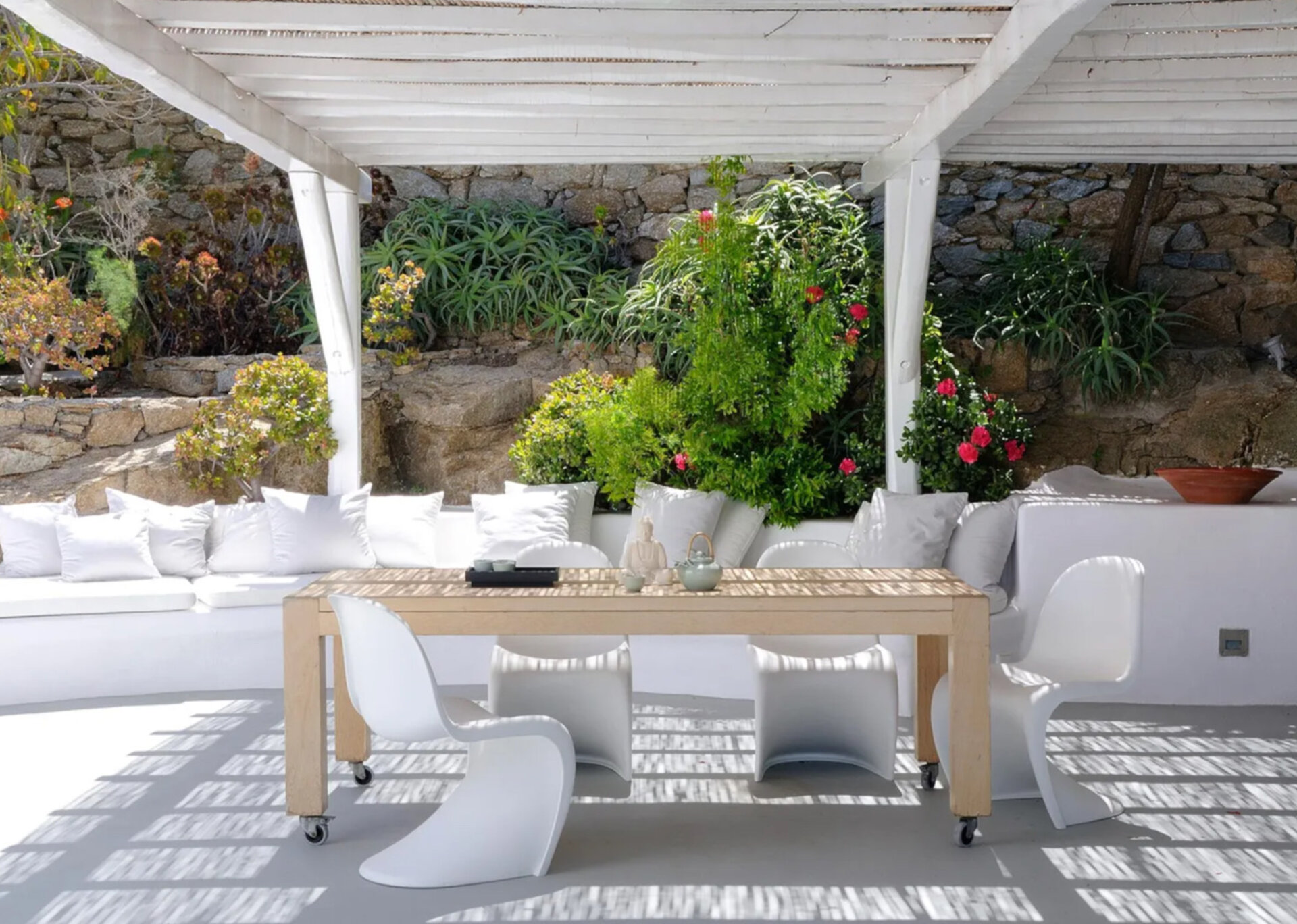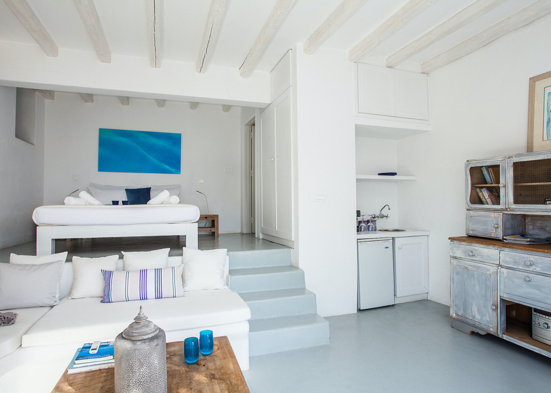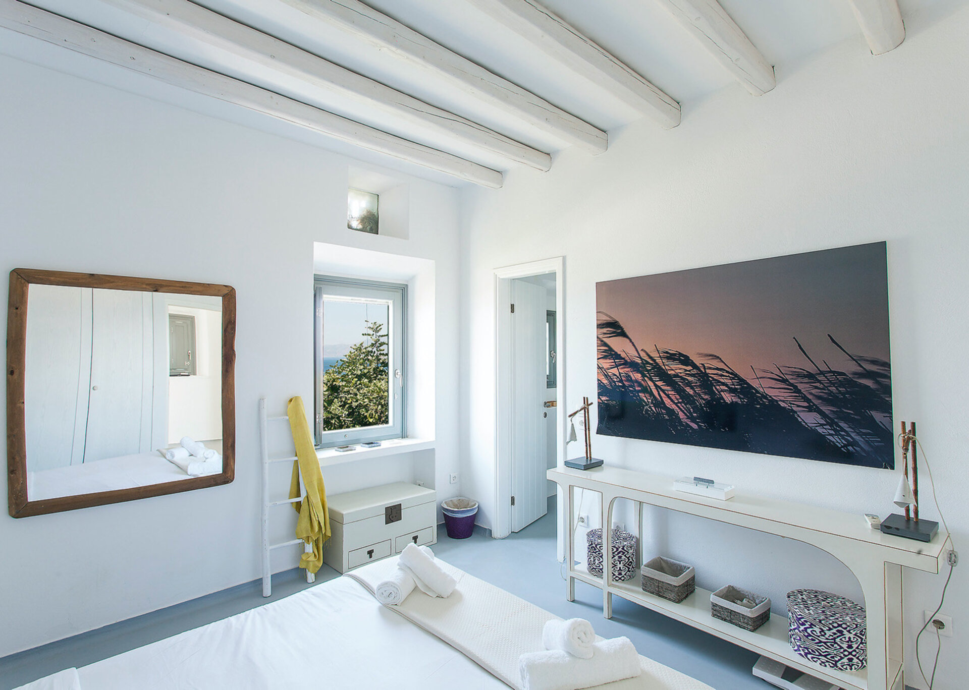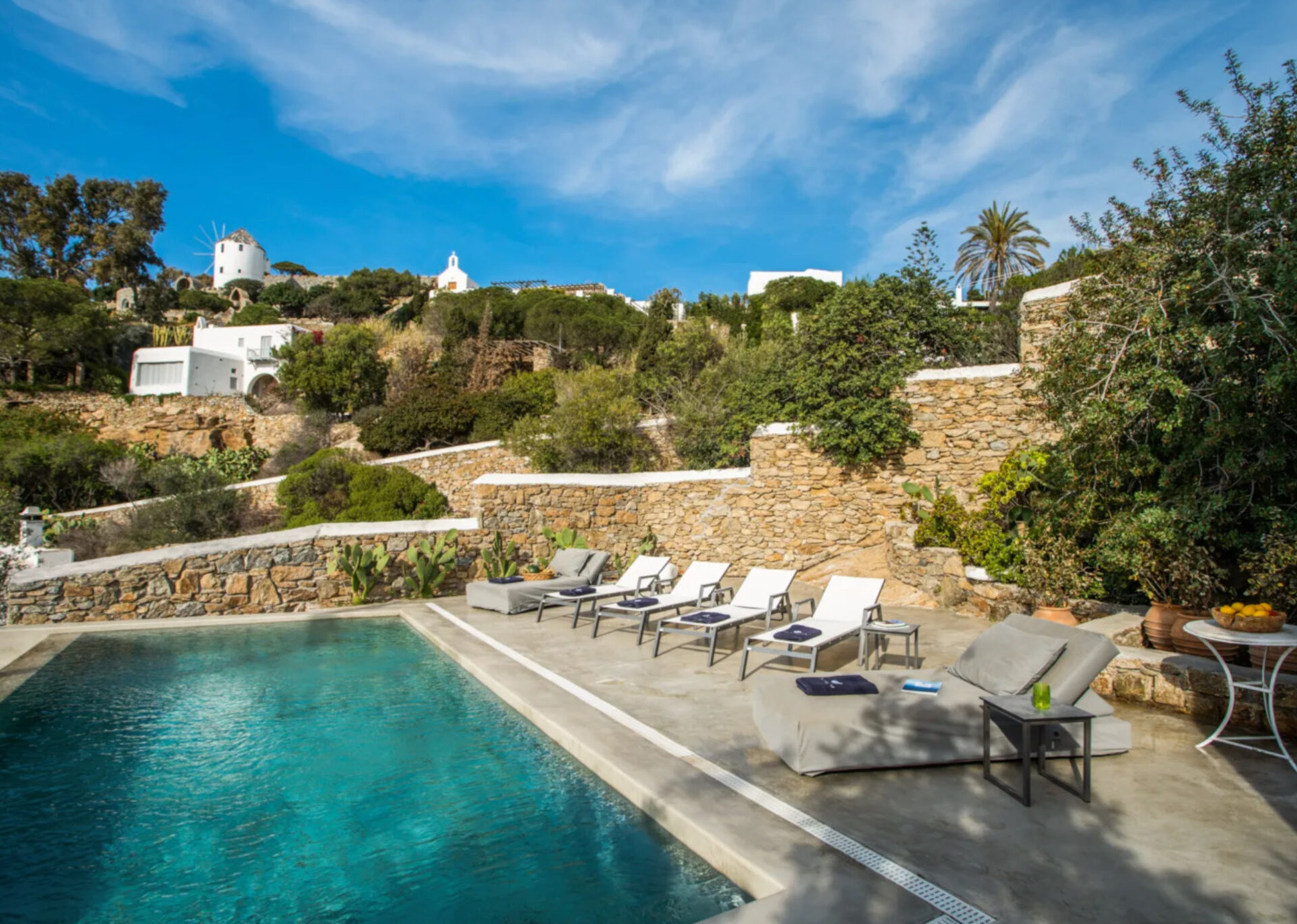 Sitting in a privileged position that allows superb views of the harbour and the Aegean expanse, Villa Celeste is located only a few steps away from the pulsating heart of Mykonos Town.