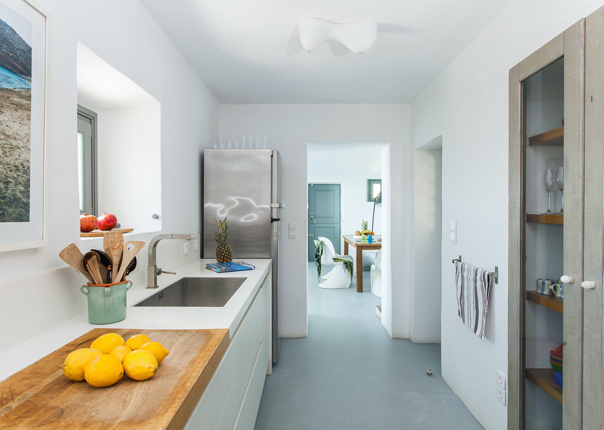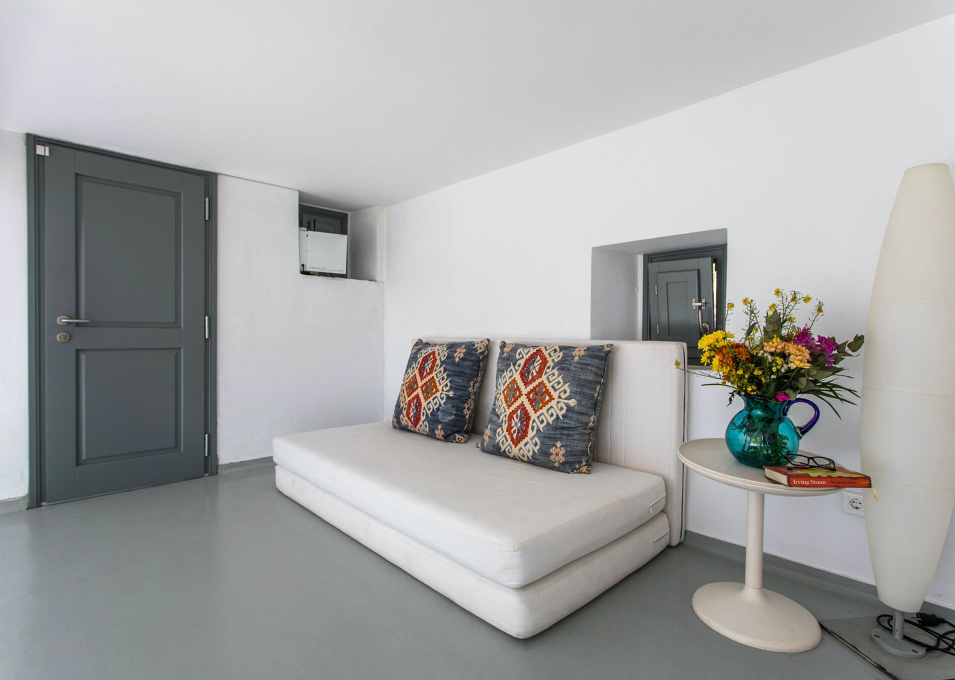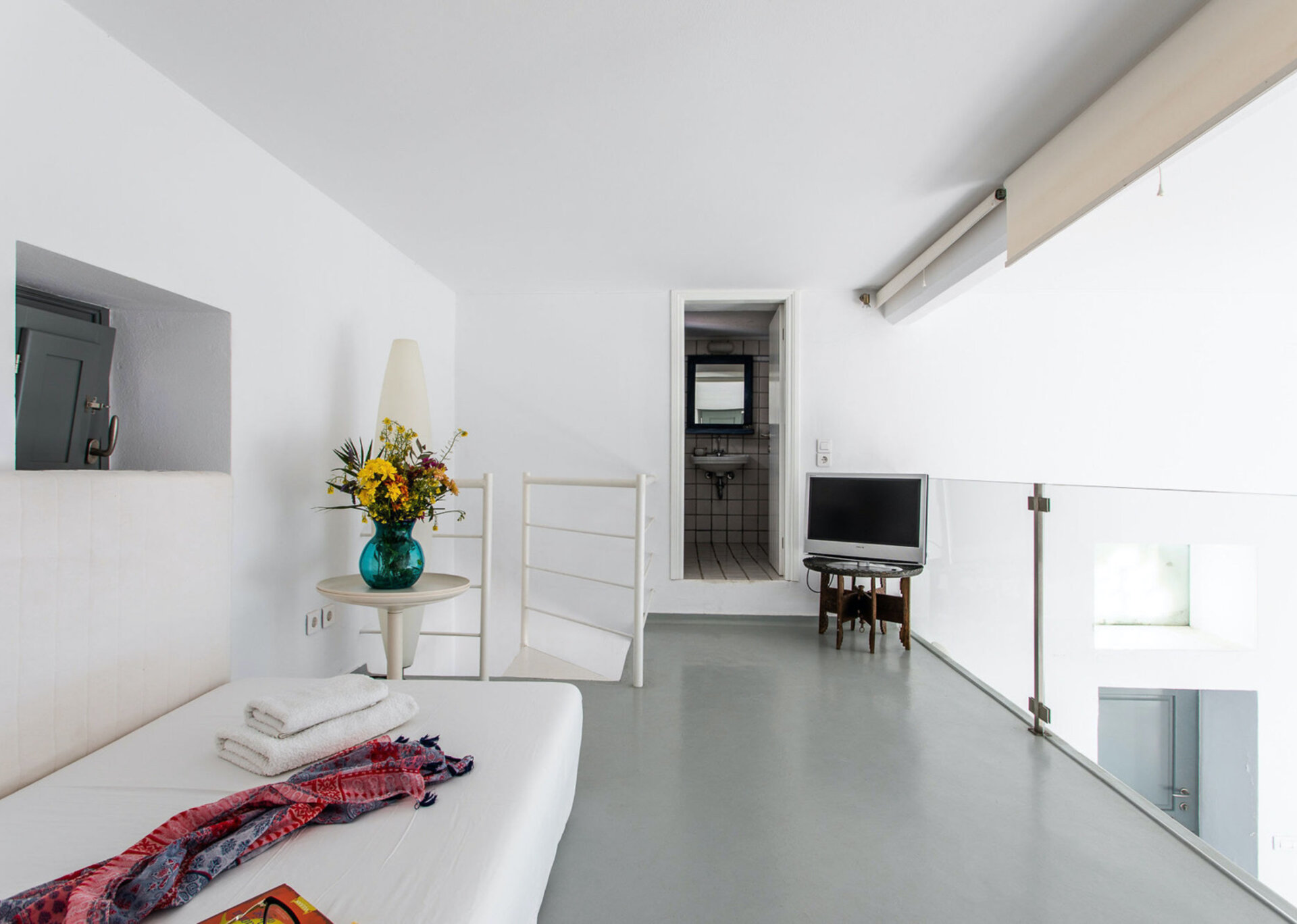 The villa successfully delivers a mix of old and new without losing the residence’s original character. The interior is peppered with colorful flowers and is organized around an internal stone-paved courtyard that seems to be carved into the rock that surrounds it.