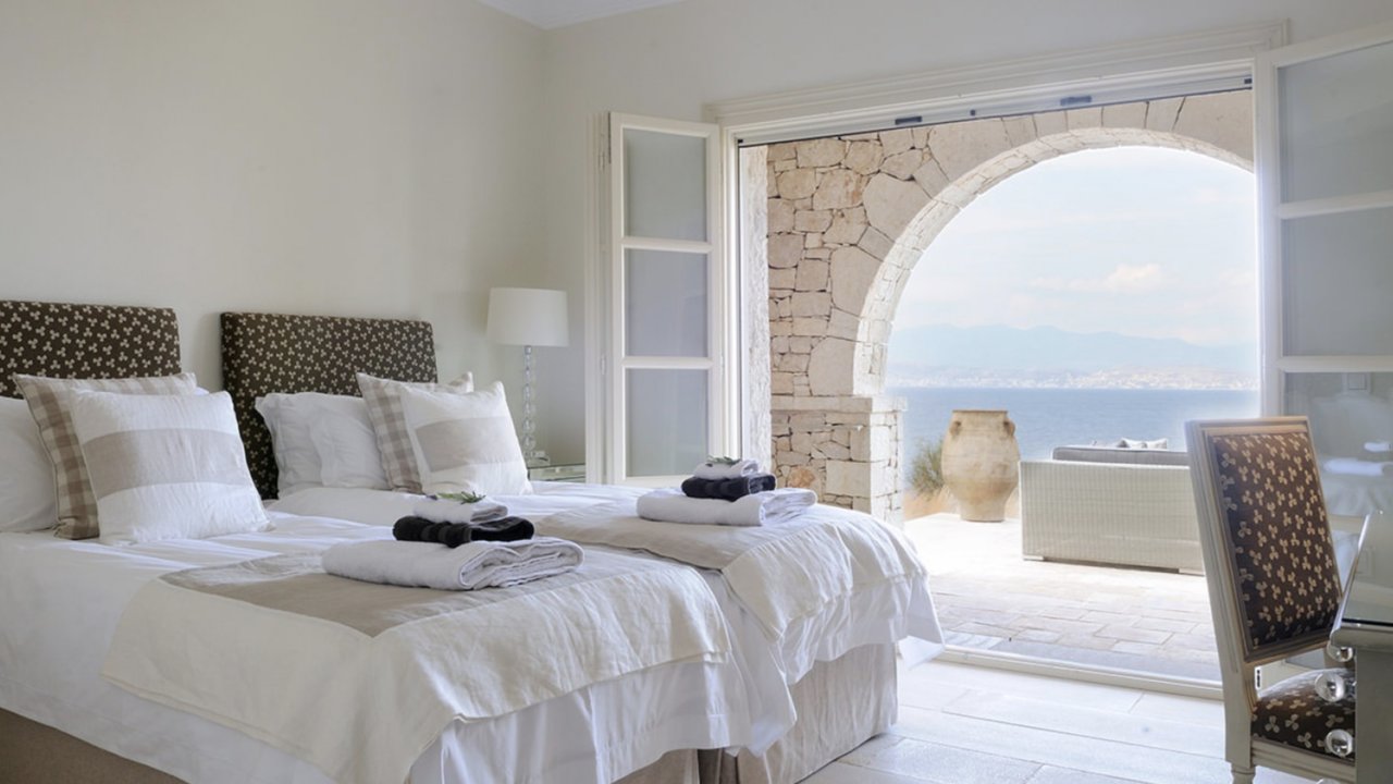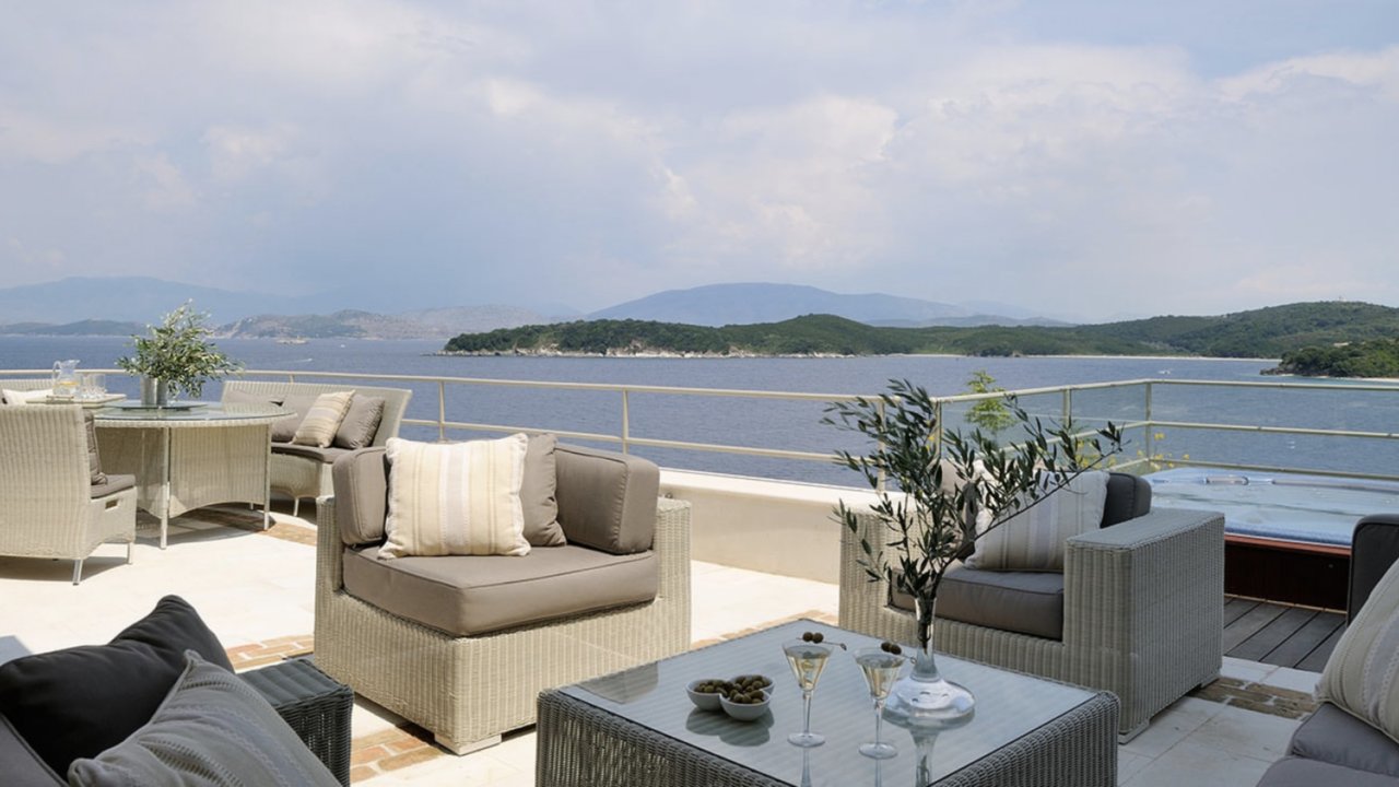 Nestled on Corfu's northeast coast, Villa Celine offers the epitome of luxury living, boasting unparalleled seclusion, direct access to an idyllic beach, and seven exquisite ensuite bedrooms.