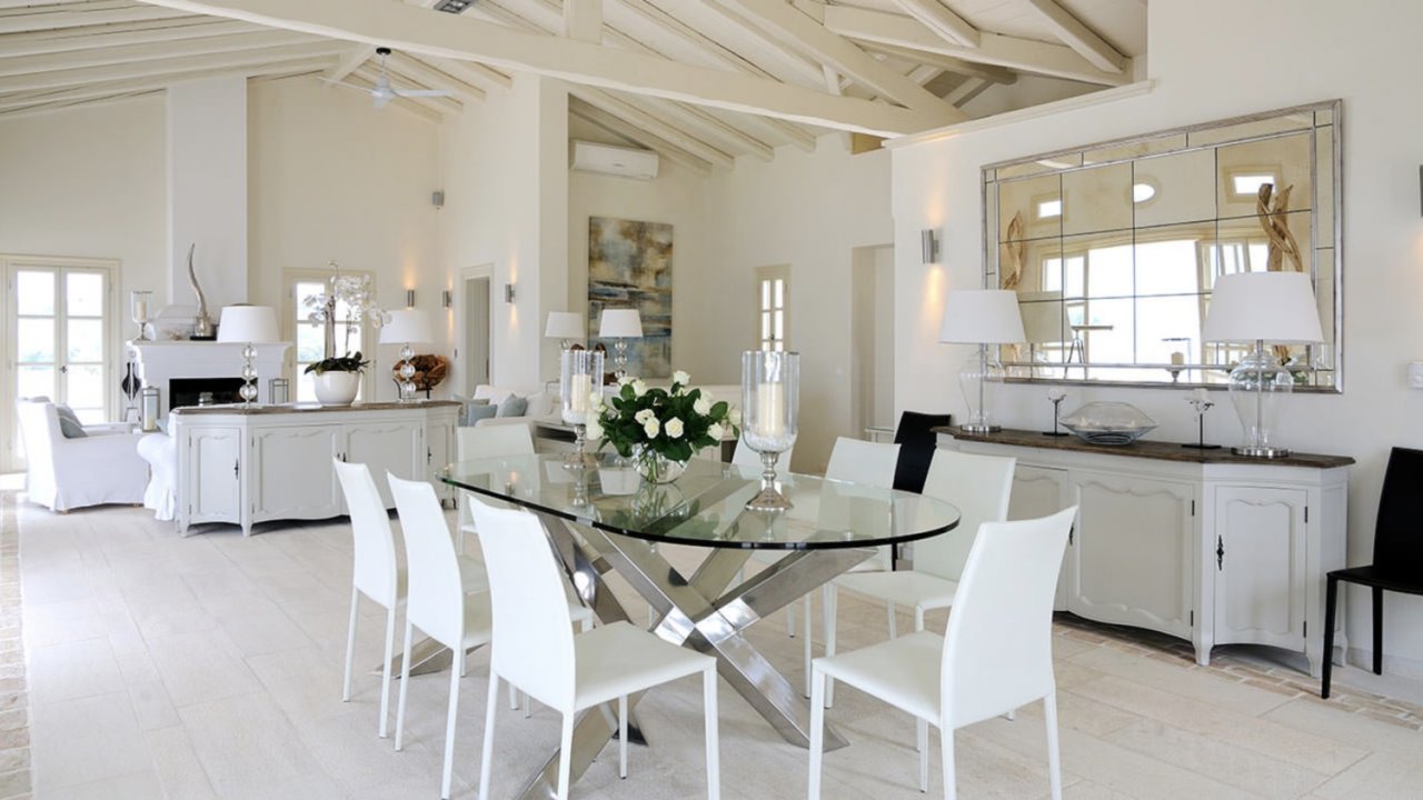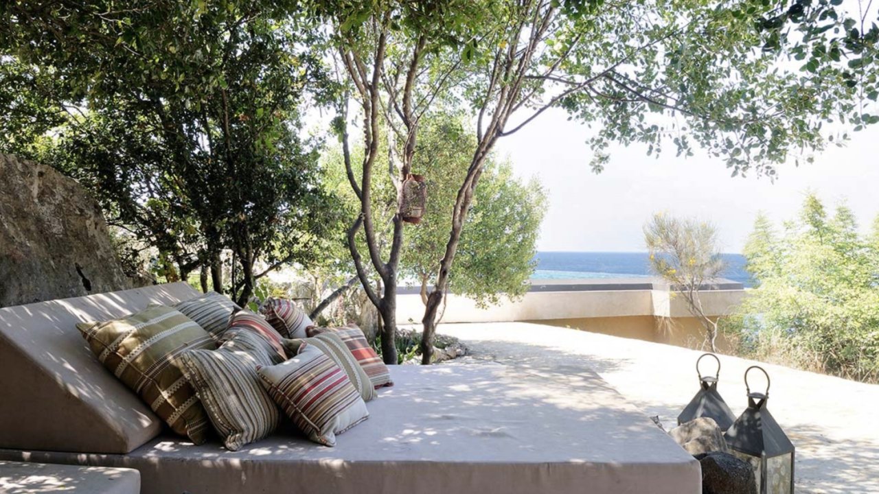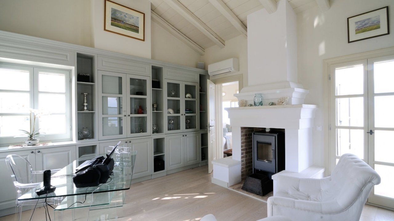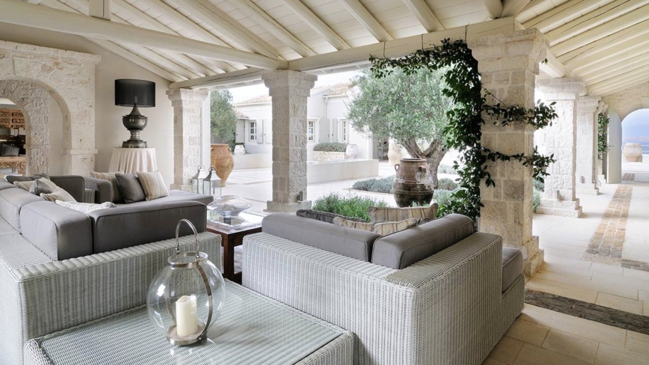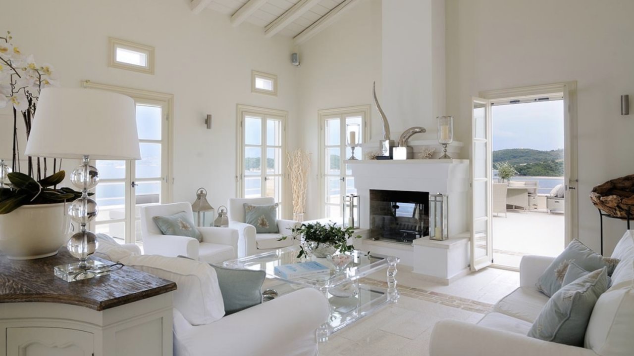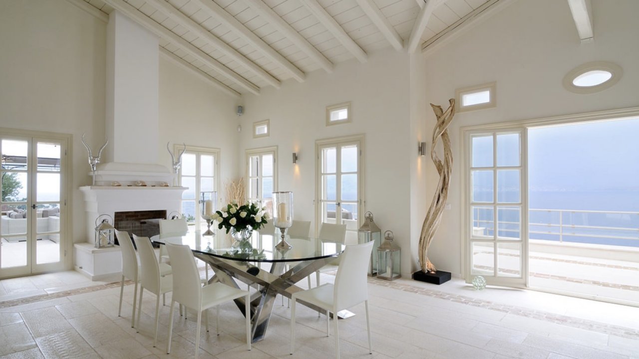Immersed in a serene color palette, the tastefully designed interiors of Villa Celine provide majestic yet cozy atmospheres. The outdoor area is equally stunning, with expansive terraces featuring numerous sea-view loungers, an open-air Jacuzzi, and sublime views of the Ionian Sea.