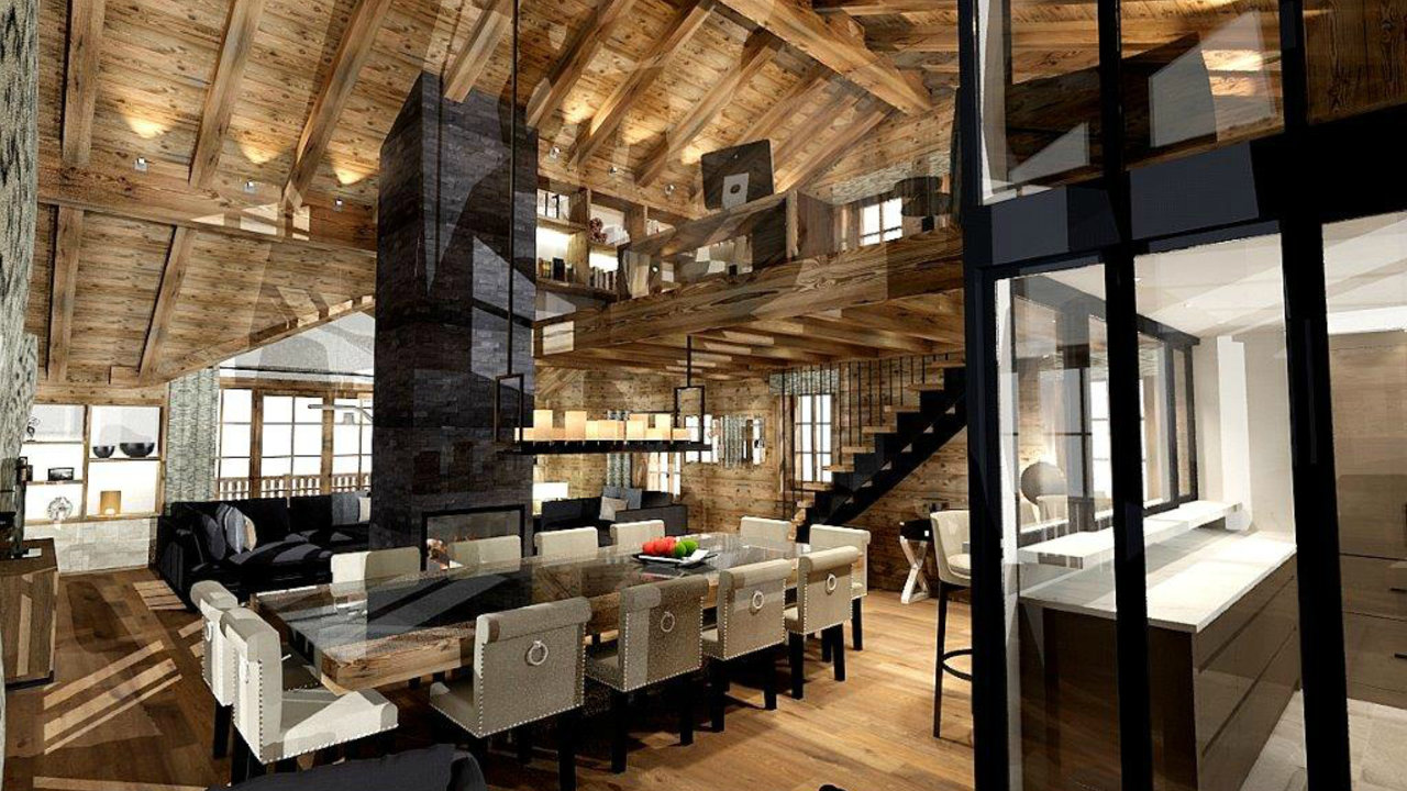 The entire top two floors of the chalet were renovated and refurbished in 2019 to provide a spacious open plan, double height living and dining area, complete with new furnishings and a private office at mezzanine level. The new glass enclosed kitchen uses state of the art design ready for your private chef to create magic. After a long day exploring Courchevel, relax by the dual aspect fireplace with your favourite drink while watching your chef at work.