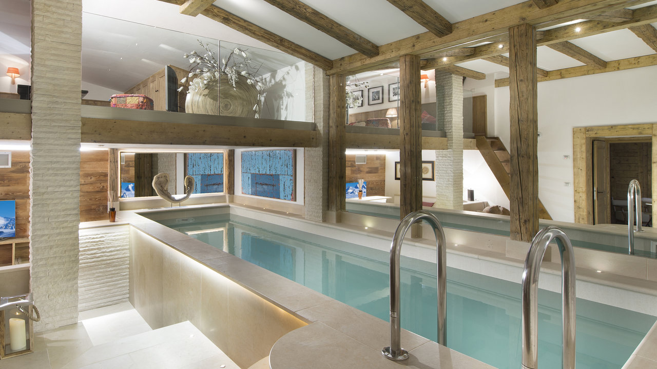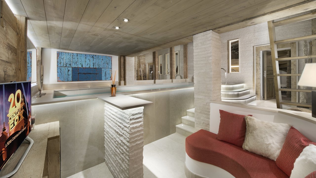 The spa features an indoor swimming pool with mood lighting system. A spacious massage treatment room, alongside a compact Hammam and Sauna is perfect for post-ski recovery. A brand new gym is found on the mezzanine level above the pool.