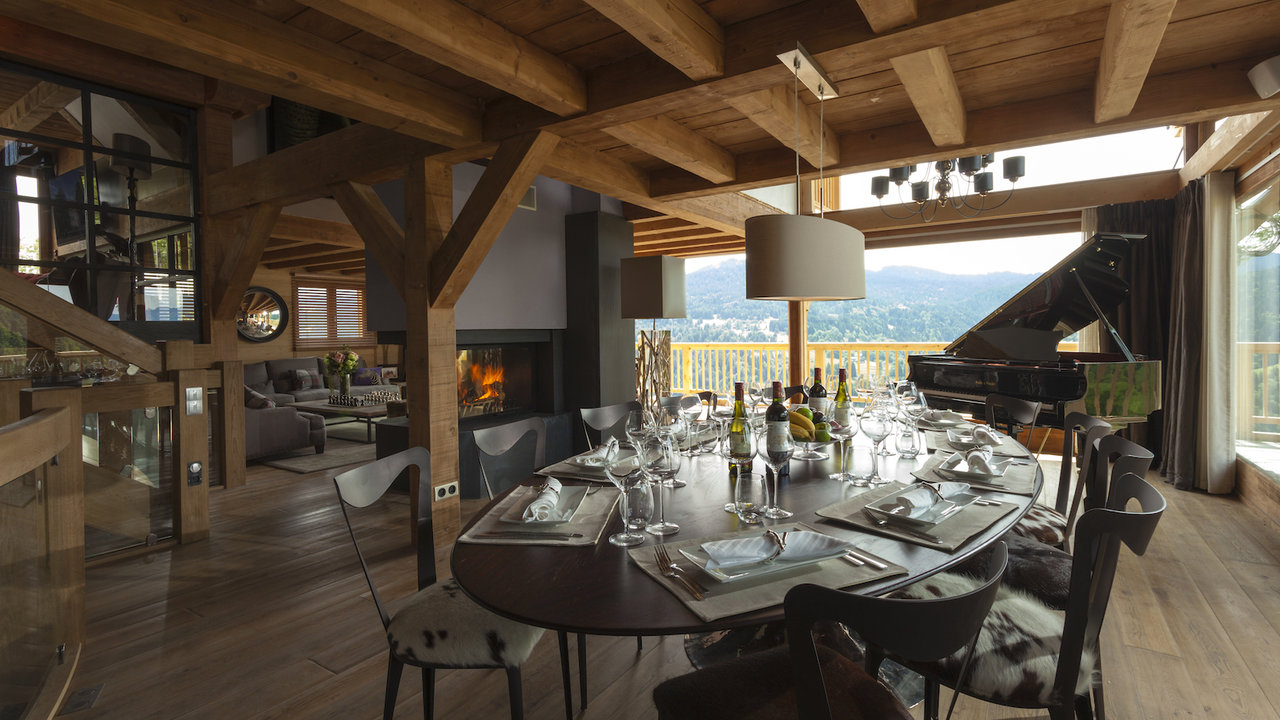This luxury chalet accommodates up to 12 adults and 3 children in 7 beautiful bedrooms. Each room is equipped with plasma screen TV and enjoys stunning views across the valley. On a clear day, you can see the world famous Mont Blanc from the open plan dining and living area as well as from the master bedroom.