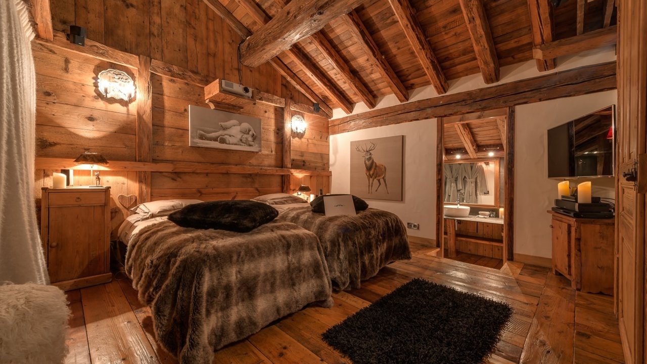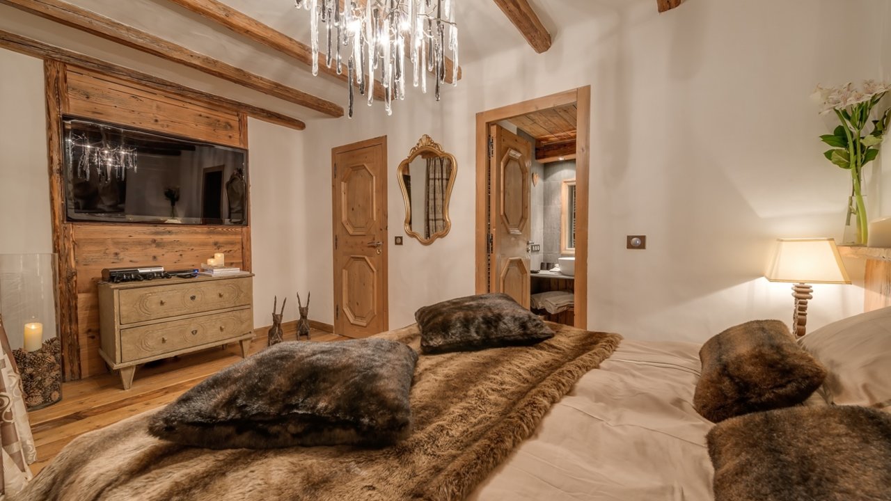 Chalet 5 has seven beautifully designed bedrooms which feel truly alpine with reclaimed wood from Mongolia and intricately carved furnishings. Each bedroom has an en-suite bathroom and AV facilities. The master bedroom suite is indulgence in its purest form and is one of the largest in the resort with his and her dressing rooms.