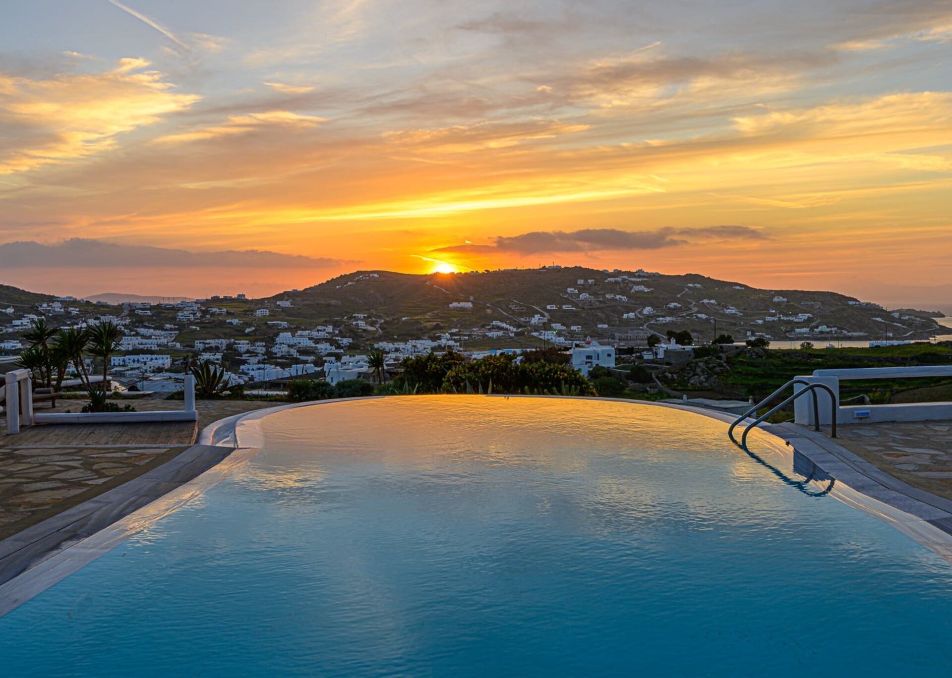 The property features a large and elegant infinity swimming pool of 70sq m2. The wonderfully structured outdoor area of the property, surrounded by rocky hills and Mediterranean herbs, can provide relaxation and recreation for the guests, providing multilevel lounging and dining area. Sitting areas in the front of the villa, to all which guests have access to, are designed, so that guests can break off into small groups and enjoy their own private space with a feeling of exterior independence enjoying panoramic sea and sunset views.