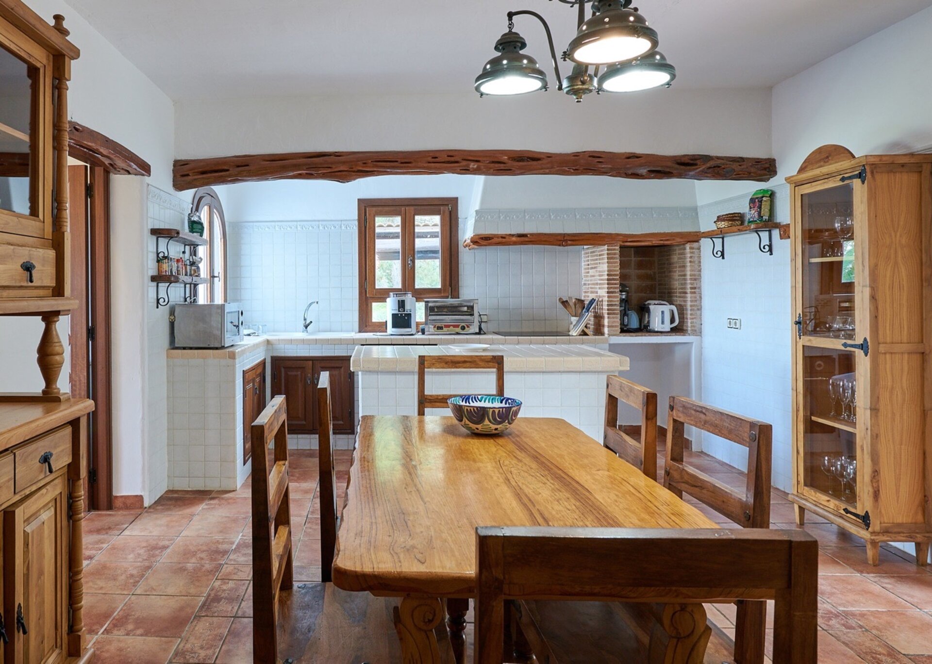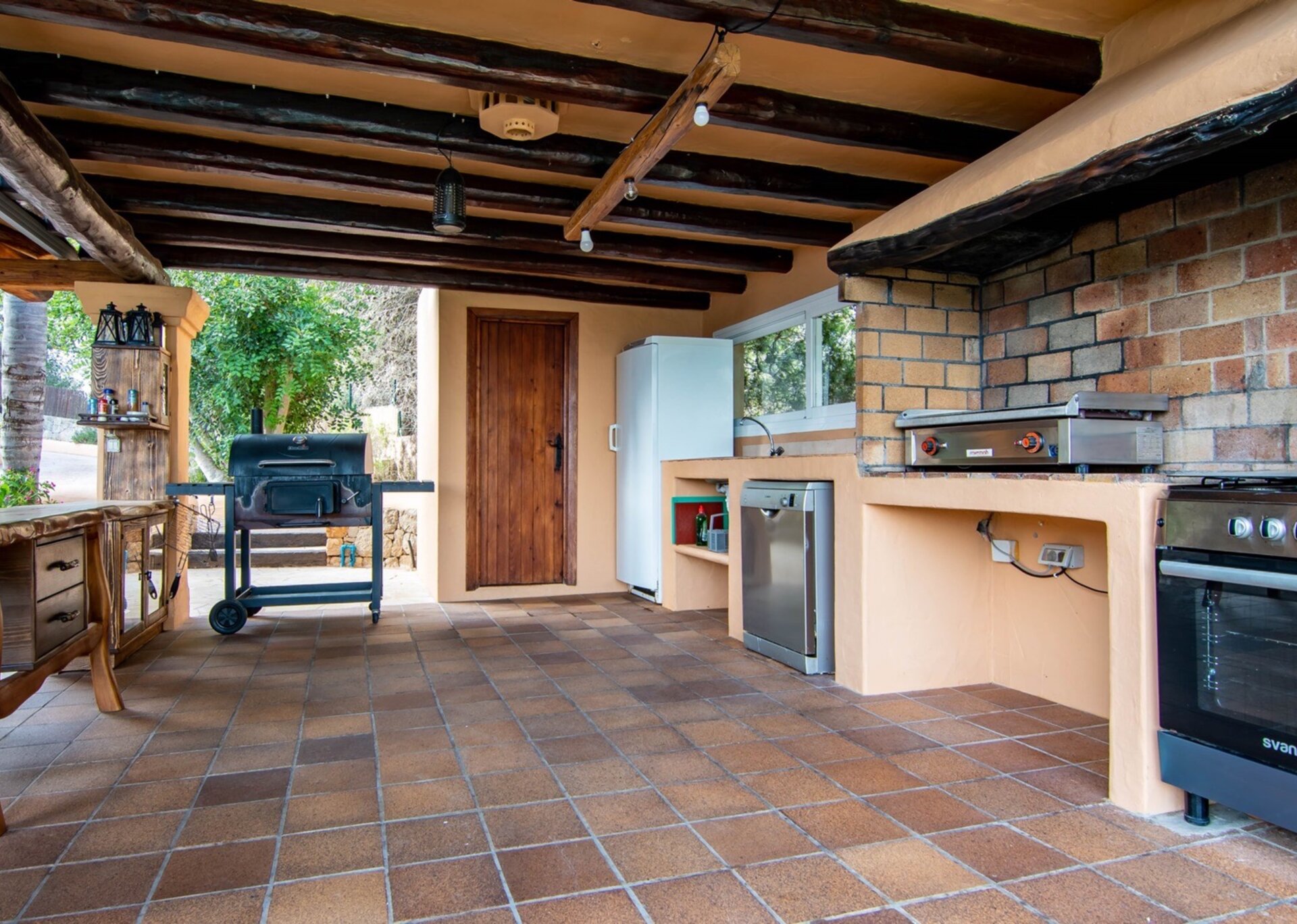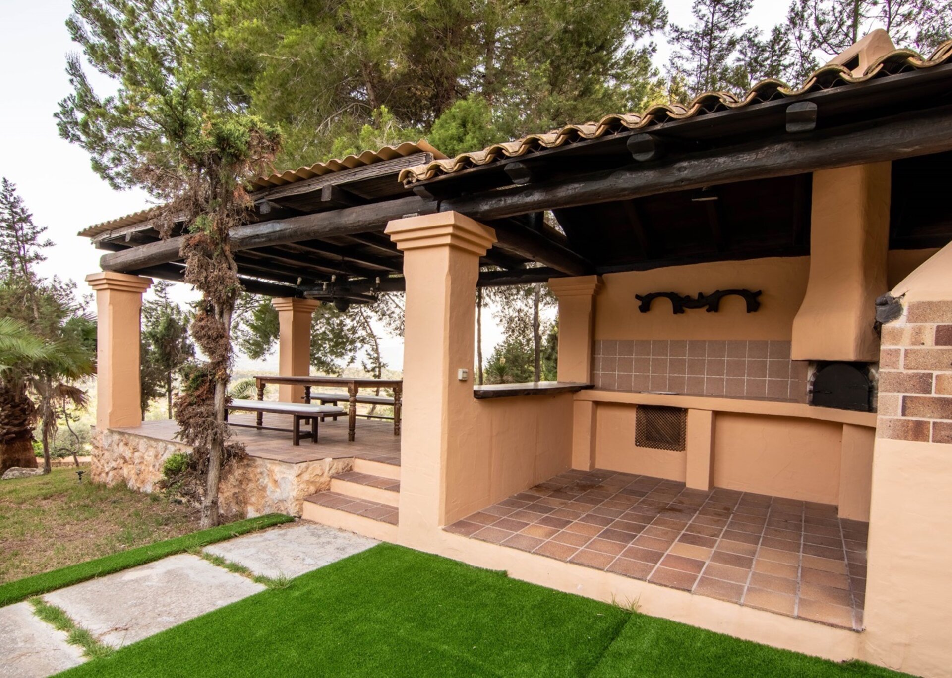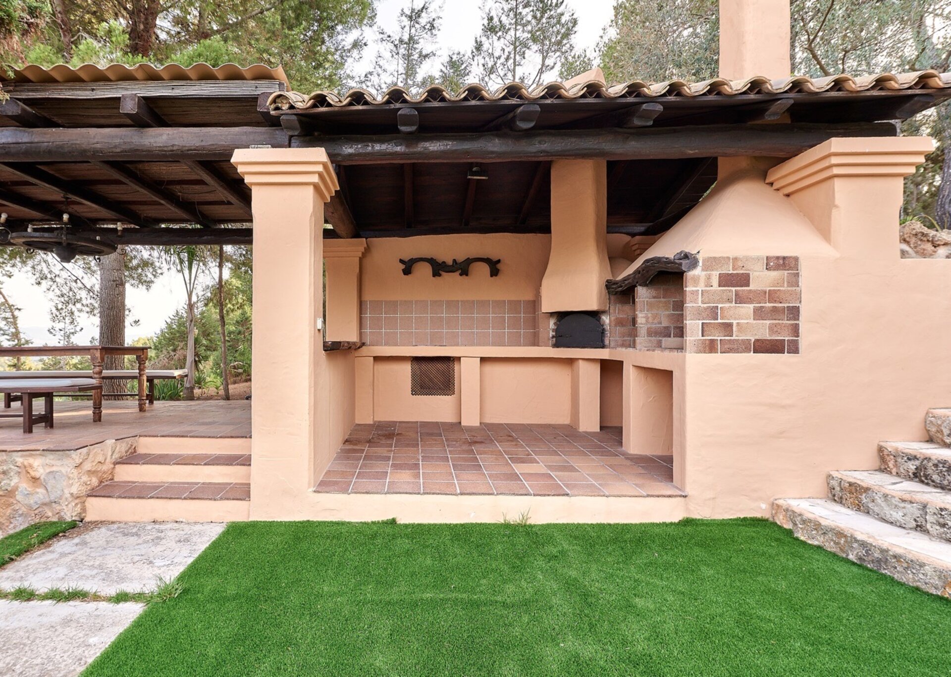 Throughout the property, you'll find stylish interiors, reflecting elegance and sophistication. An extensively equipped kitchen fulfills all the needs of a family or a group of friends, creating a true home away from home experience. The lounge area exudes a beautiful rustic ambiance, featuring an upscale open fireplace for cozy Ibizan evenings and intimate gatherings. All the ground-level rooms provide direct access to the magnificent terrace, enhancing the seamless connection with the outdoors.