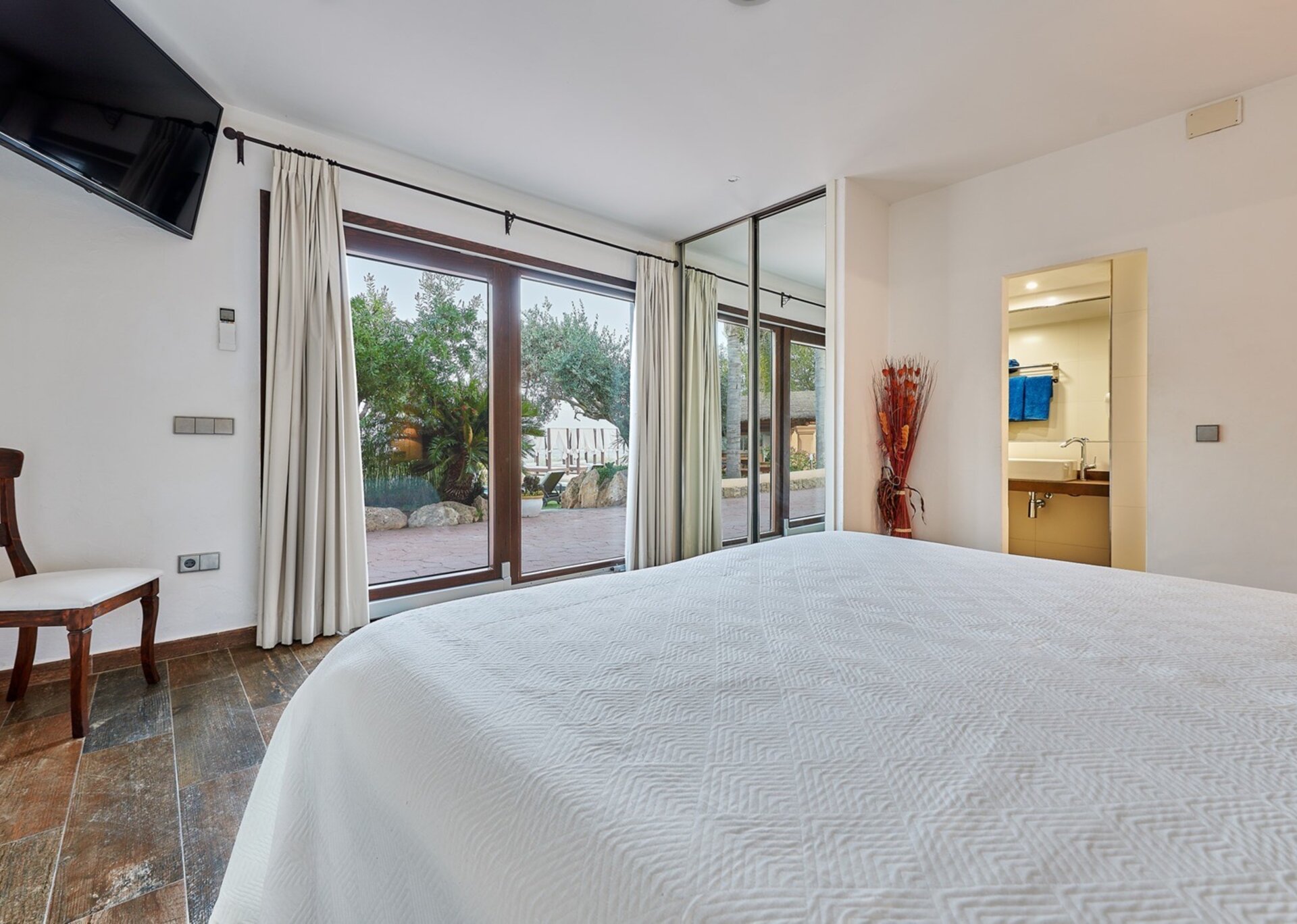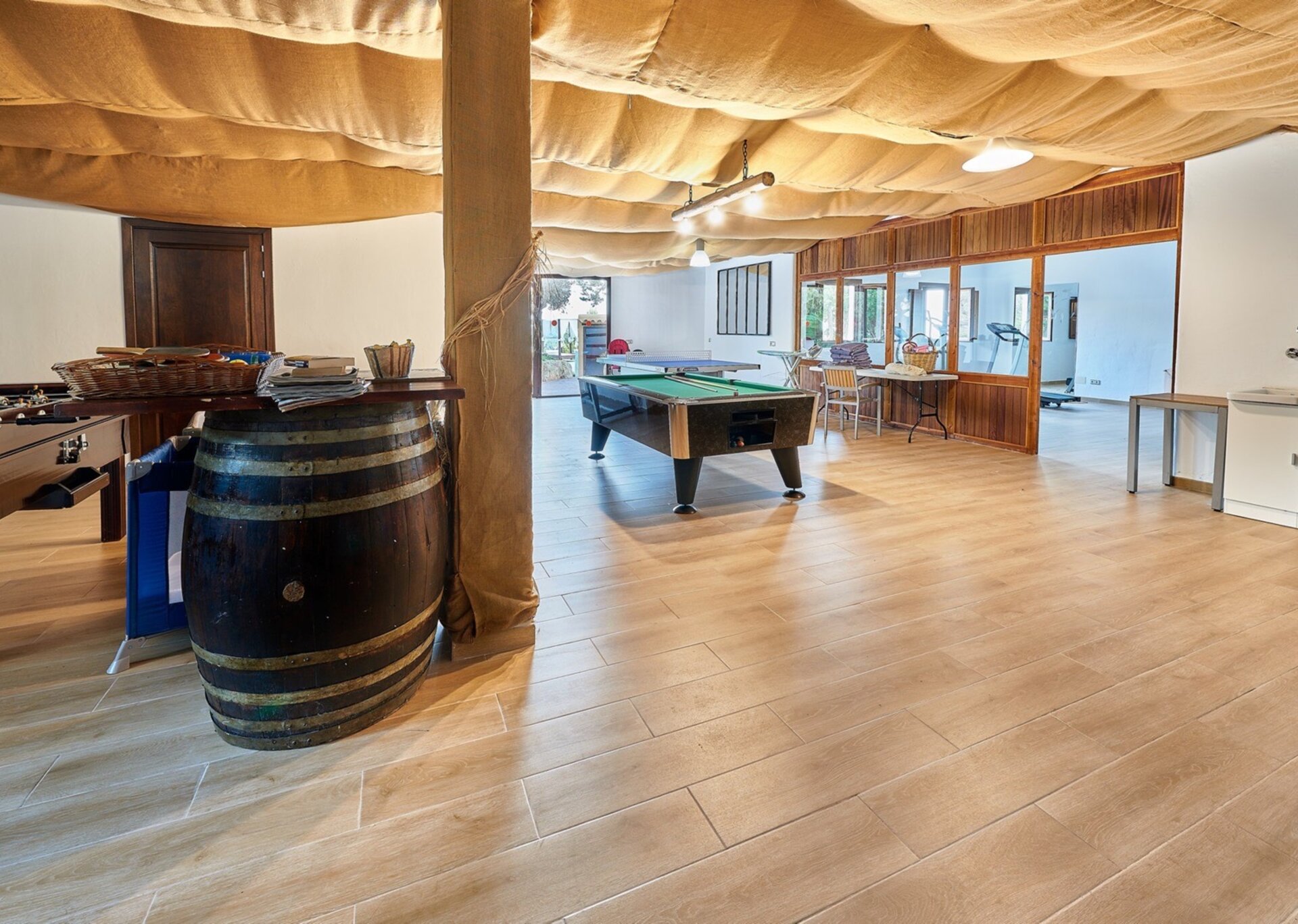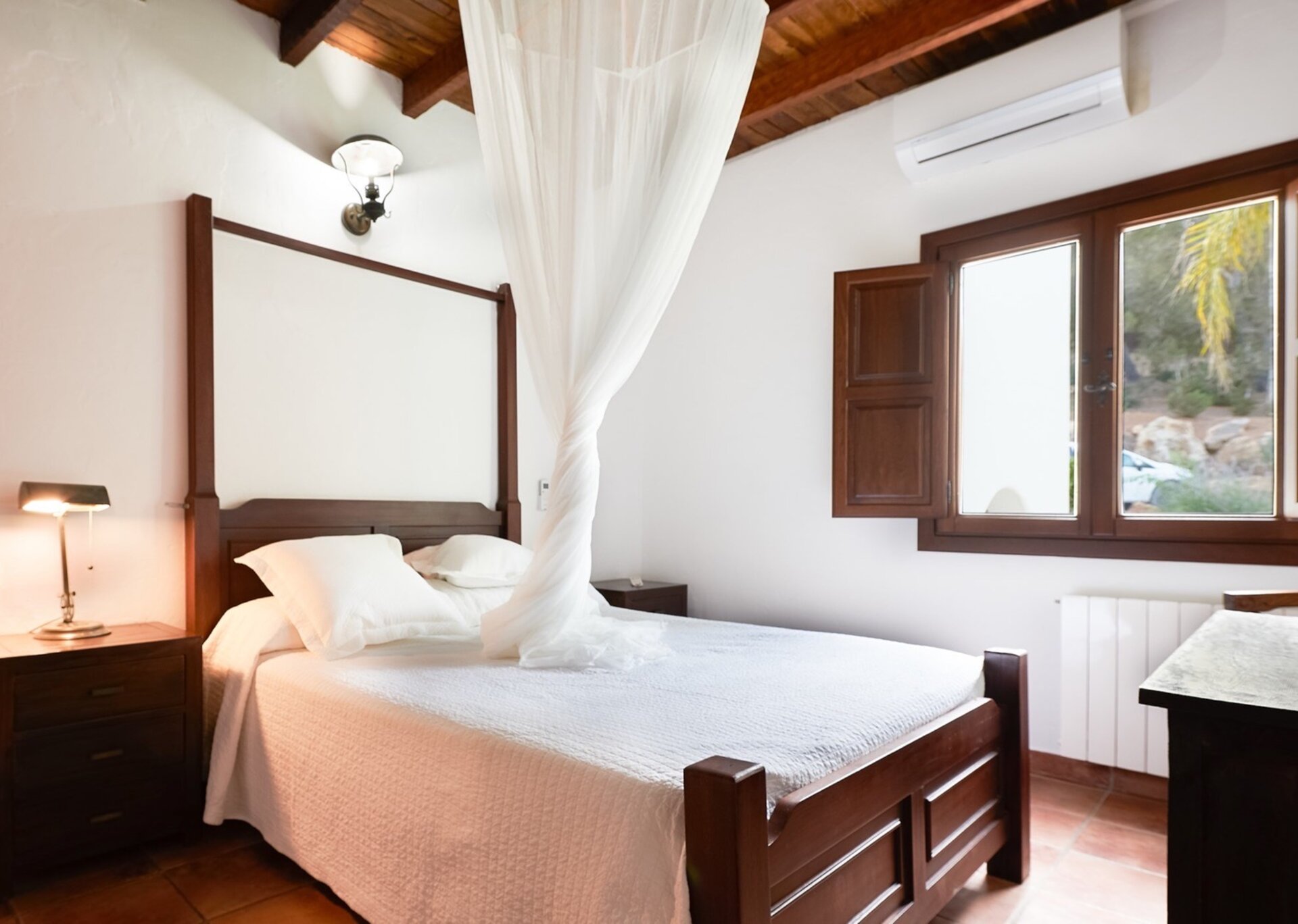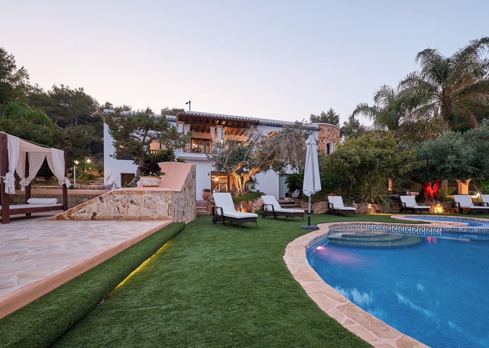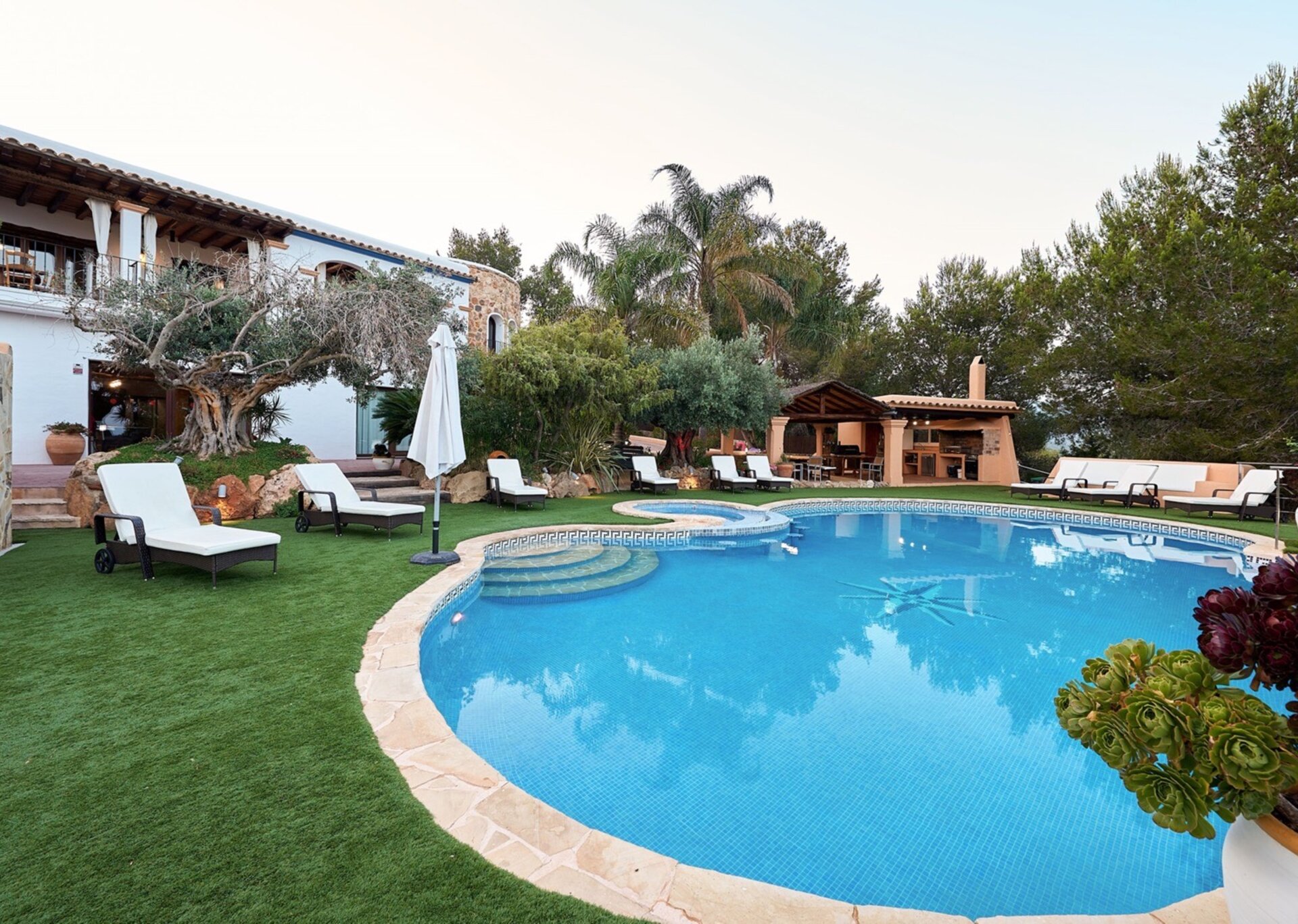 Throughout the property, you'll find stylish interiors, reflecting elegance and sophistication. An extensively equipped kitchen fulfills all the needs of a family or a group of friends, creating a true home away from home experience. The lounge area exudes a beautiful rustic ambiance, featuring an upscale open fireplace for cozy Ibizan evenings and intimate gatherings. All the ground-level rooms provide direct access to the magnificent terrace, enhancing the seamless connection with the outdoors.