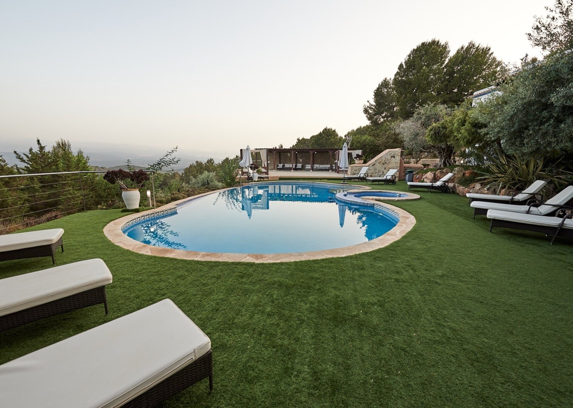 Surrounded by lush landscaped gardens, Cielle provides a perfect retreat for children to play or for friends and family to unwind. The terrace, a sight to behold, captures the dazzling Ibiza sun from dawn till dusk. For memorable evenings, an alfresco dining and barbecue area comfortably accommodates up to twelve guests, allowing them to indulge in the stunning panoramic views.