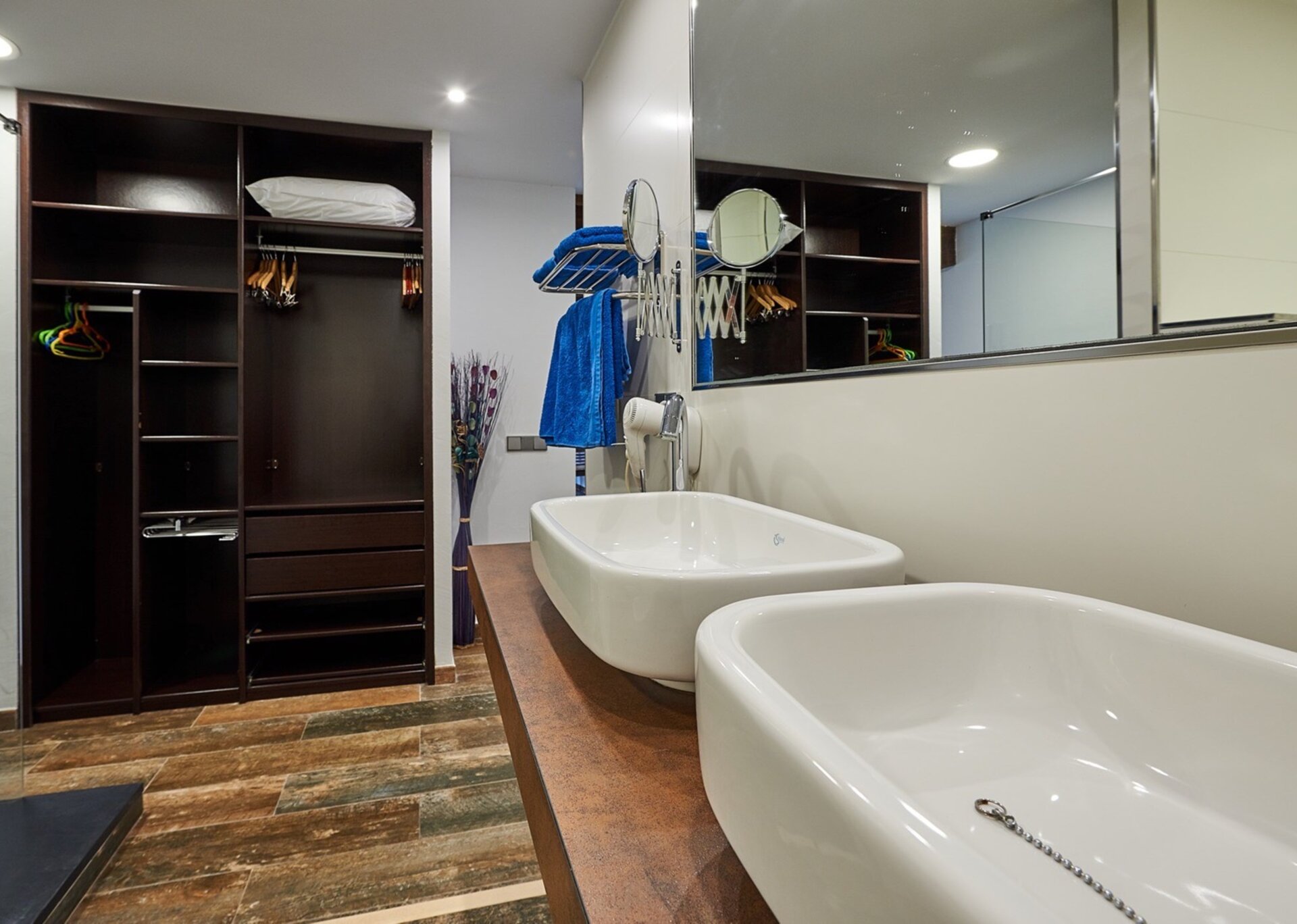 The bathrooms themselves are a haven of relaxation, featuring hydromassage showerheads and deep soaking baths. After a day spent basking in the glorious sunshine, guests can unwind and rejuvenate in pure bliss.