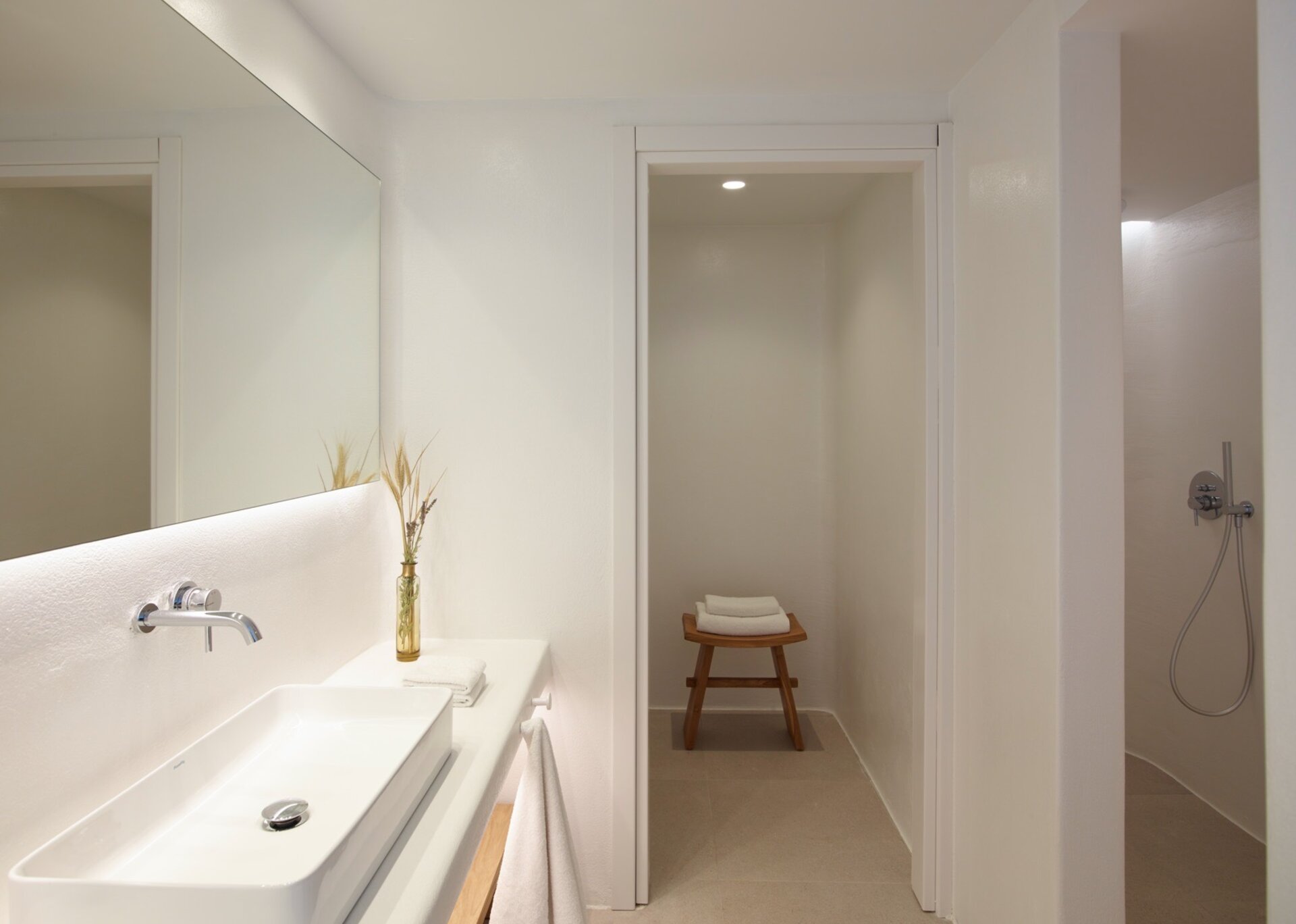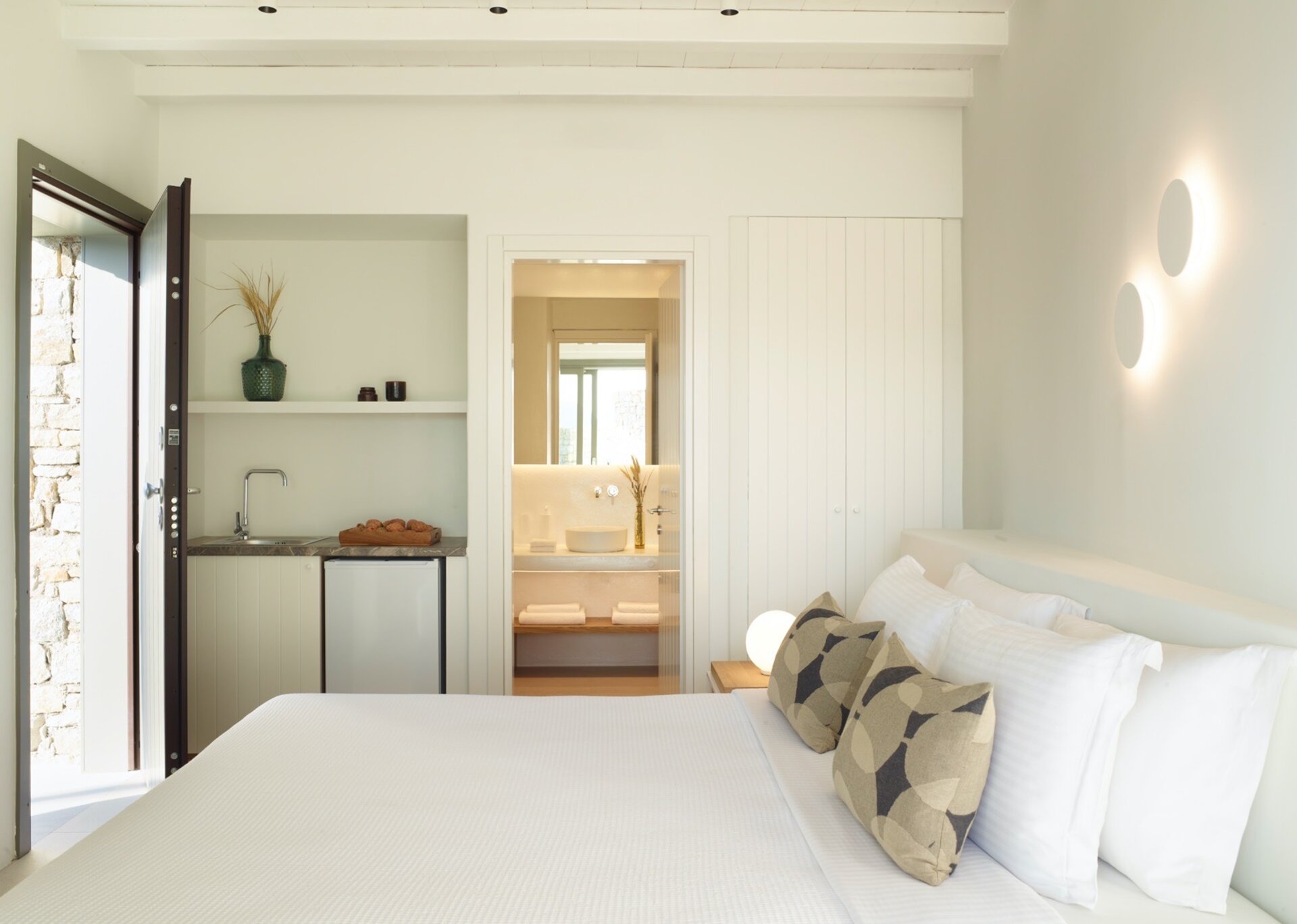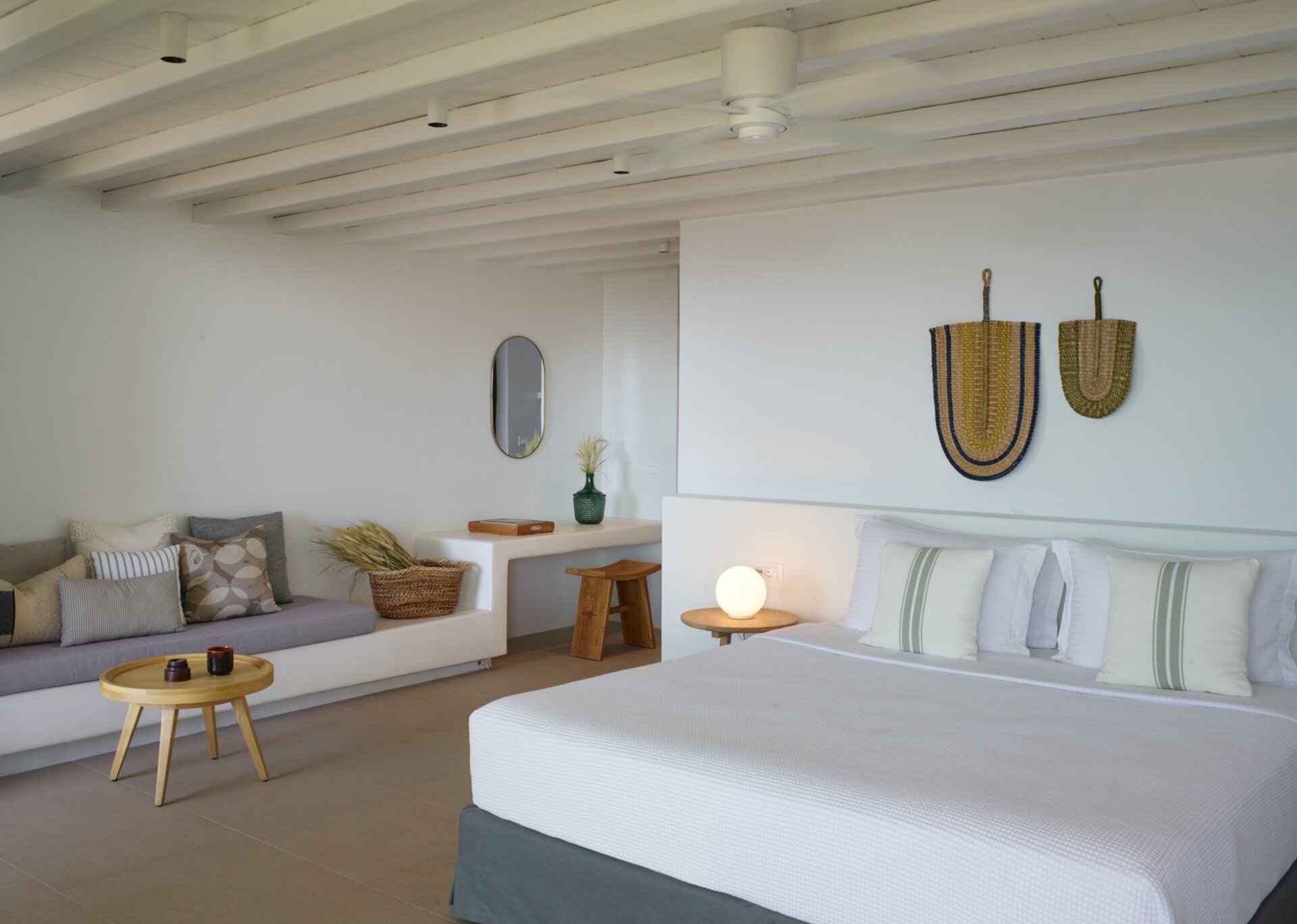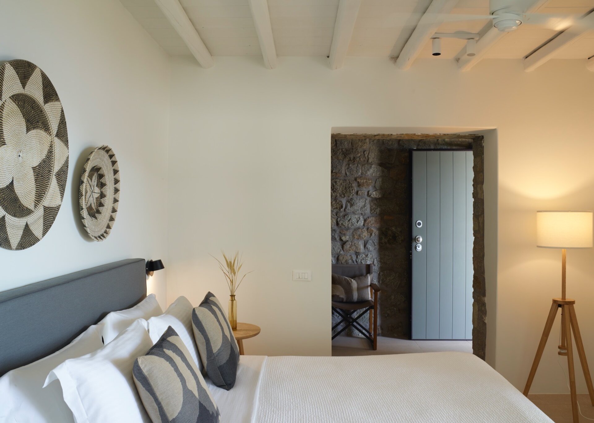 7 guest houses each with queen size bed, A/C, ceiling fan, en-suite bathroom with shower, TV, safe box, espresso machine, sea and pool view, access to the outdoor area, independent entrance