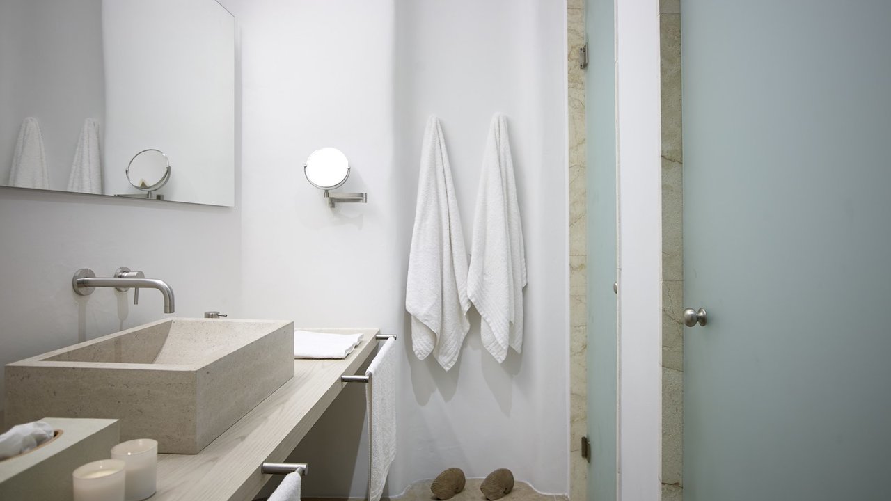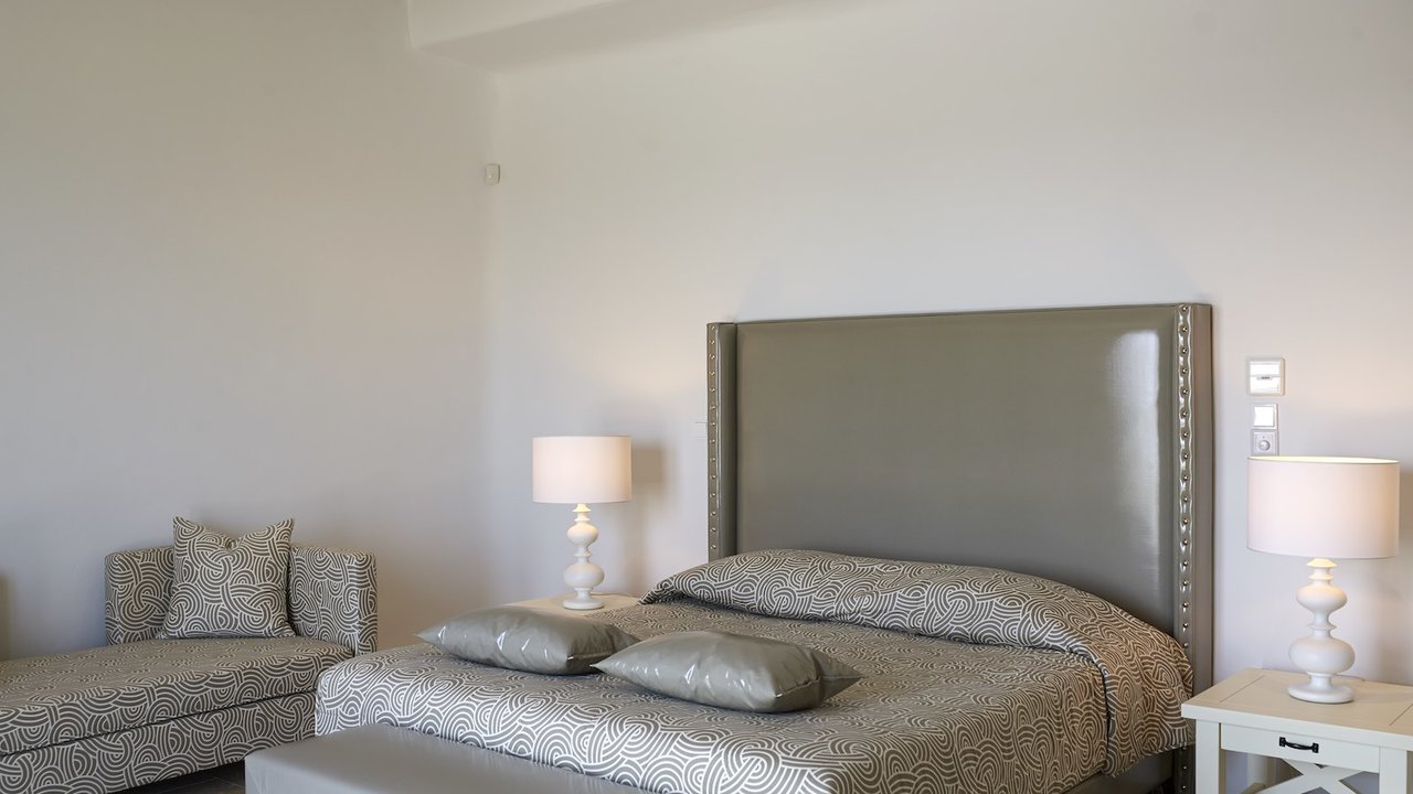 Coco is Carolyn’s twin property, and it is a stunning white villa with sweeping views of the Aegean Sea. Coco is oriented towards Paradise beach and Naxos Island.