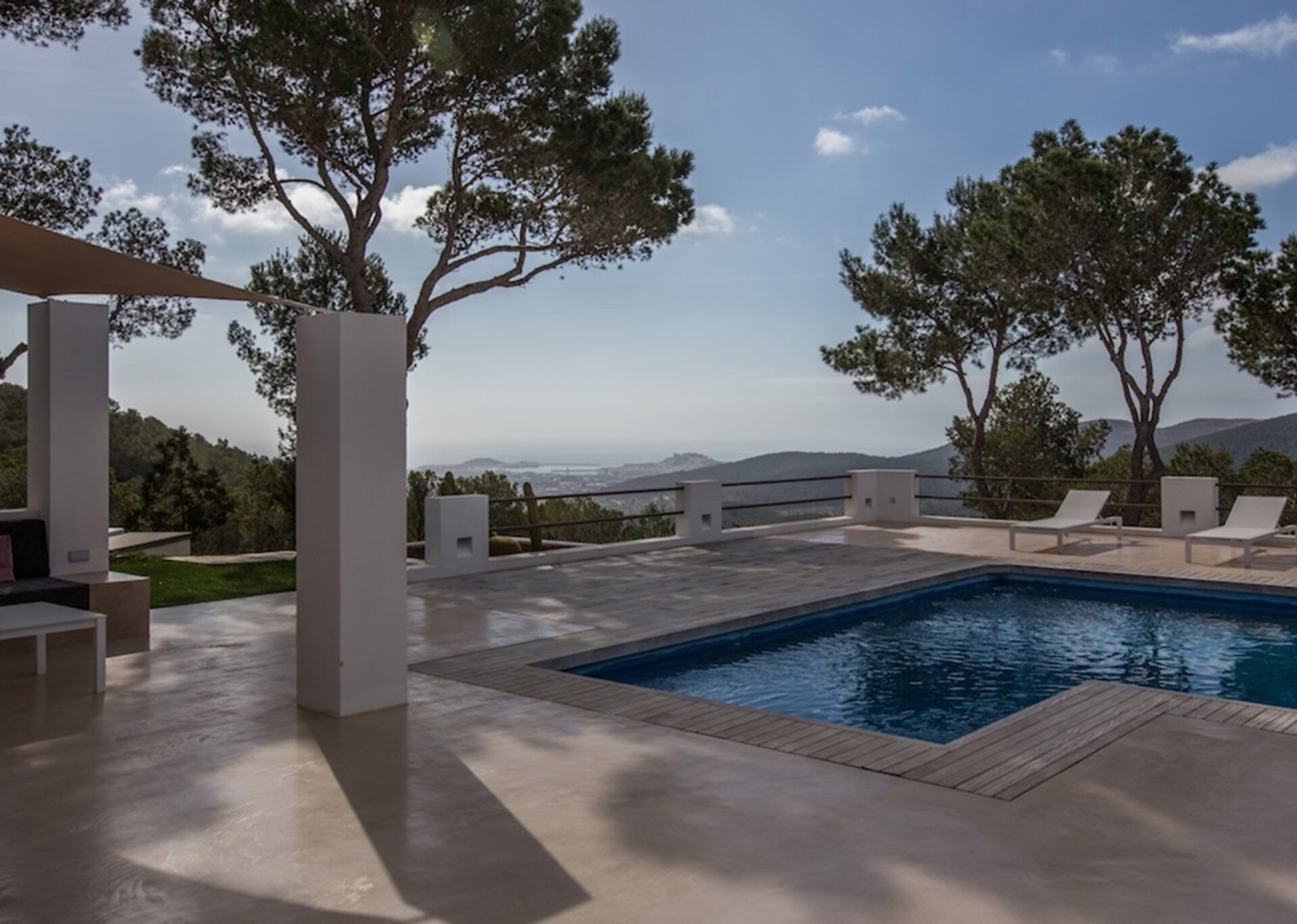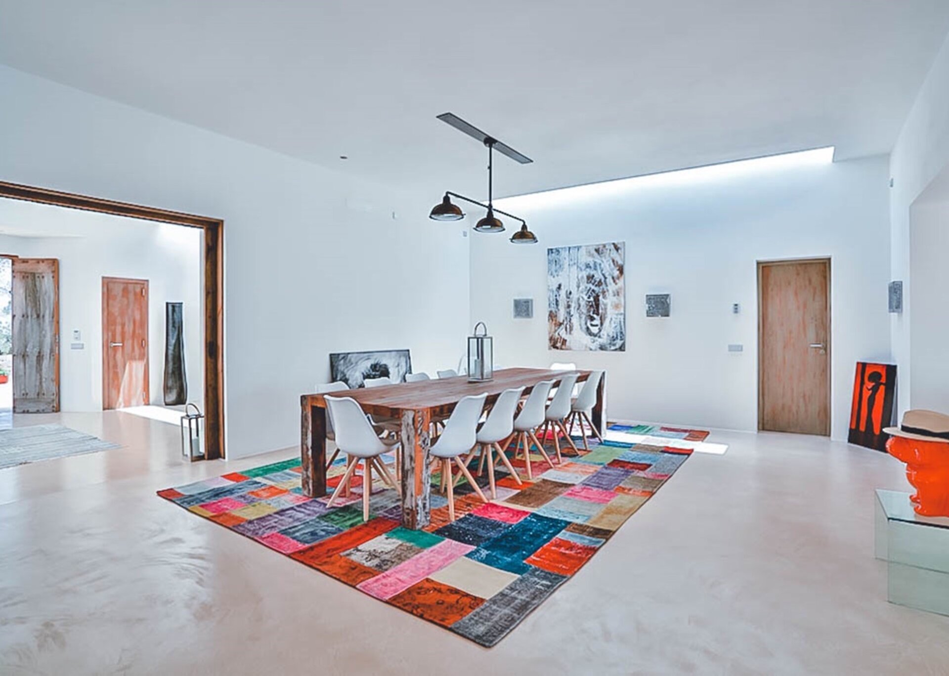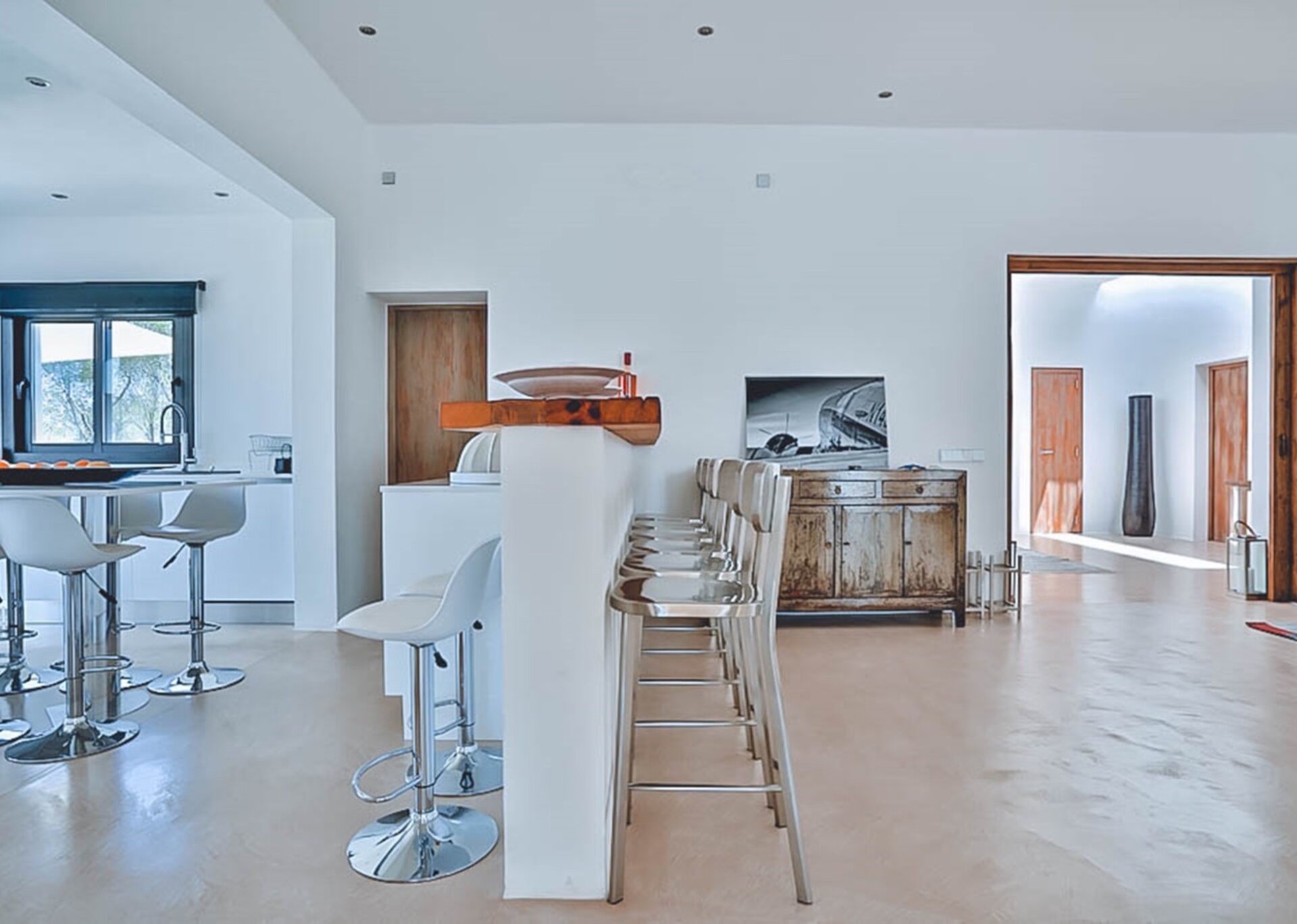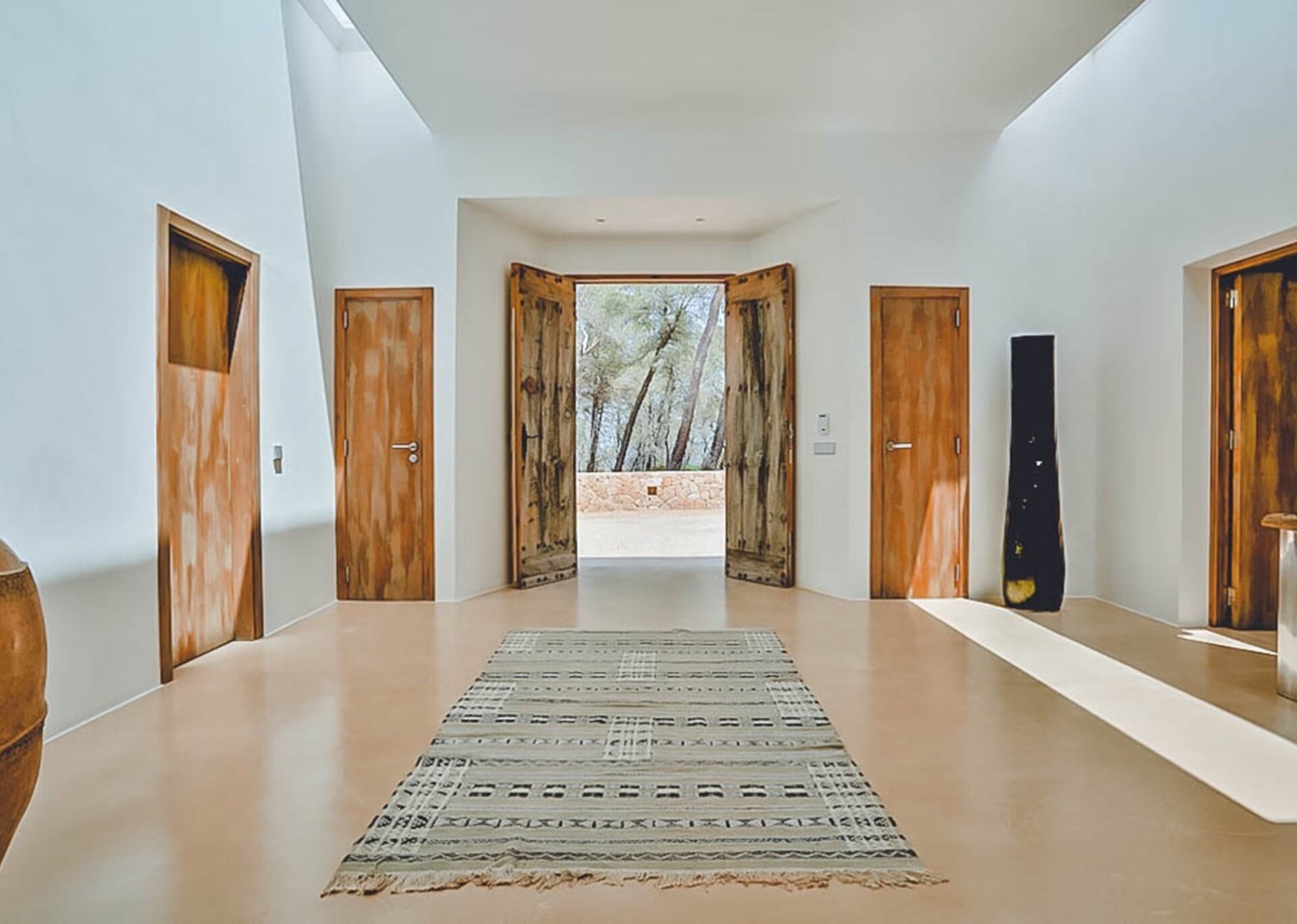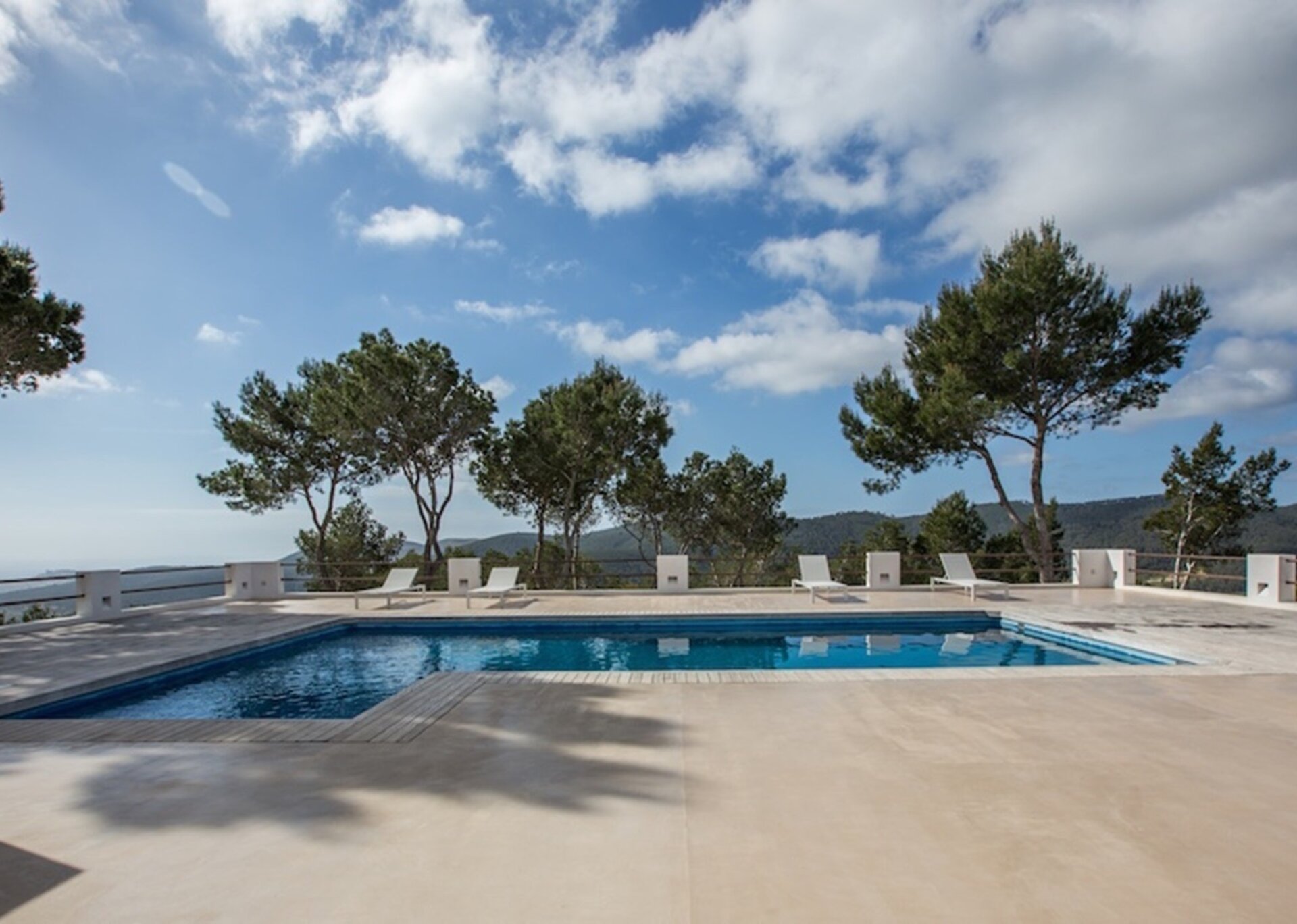 VVilla Conilera, located on a hilltop, boasts breathtaking 360° views ofrises, sunsets, and the natural surroundings of Ibiza. With seven spacious bedrooms, this home offers a blend of modern architecture and cozy living spaces. Privacy is prioritized on its expansive plot of land, adorned with forests and a gentle incline. The central atrium welcomes you with grandeur, while the interiors are bathed in natural light through double-height ceilings. Whitewashed walls serve as a perfect backdrop for displaying art, and antique wooden doors and polished concrete floors add texture to this remarkable home.