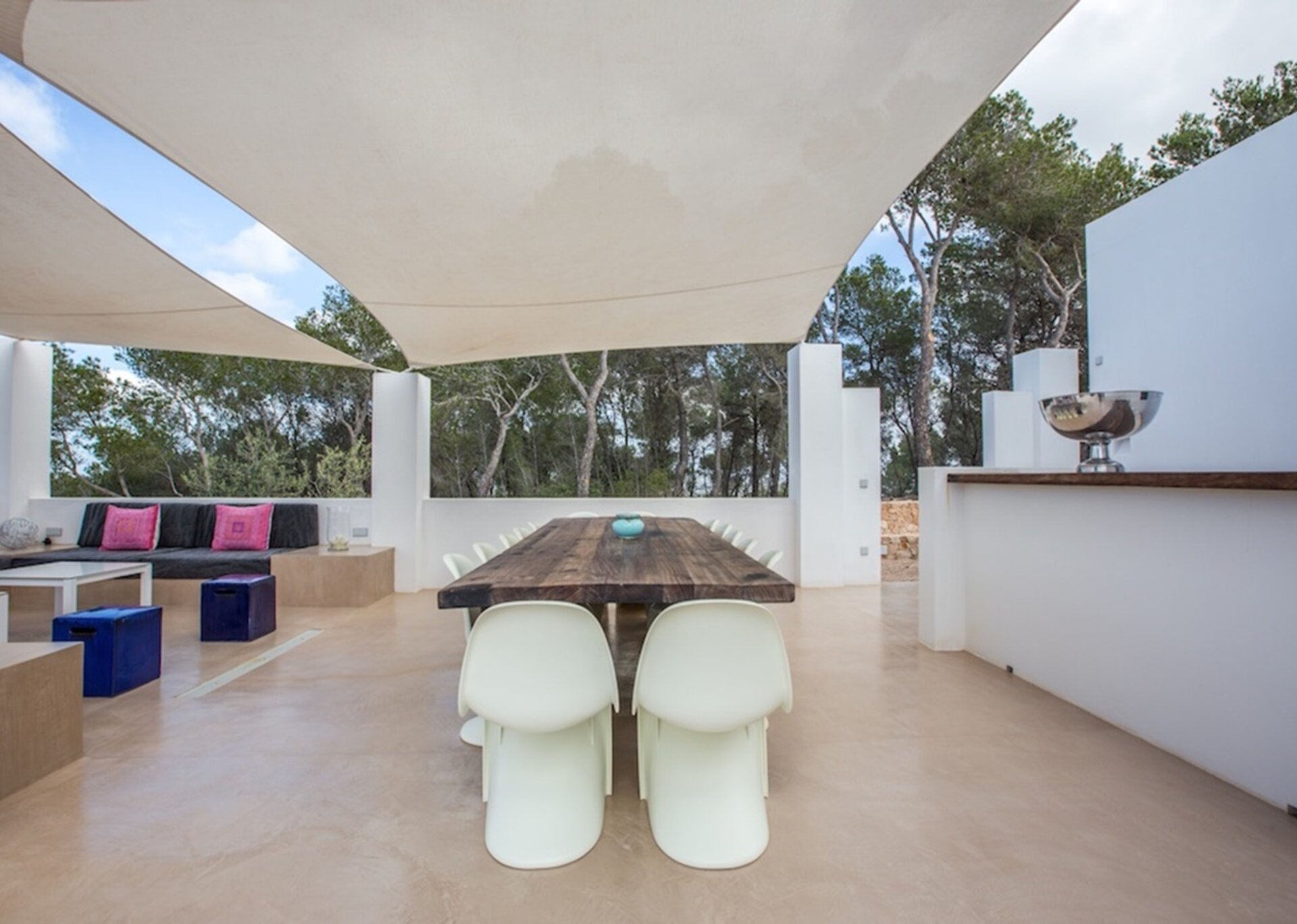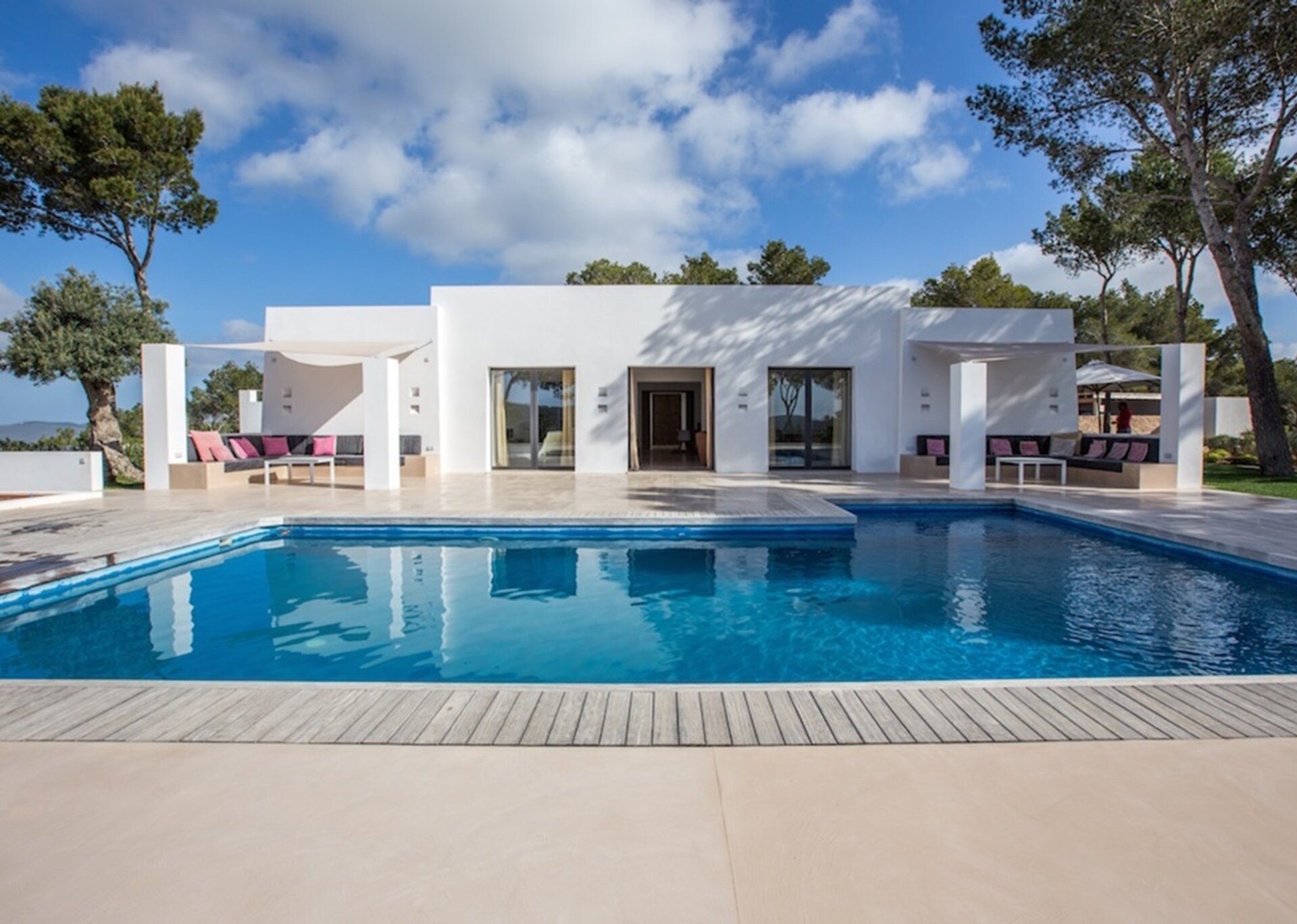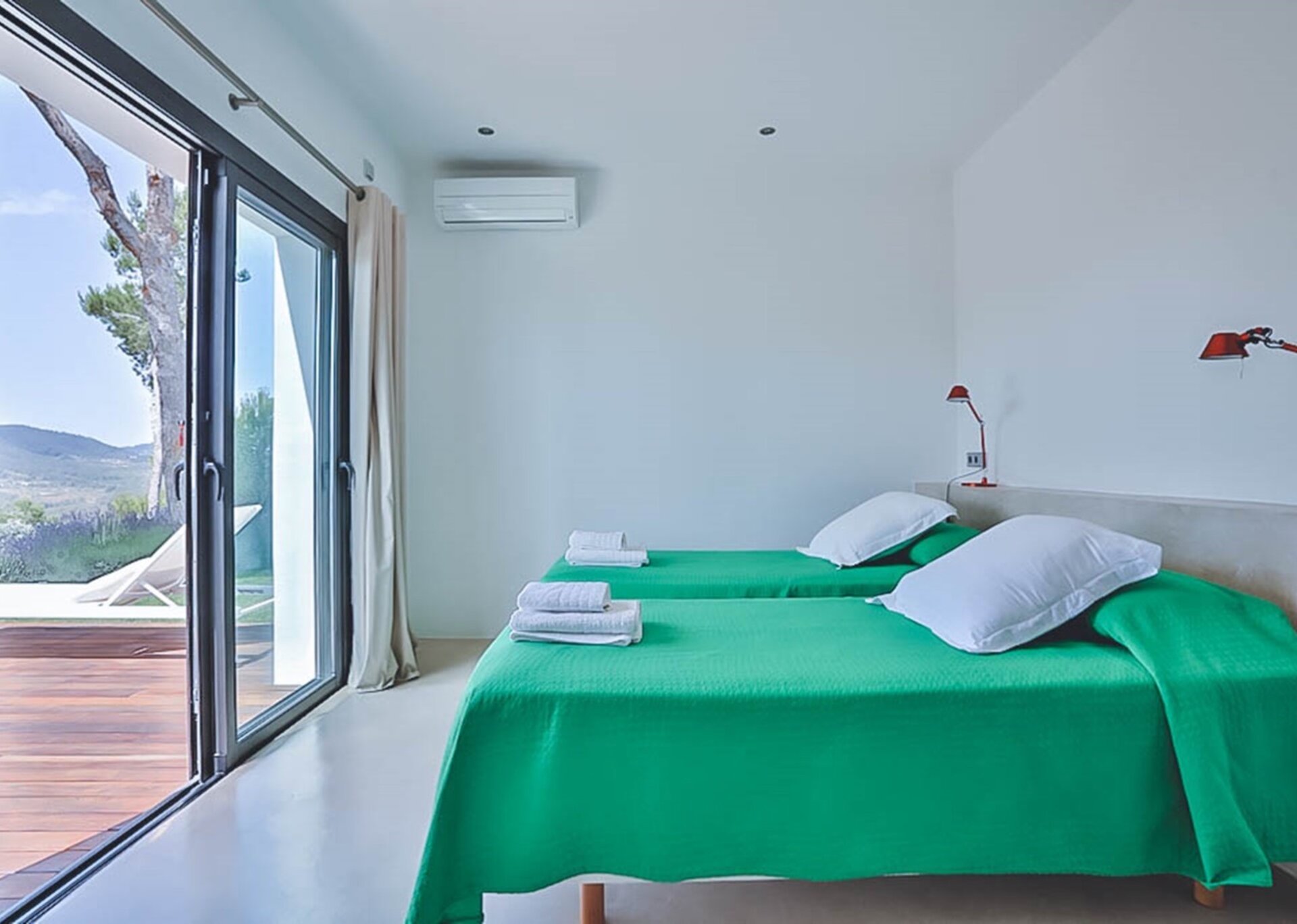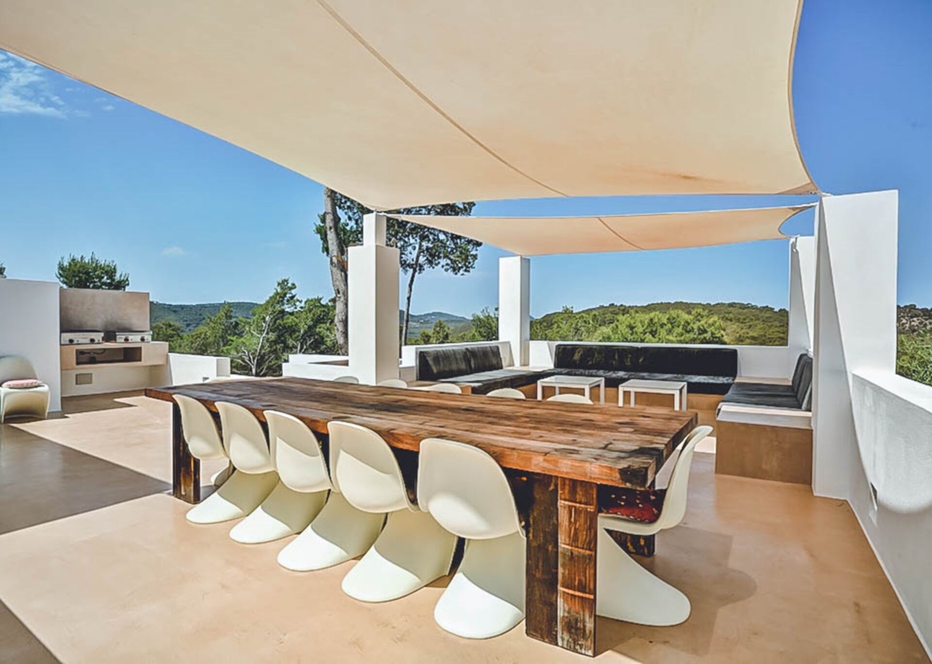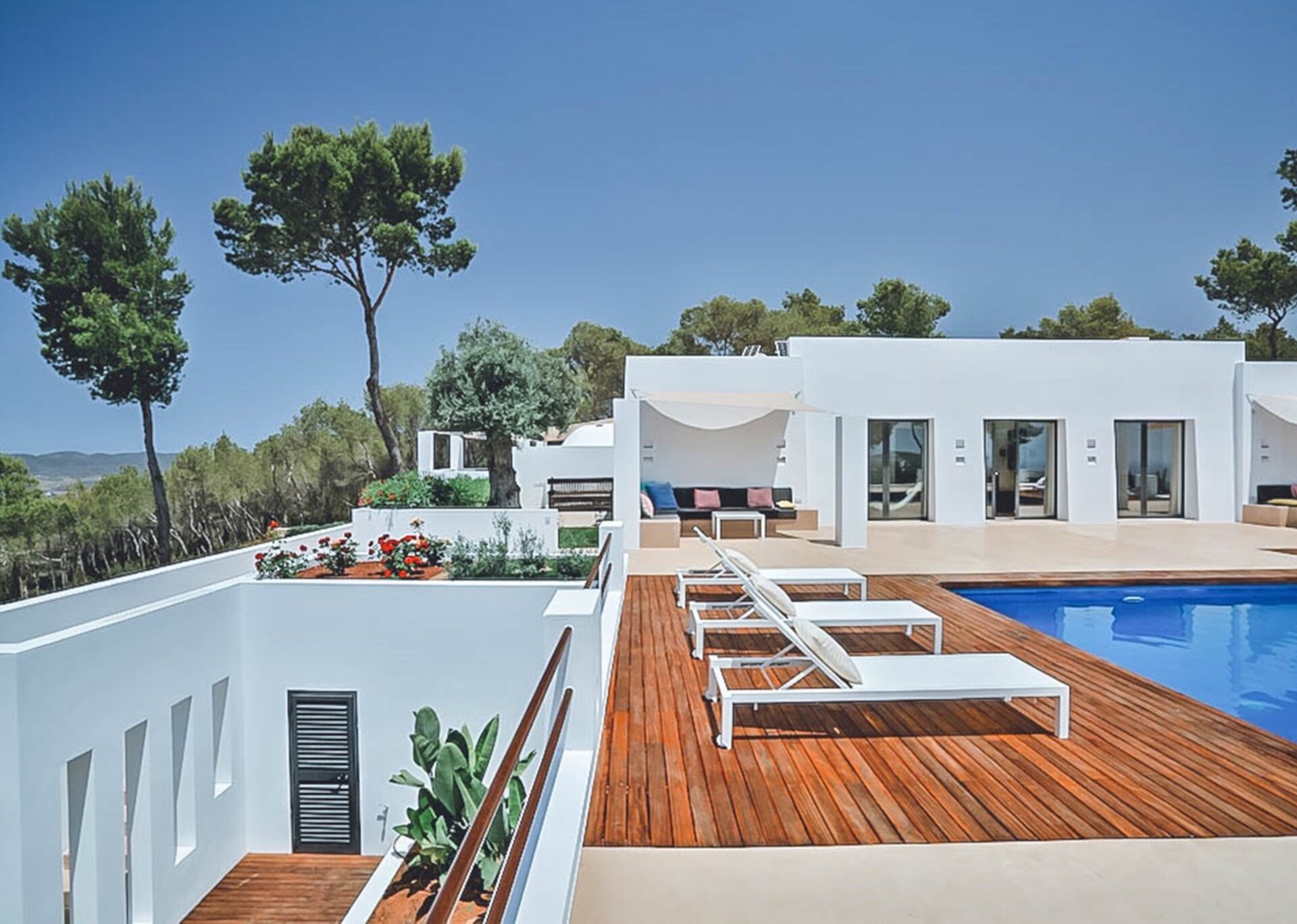 VVilla Conilera, located on a hilltop, boasts breathtaking 360° views ofrises, sunsets, and the natural surroundings of Ibiza. With seven spacious bedrooms, this home offers a blend of modern architecture and cozy living spaces. Privacy is prioritized on its expansive plot of land, adorned with forests and a gentle incline. The central atrium welcomes you with grandeur, while the interiors are bathed in natural light through double-height ceilings. Whitewashed walls serve as a perfect backdrop for displaying art, and antique wooden doors and polished concrete floors add texture to this remarkable home.