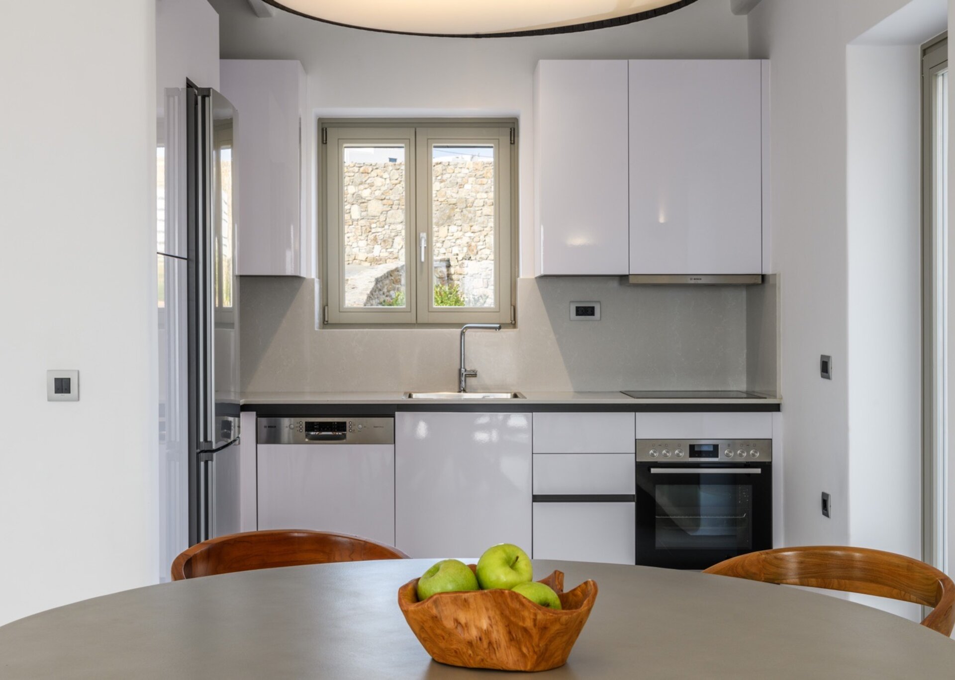 Inside the house, the mood is lavish. Cora is elegantly and minimally decorated without any unnecessary details. The house can accommodate up to 12 guests in 6 spacious bedrooms.