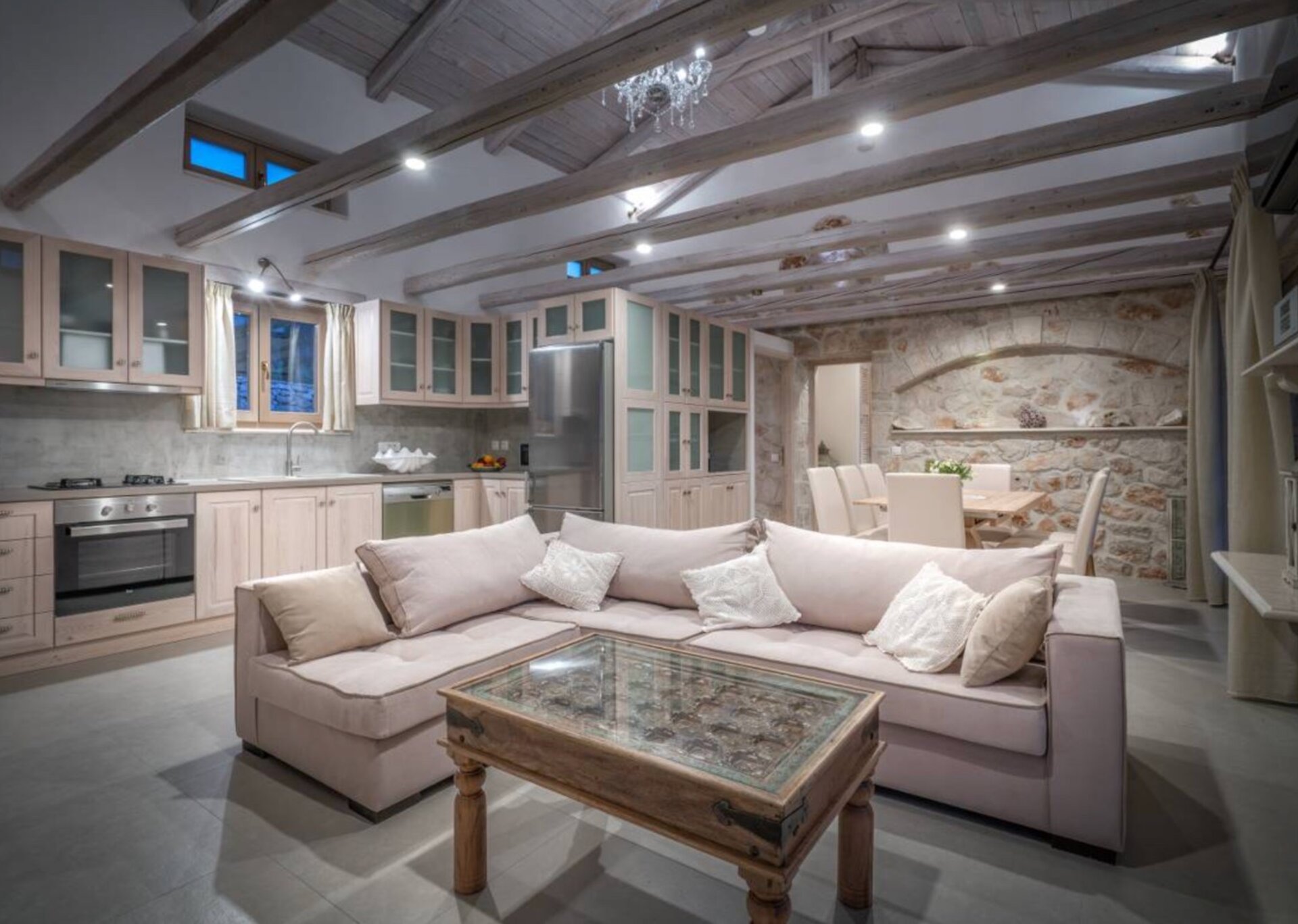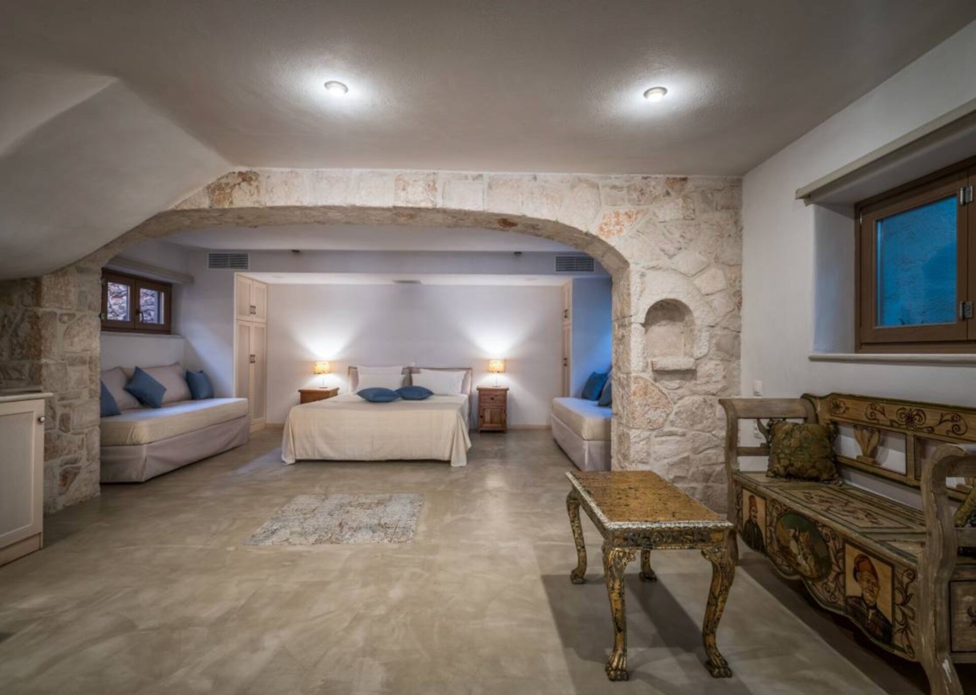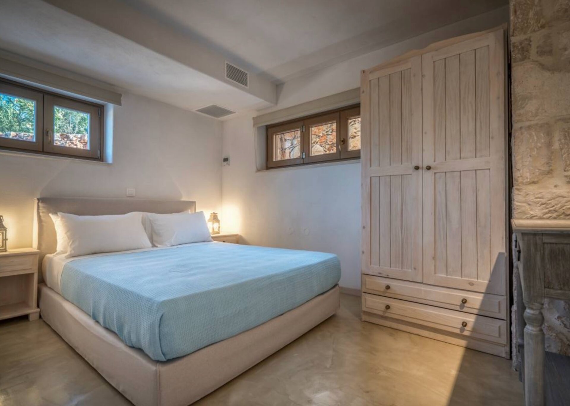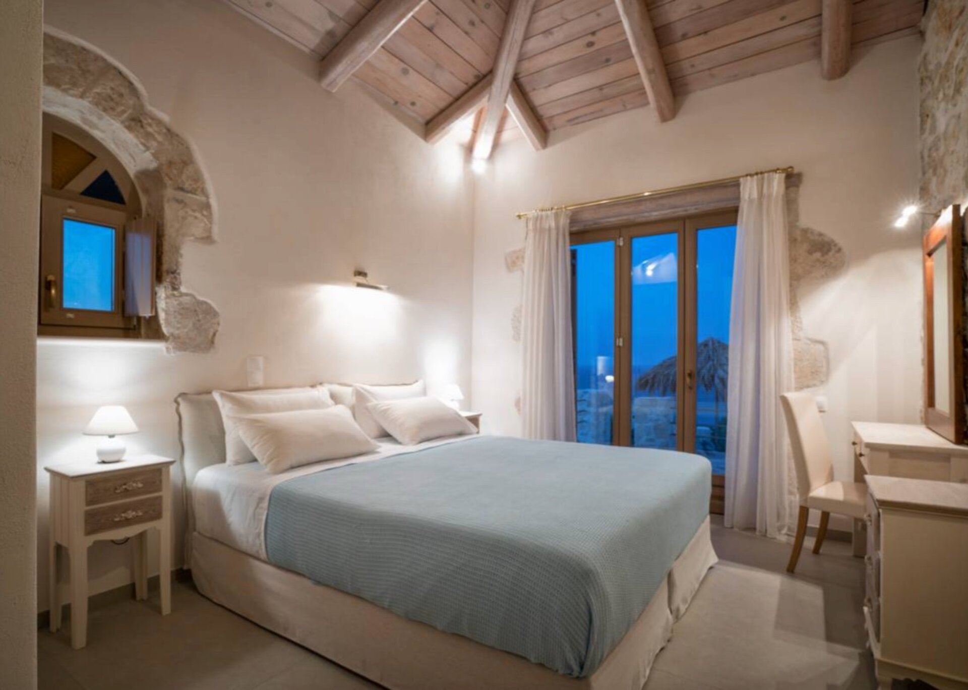 The inside of the house includes an elegantly decorated living room with comfortable sofas and a fireplace, which is ideal for relaxation. The atmosphere of the house is cozy and opulent. Also there is a fully equipped kitchen to prepare a meal and an inside dining area to enjoy it. Coral interior place includes a private hammam to enhance the ambience of privacy.