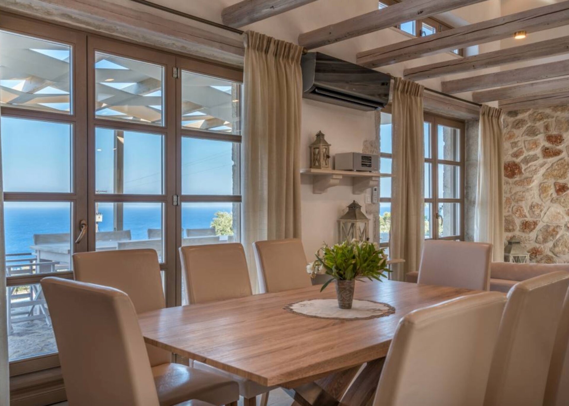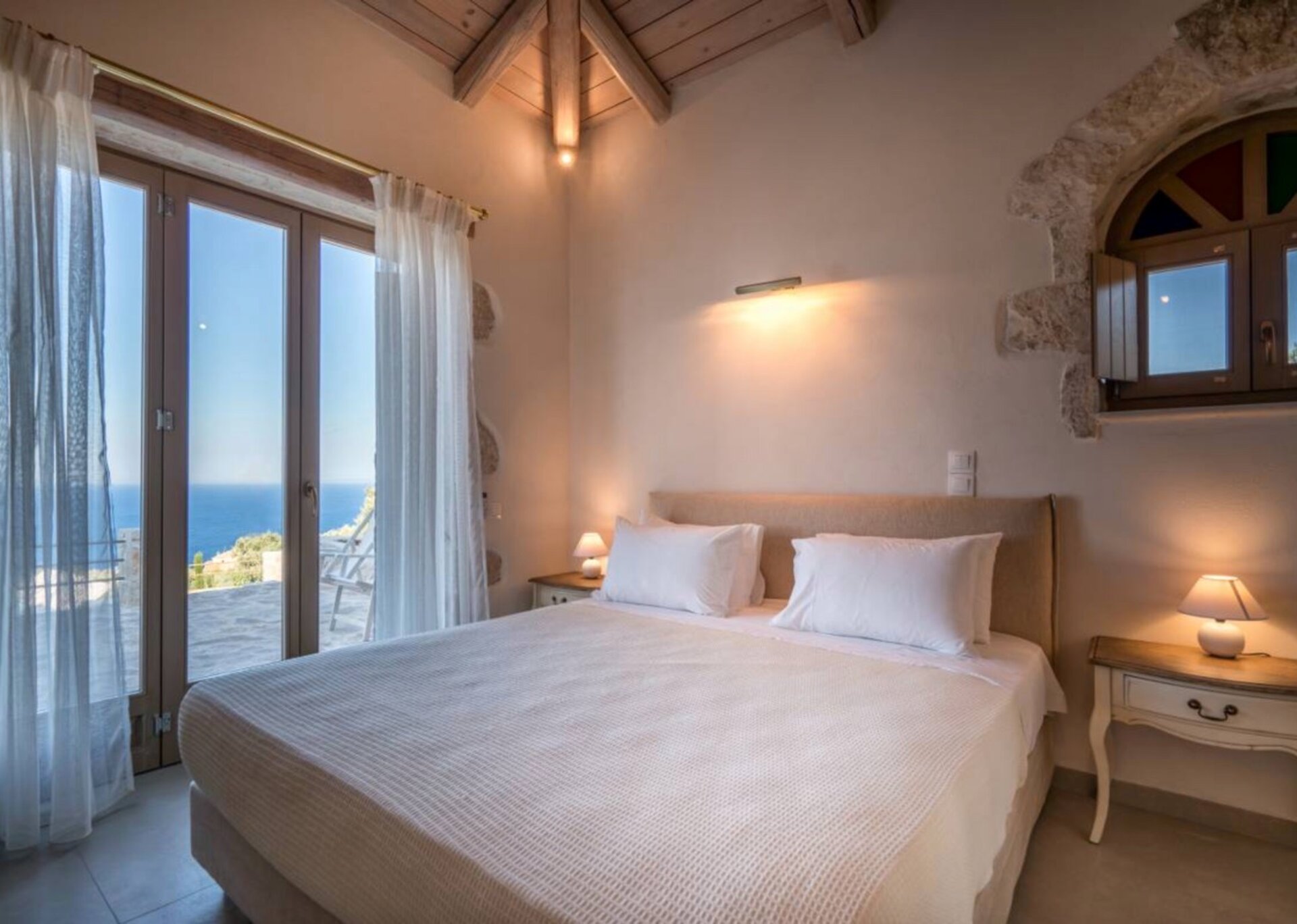 A stunning estate situated in Agios Nikolaos of Zakynthos, villa Coral offers a unique ambience of serenity and perfectly captures the island. Coral has dashing outdoor and stylish interior areas. The outer terraces are spacious and include an infinity pool and a lovely outer dining area. The villa is simply mesmerizing with glorious sea and sunset views that can be gazed from numerous lounging spots near the pool or the dining area.