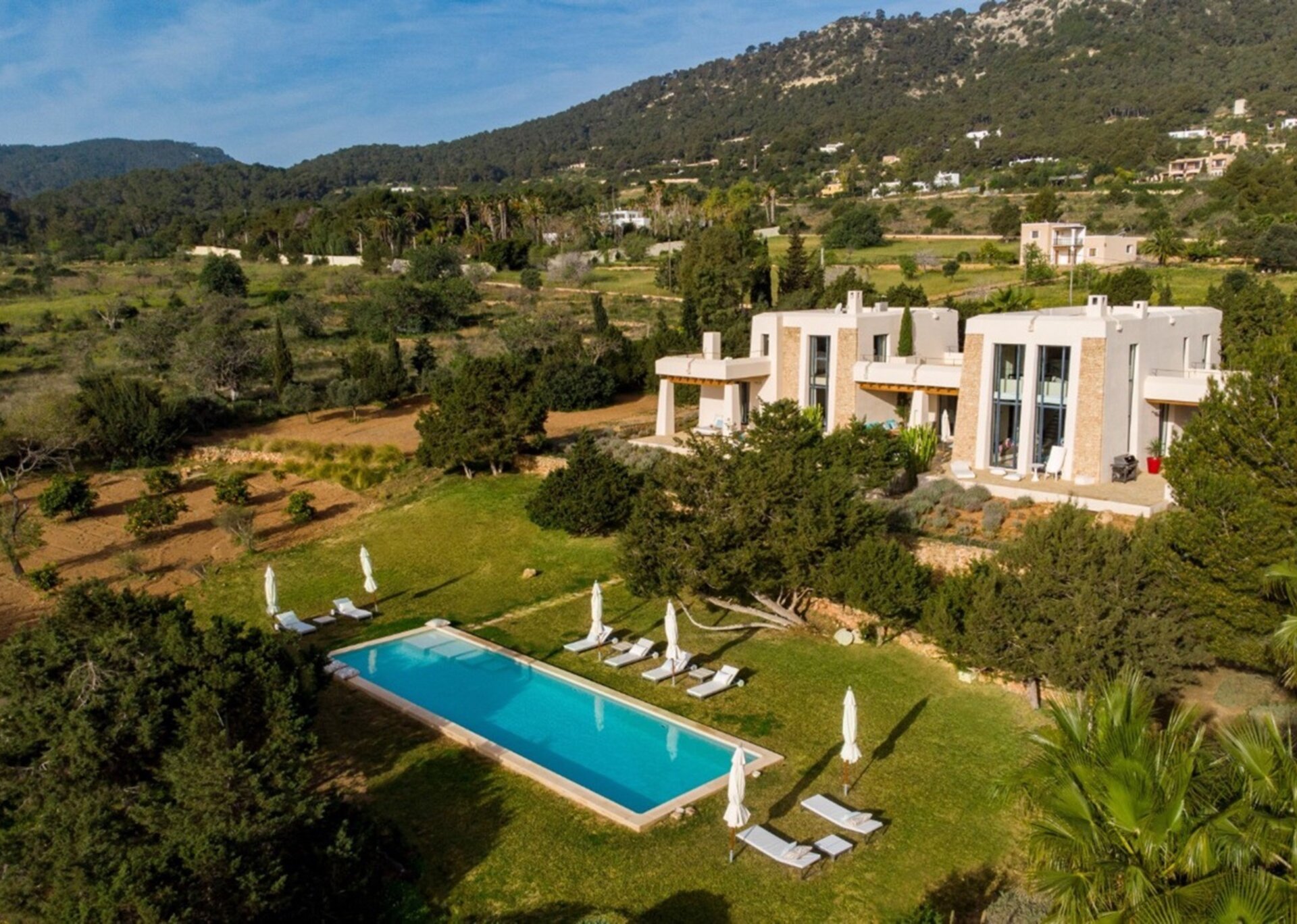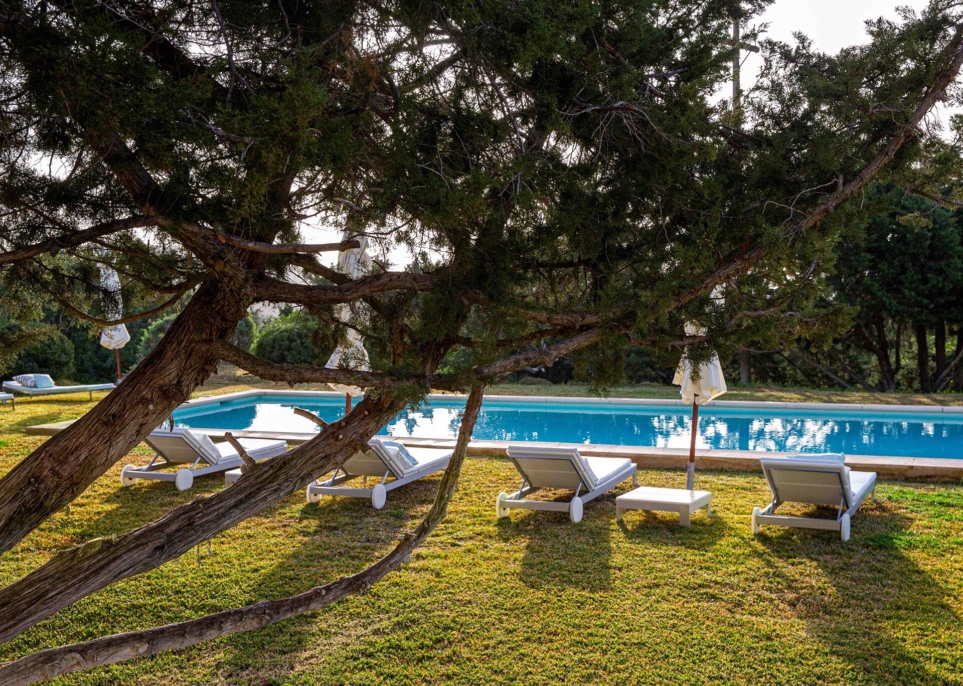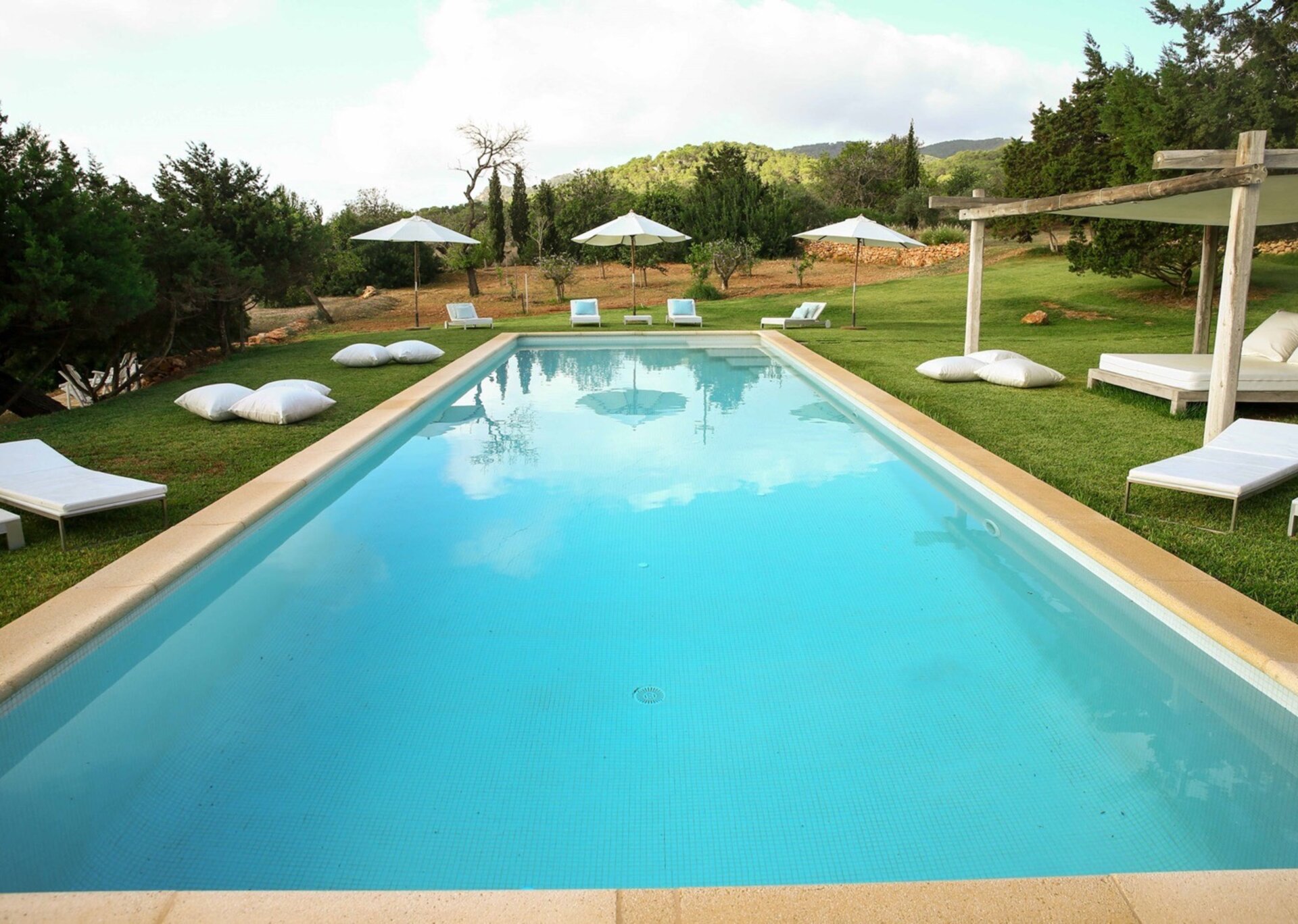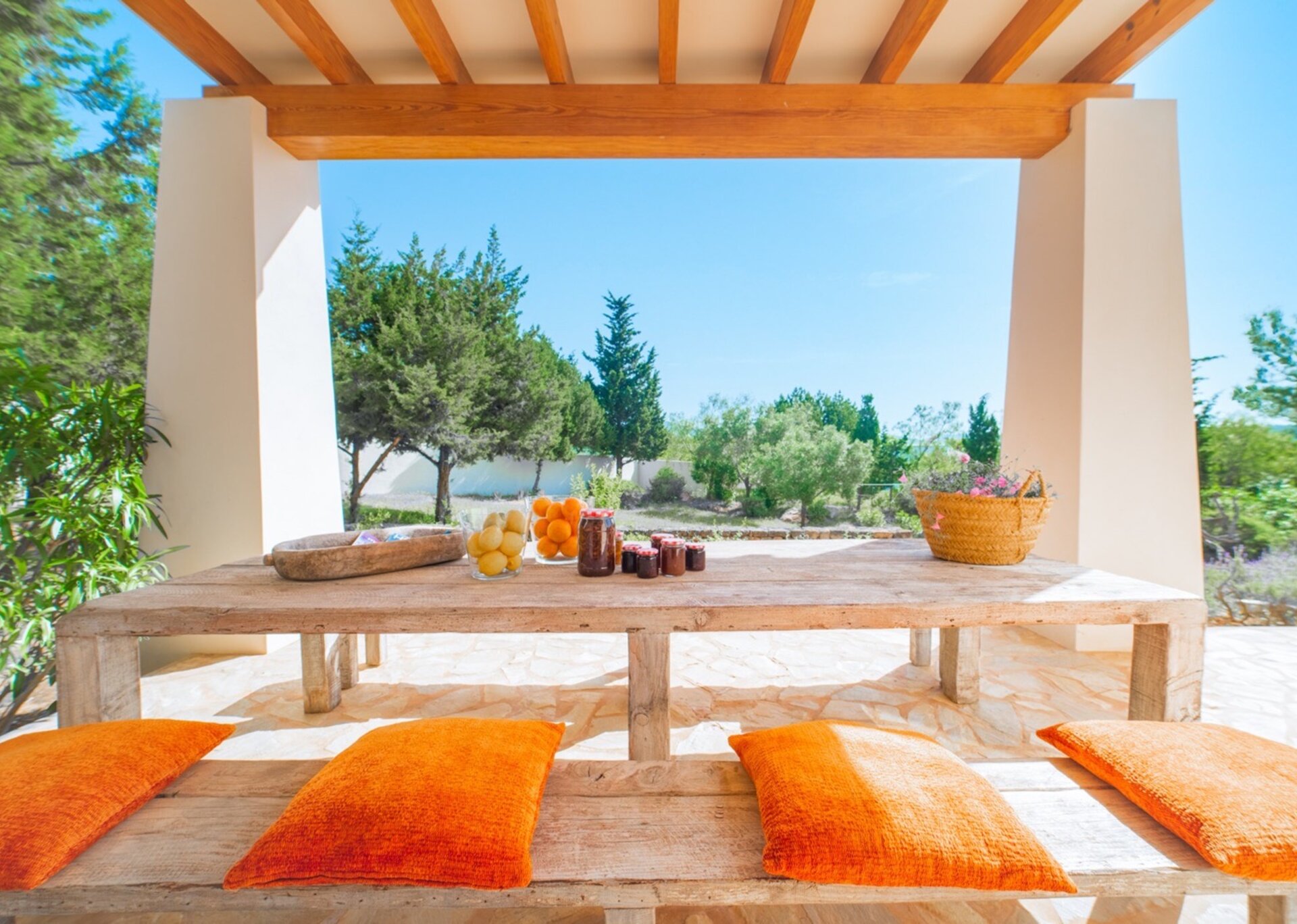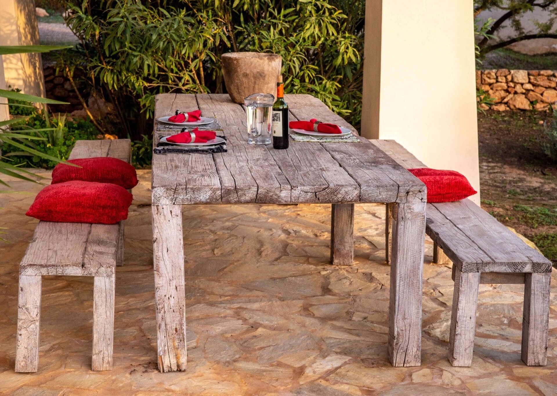 Step outside into Cuervo's fragrant gardens and immerse yourself in the serenity of the surrounding pine forests while taking in the breathtaking views of the Mediterranean Sea. The rustic flagged terrace leads to vast, impeccably manicured lawns that meet the fabulous pool, a shaded gazebo, and comfortable sun loungers. An inviting dining space, a cozy low-seated lounge area, and a second al-fresco dining table grace the terrace. Cuervo villa is an unparalleled, captivating hideaway on the beautiful island of Ibiza.