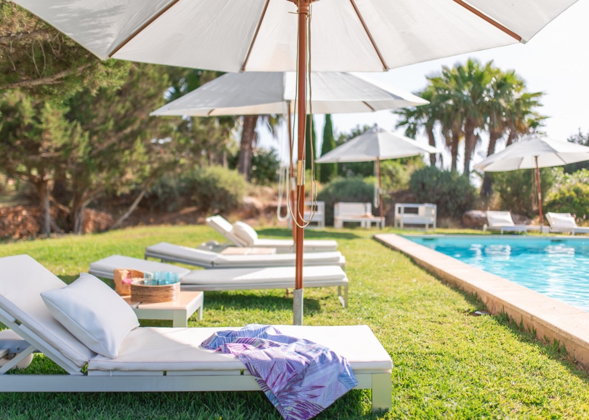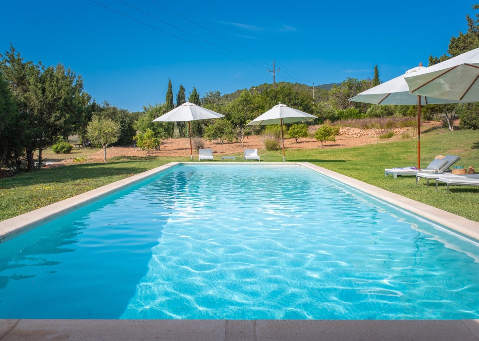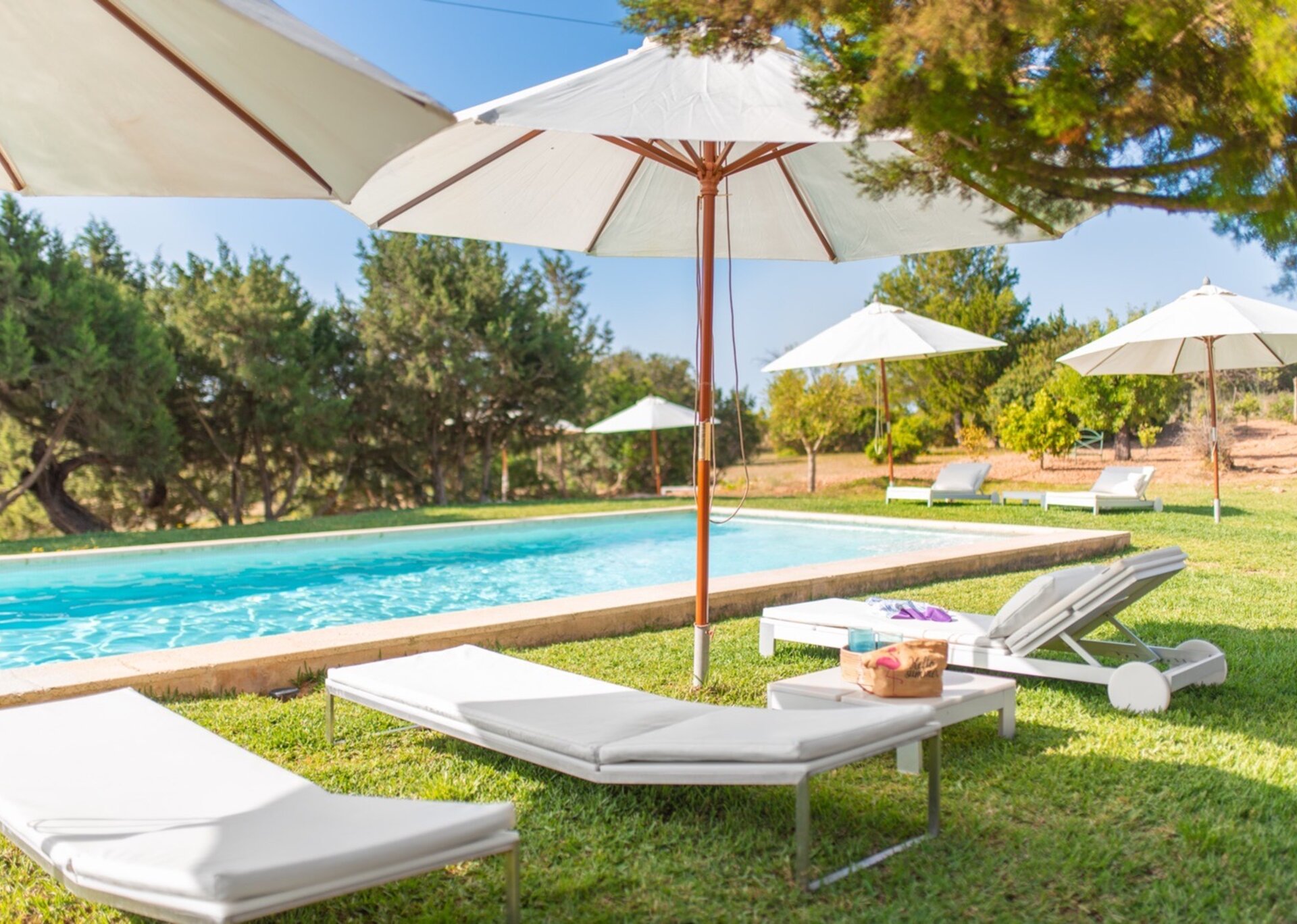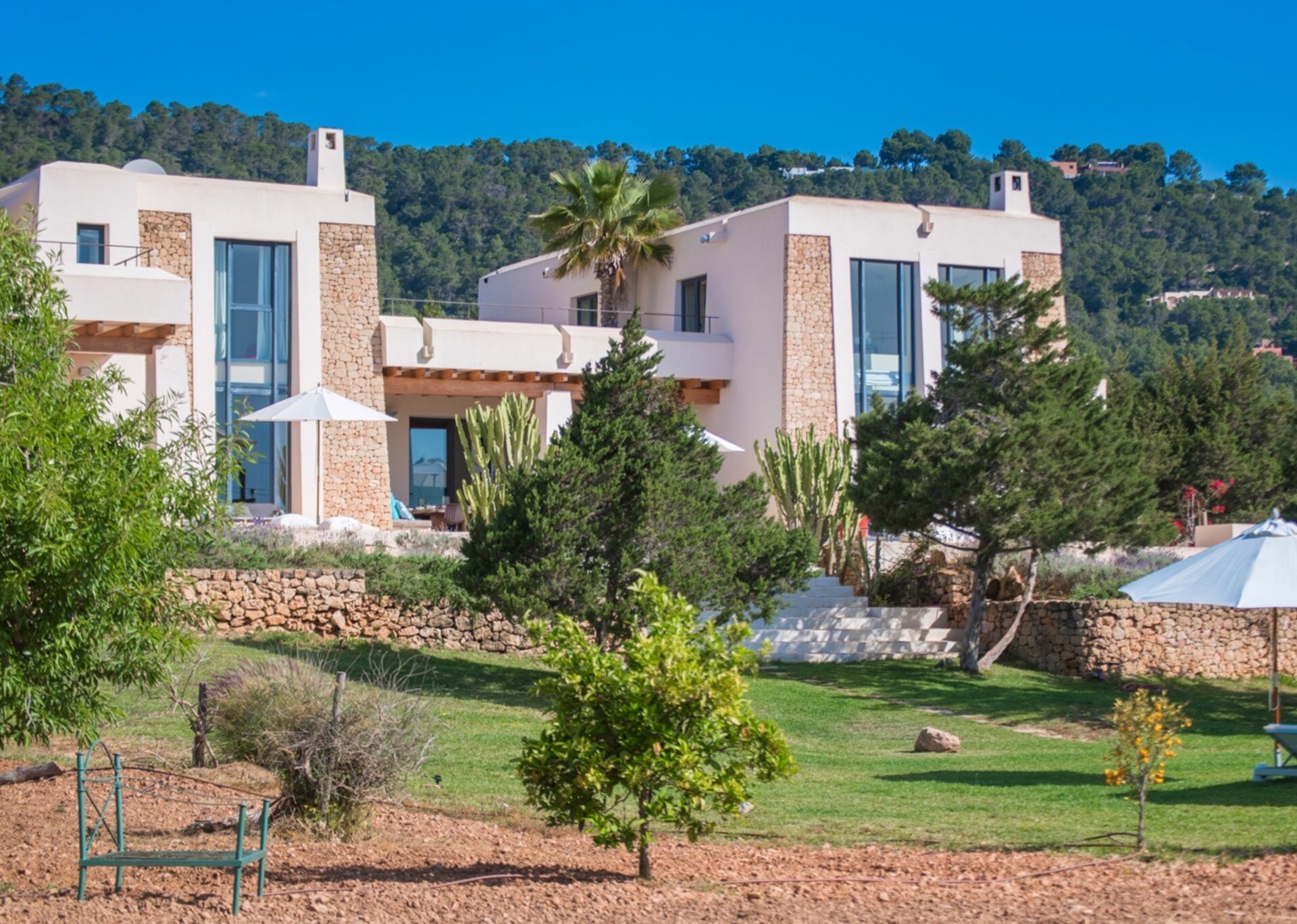 Step outside into Cuervo's fragrant gardens and immerse yourself in the serenity of the surrounding pine forests while taking in the breathtaking views of the Mediterranean Sea. The rustic flagged terrace leads to vast, impeccably manicured lawns that meet the fabulous pool, a shaded gazebo, and comfortable sun loungers. An inviting dining space, a cozy low-seated lounge area, and a second al-fresco dining table grace the terrace. Cuervo villa is an unparalleled, captivating hideaway on the beautiful island of Ibiza.