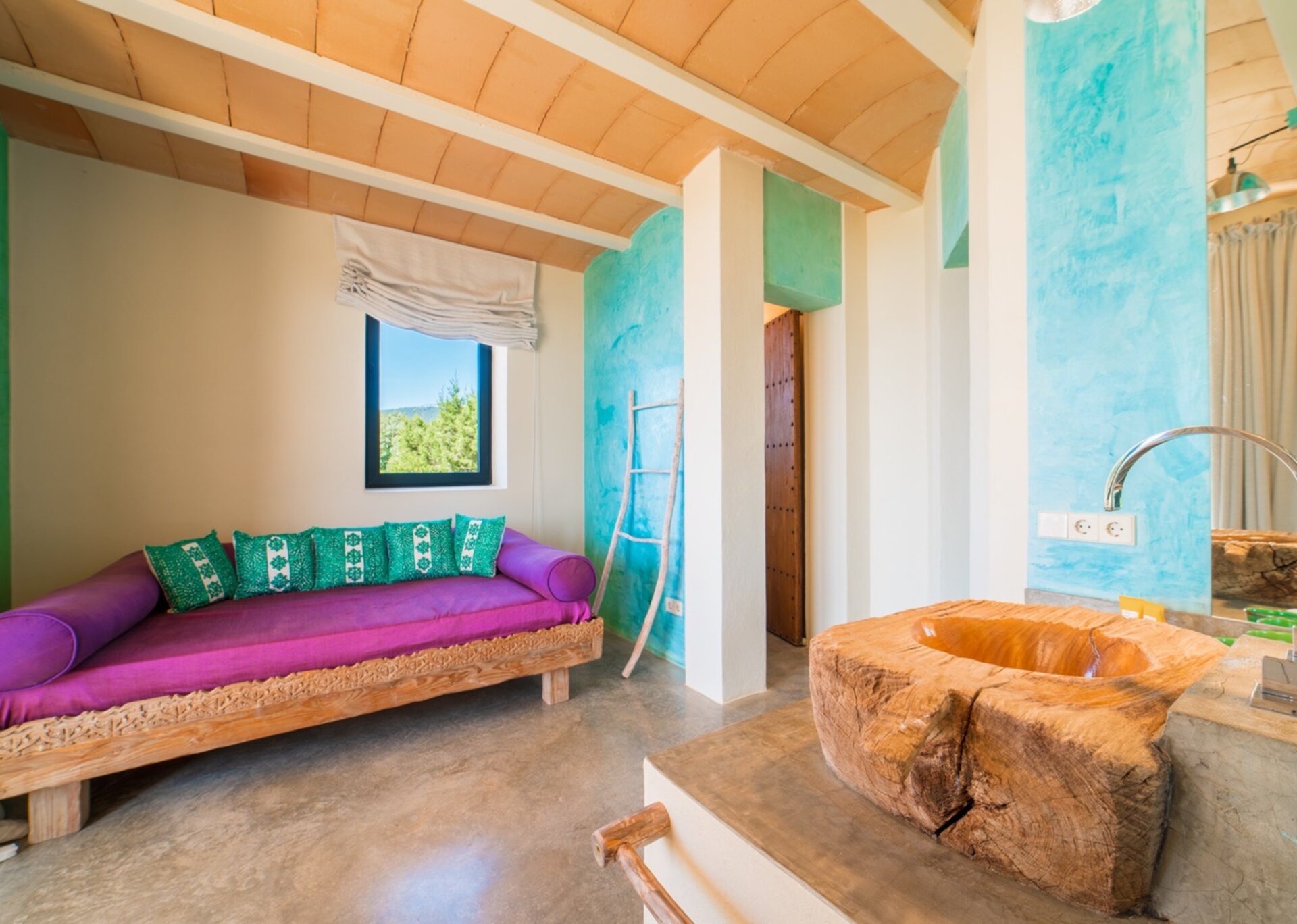Cuervo is a remarkable home that flawlessly blends bohemian chic with contemporary living. This beautiful villa, nestled just a short stroll away from the exclusive village of Es Cubells, offers convenient access to the most secluded and picturesque beaches on the island of Ibiza.