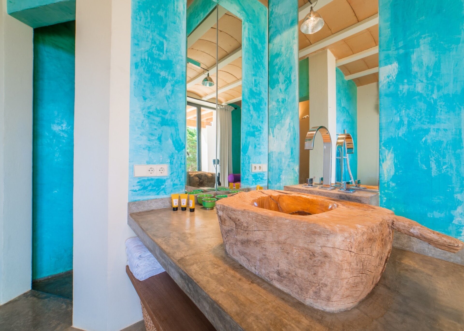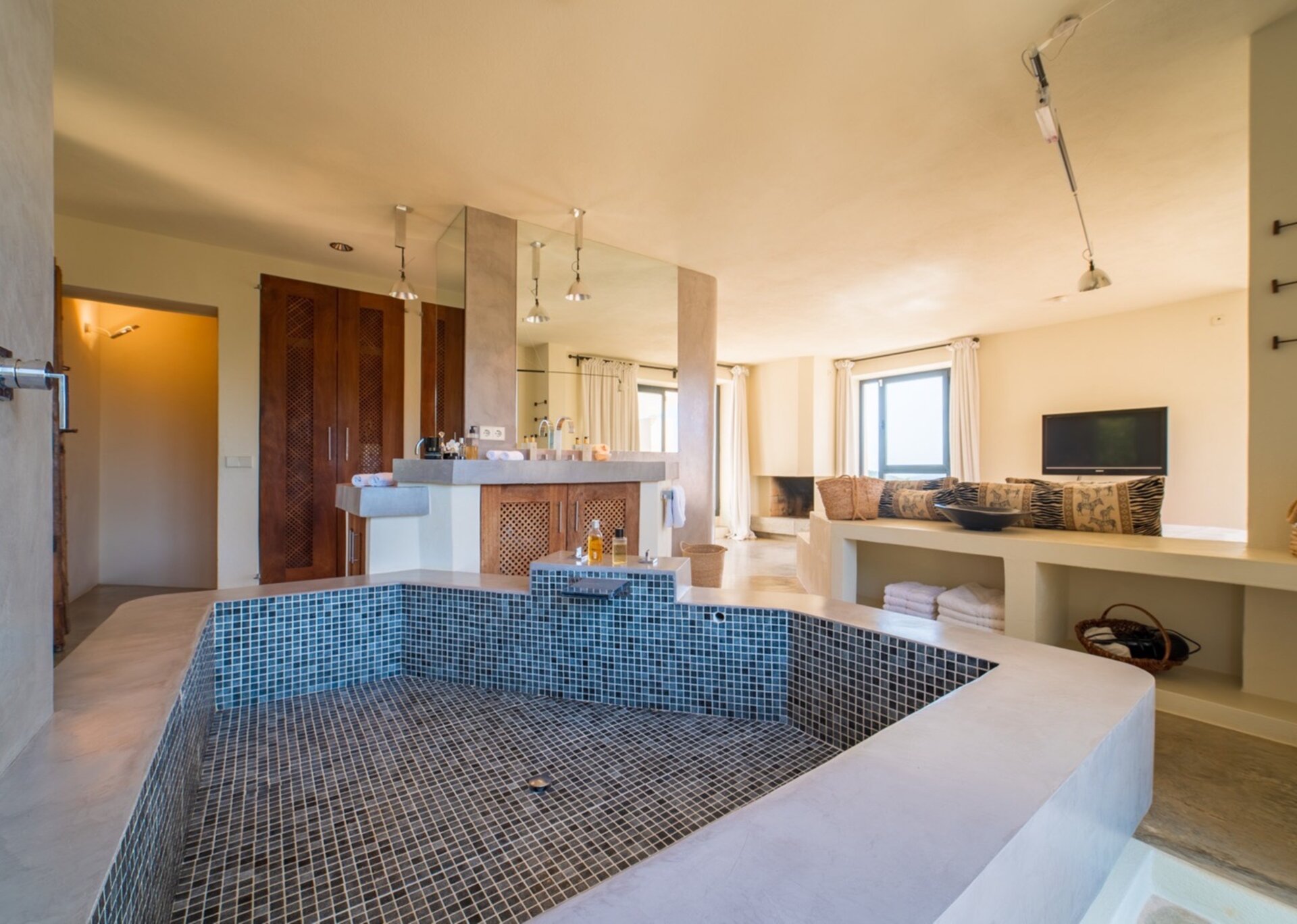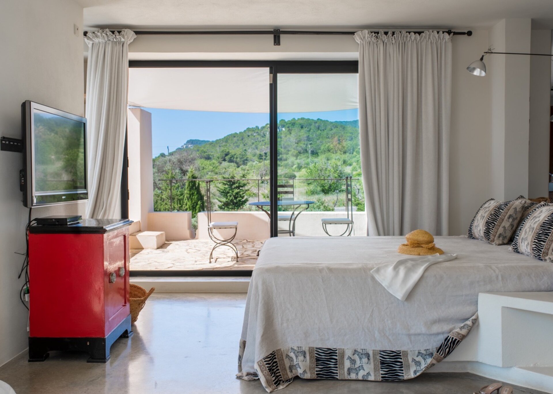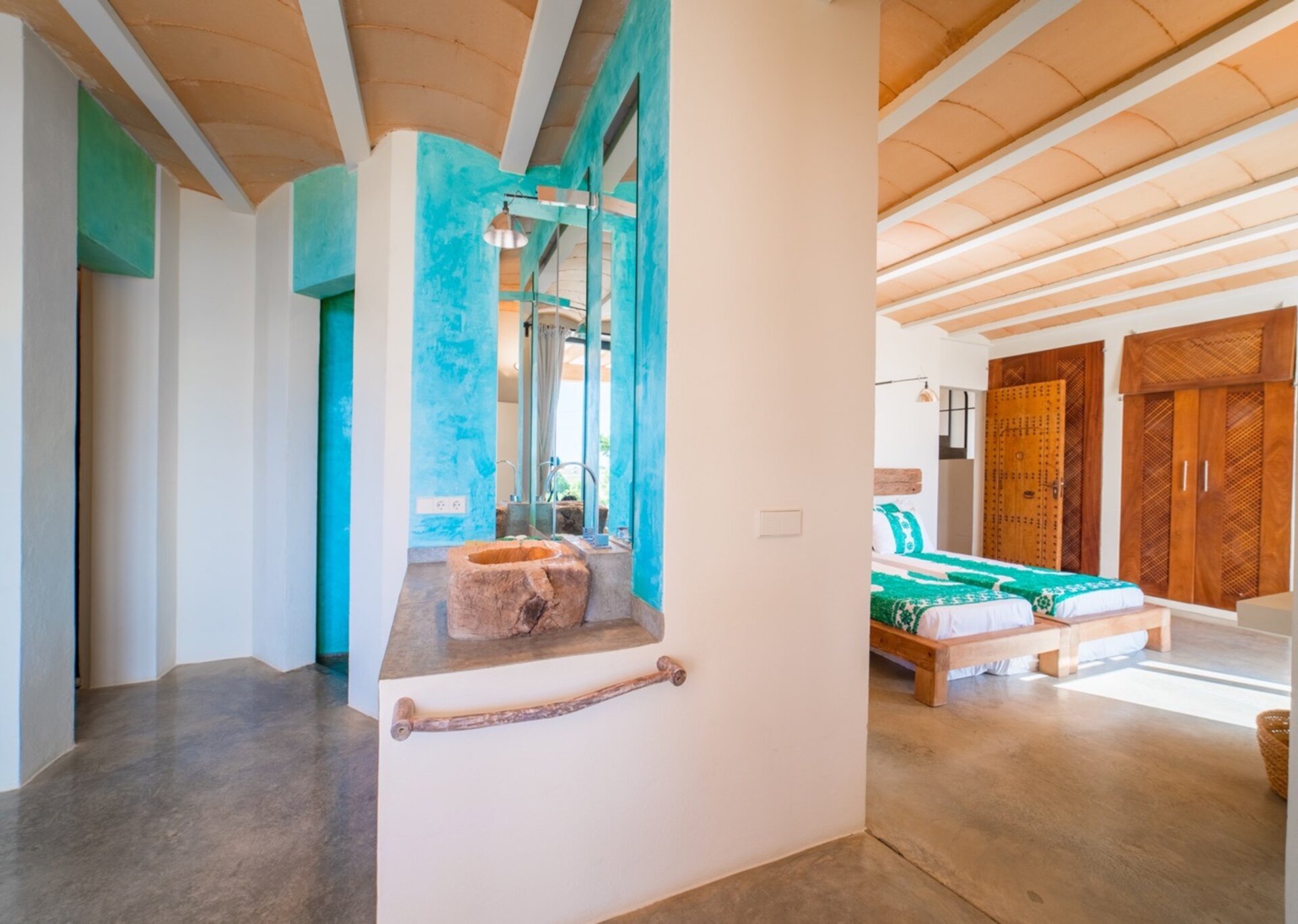 Upstairs, the master suite of Cuervo entices with its remarkable bathroom, fireplace, and two terraces. The second suite features a private terrace and an en-suite, while the third suite offers twin beds, a private terrace, an en-suite bathroom, and a lounge area complete with a welcoming daybed.