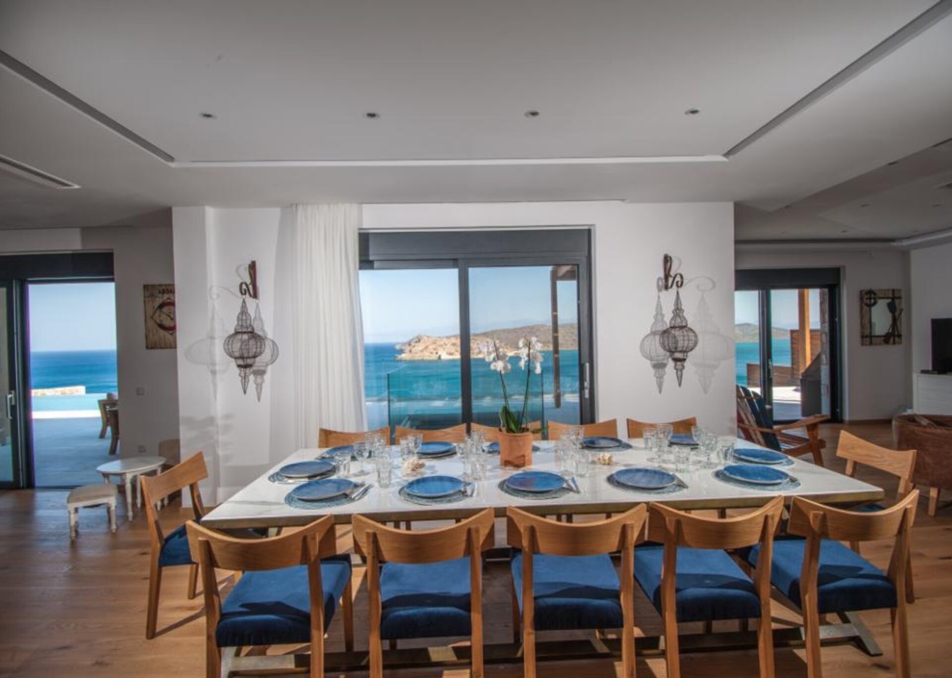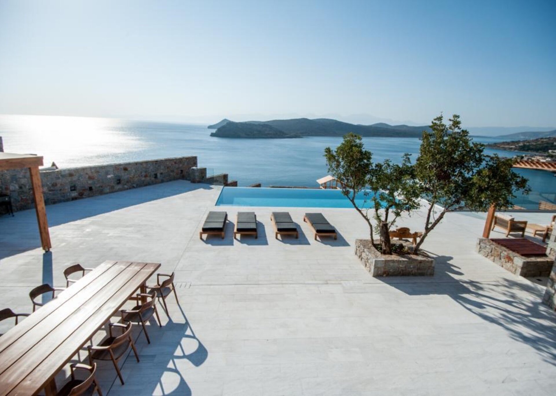 As you step onto Delice's outer terrace, you are greeted with a breathtaking panoramic view of the sapphire blue waters of the sea. The terrace features a lovely dining area, providing an idyllic setting for memorable family gatherings where you can relish delicious meals while soaking in the captivating beauty of the surroundings. The private swimming pool offers a refreshing oasis, inviting you to take a dip and unwind under the Mediterranean sun.