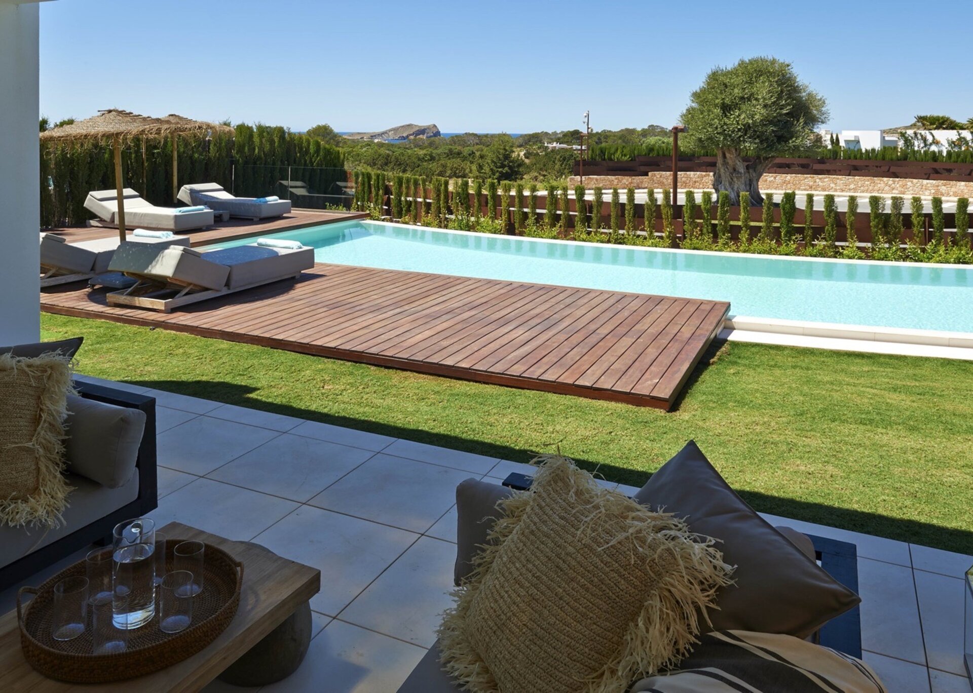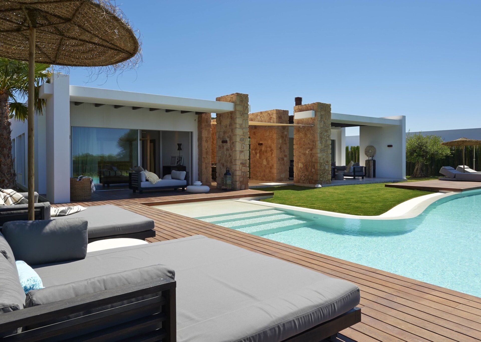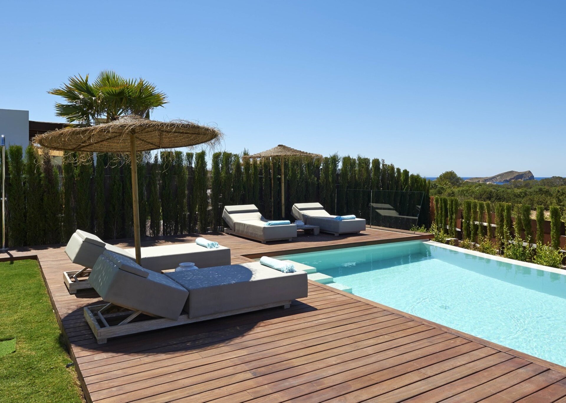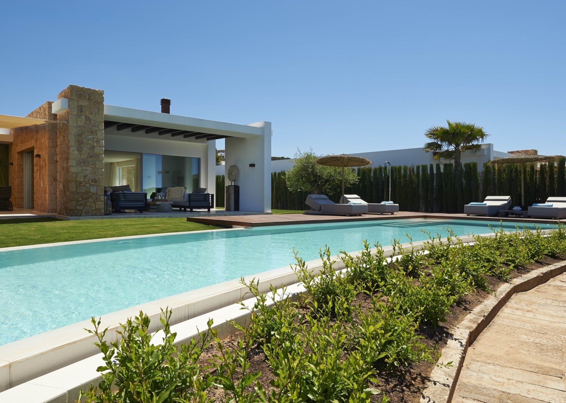 This exquisite newly constructed villa offers awe-inspiring sea views and stunning sunsets as it faces west. With its luxurious furnishings, contemporary design, and exquisite Balinese ethnic décor, it provides an indulgent holiday experience. Nestled within a secure residential complex with round-the-clock surveillance, just a short drive away from some of the island's most beautiful beaches like Cala Conta, Cala Bassa, and Cala Tarida, known for their family-friendly environment and trendy beach clubs.