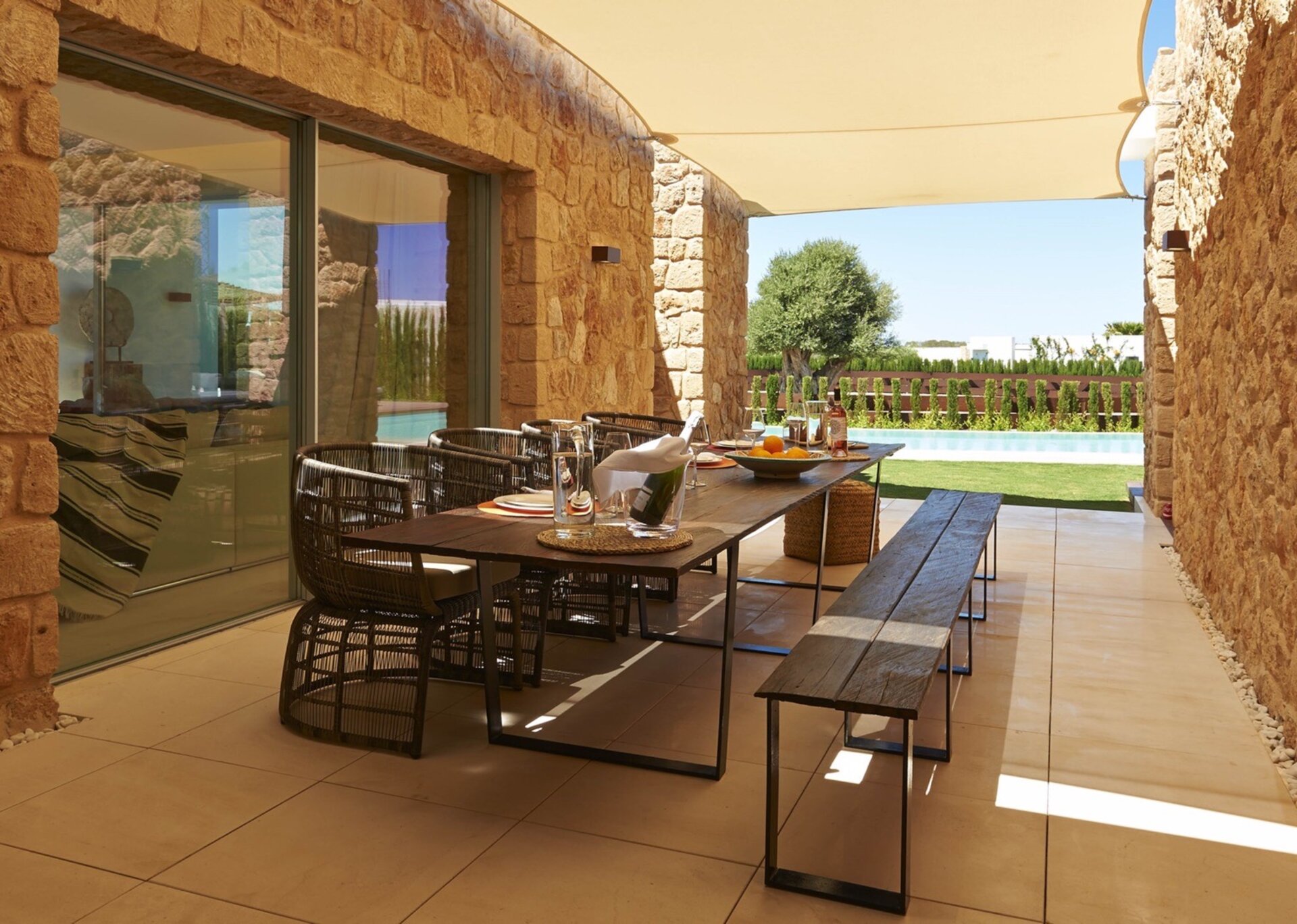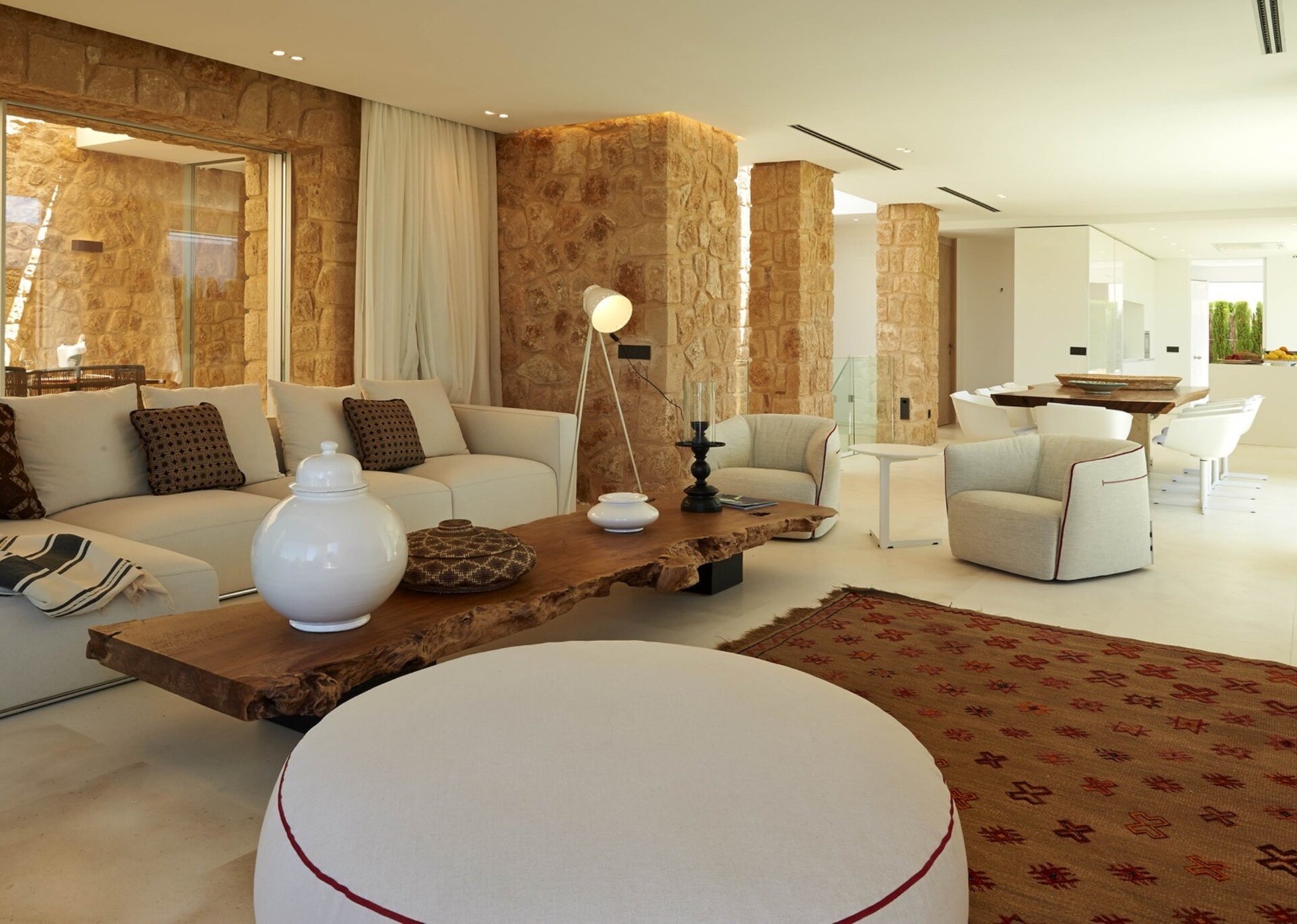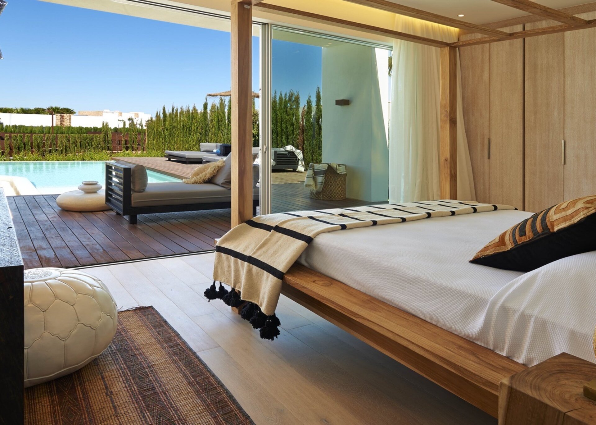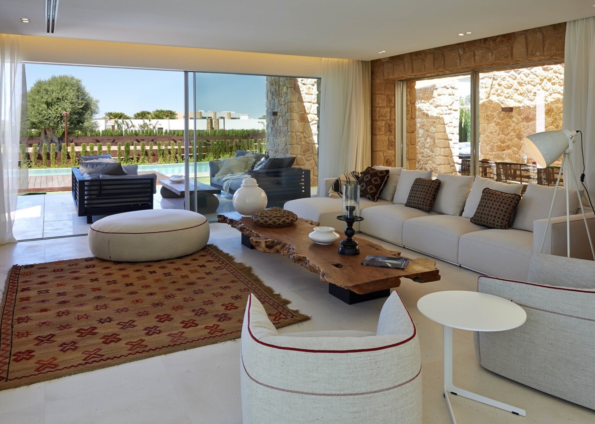This exquisite newly constructed villa offers awe-inspiring sea views and stunning sunsets as it faces west. With its luxurious furnishings, contemporary design, and exquisite Balinese ethnic décor, it provides an indulgent holiday experience. Nestled within a secure residential complex with round-the-clock surveillance, just a short drive away from some of the island's most beautiful beaches like Cala Conta, Cala Bassa, and Cala Tarida, known for their family-friendly environment and trendy beach clubs.