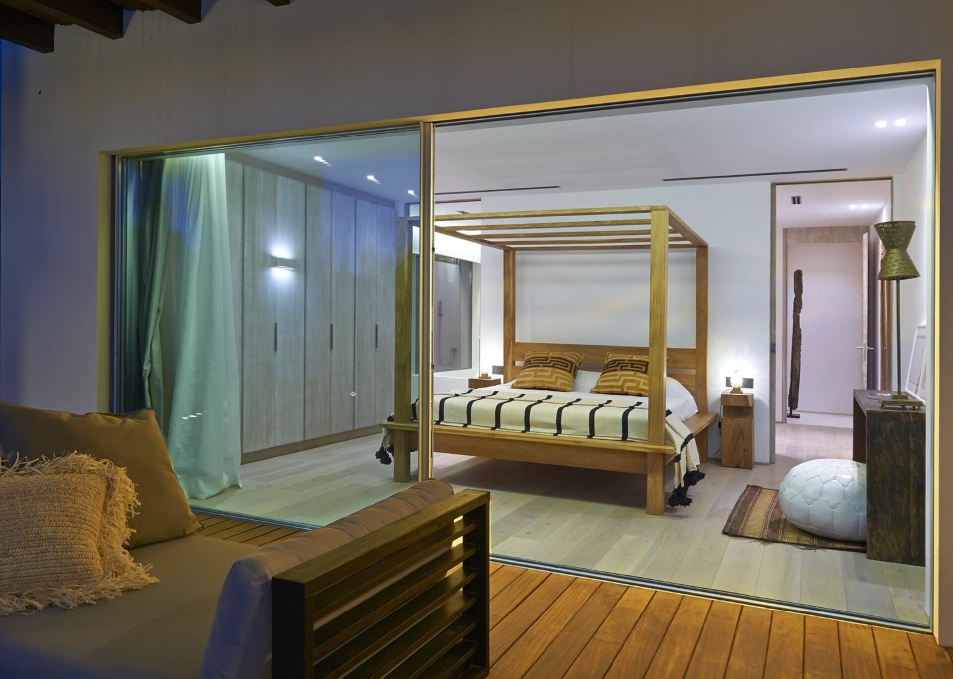 Positioned on the mesmerizing West Coast near the charming village of San Jose, this villa occupies a generous area of 430 square meters, surrounded by lush meadows and verdant foliage across its 1050 square meters of private land. The property showcases a breathtaking saltwater infinity pool (15m x 11m) adorned with color-changing LED lights. Outdoor relaxation areas complete with sunbeds, sofas, umbrellas, and a dining table under a charming porch await your enjoyment.