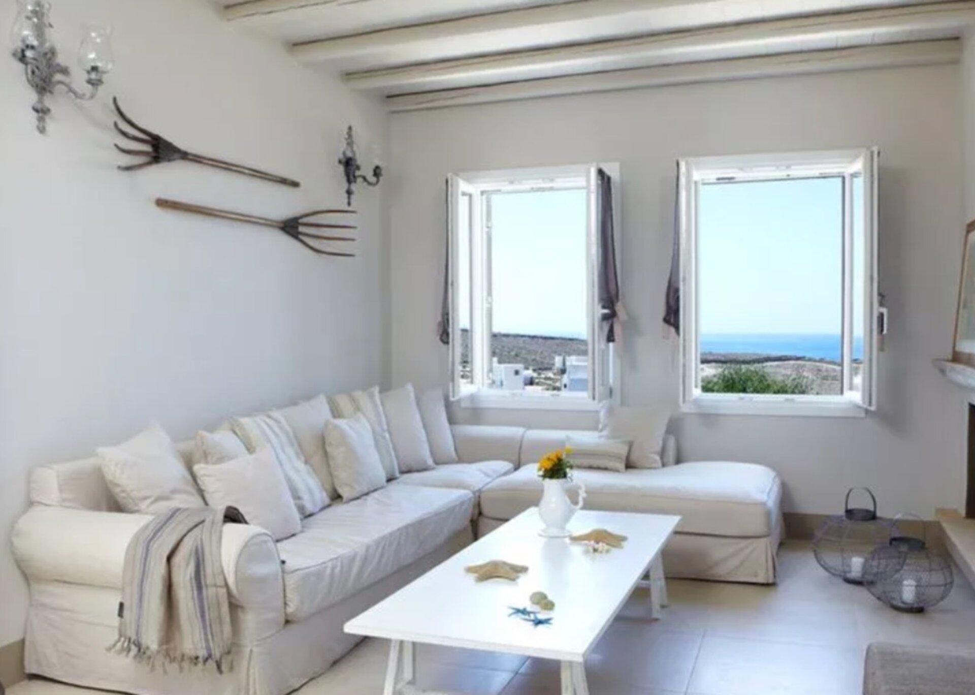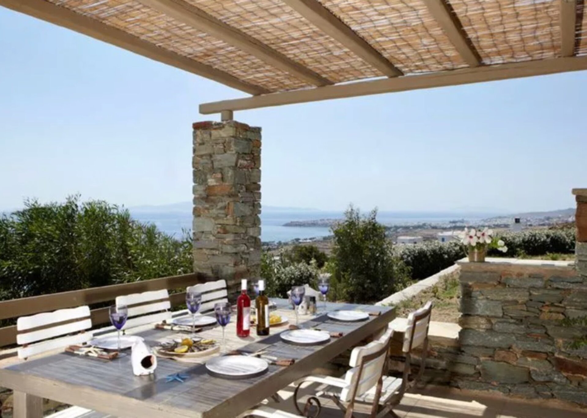 However, the true allure of this remarkable villa lies in its breathtaking view. Imagine waking up to the sight of the shimmering Aegean Sea stretching out before you, and the pristine islands of Mykonos, Delos (home to one of Greece's most significant archaeological sites), Rinia, and Syros beckoning you to explore their beauty. Whether you choose to relax by the sparkling swimming pool or take in the panoramic vistas from the spacious terrace, Dilan promises an immersing experience that will leave you in awe of this exquisite location.