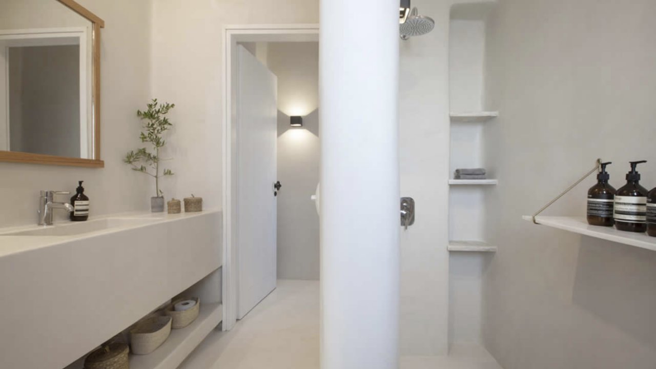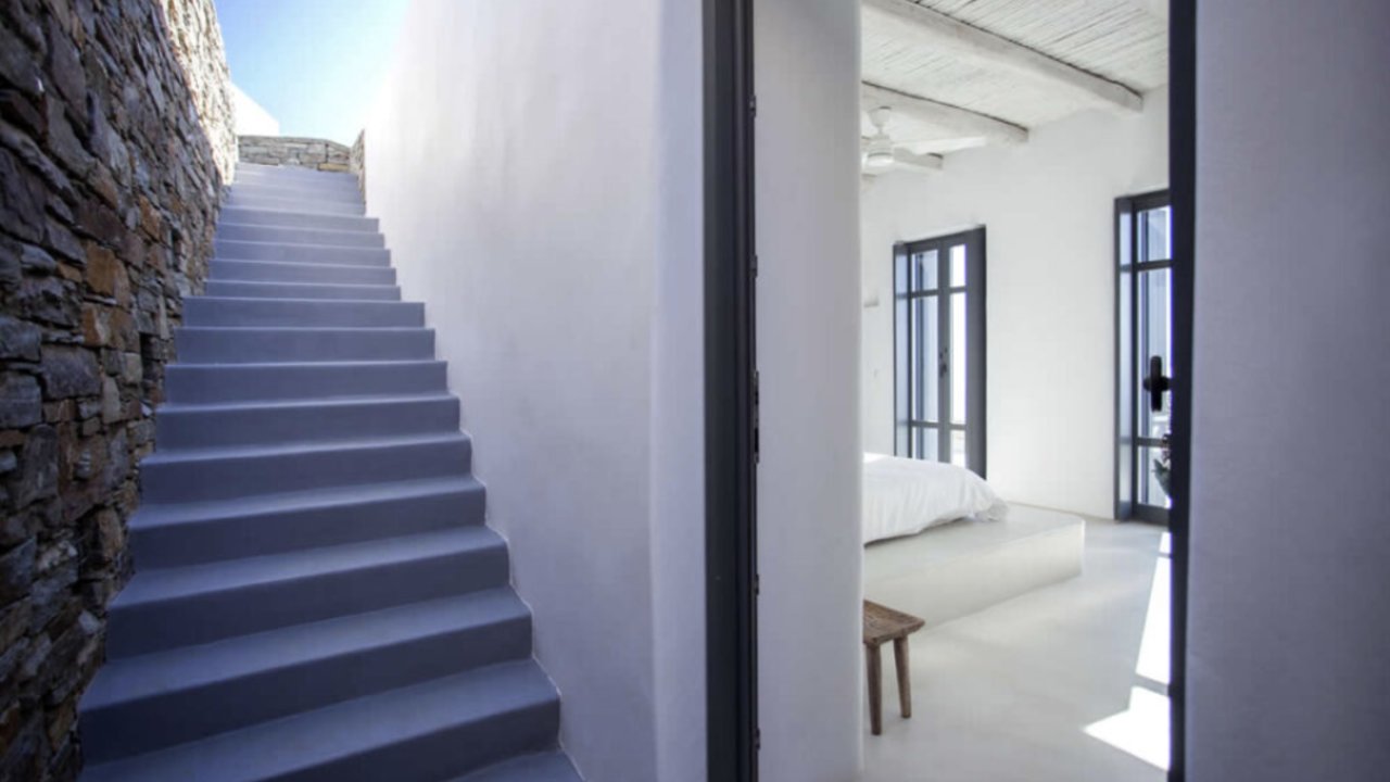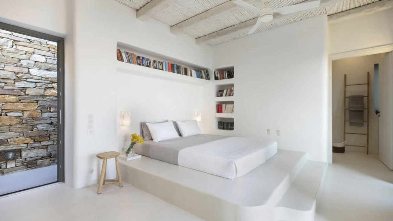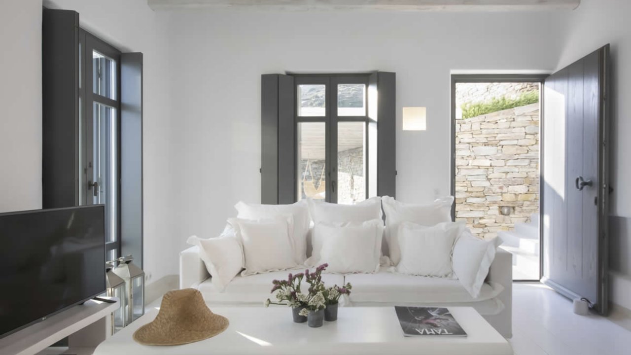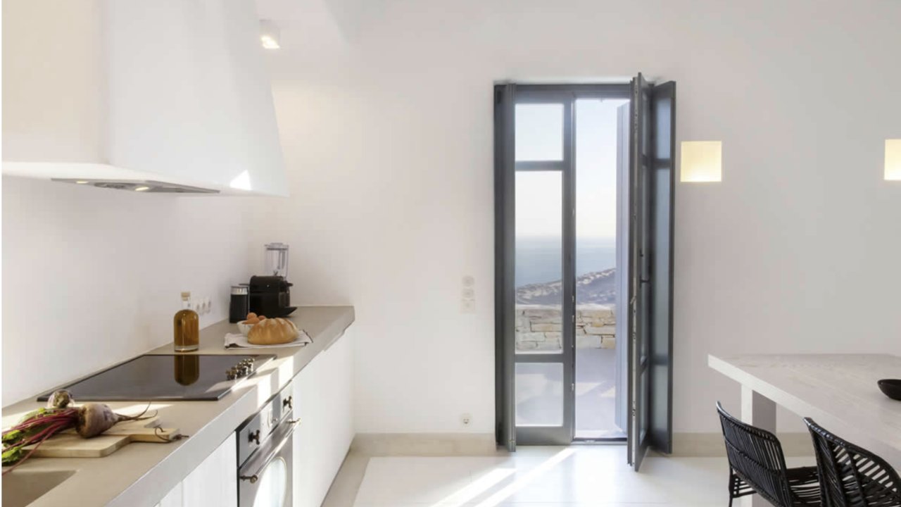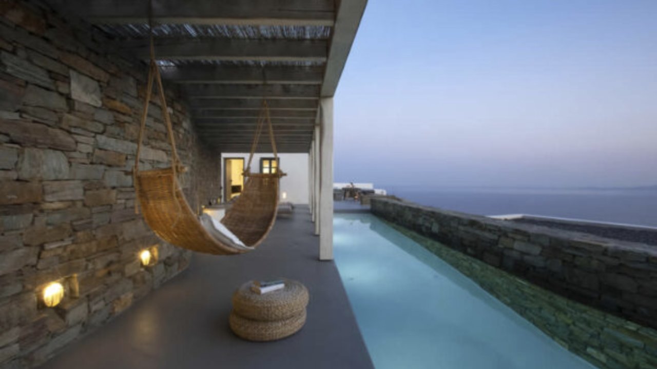 Where sea and sky find their meeting point, Villa Dione offers the most relaxing and tranquil holiday experience. Nested in the village of Kardiani, at the south part of the island of Tinos and therefore protected from the north wind “Aeolos”, Villa Dione is a minimal cycladic architectural gem with a private swimming pool that grants ultimate holiday experience to its guests. Set in three levels, Villa Dione, treasures the virtues of guest’s independence and living harmony, with a sense of subtle luxury. Standing in or out guests can appreciate the purity of the landscape in secluded surroundings and a dream private swimming pool blessed by the embracing views. Elegant and refreshing in its simplicity, the modern style of Villa Dione highlights natural beauty and a resilient Cycladic spirit.